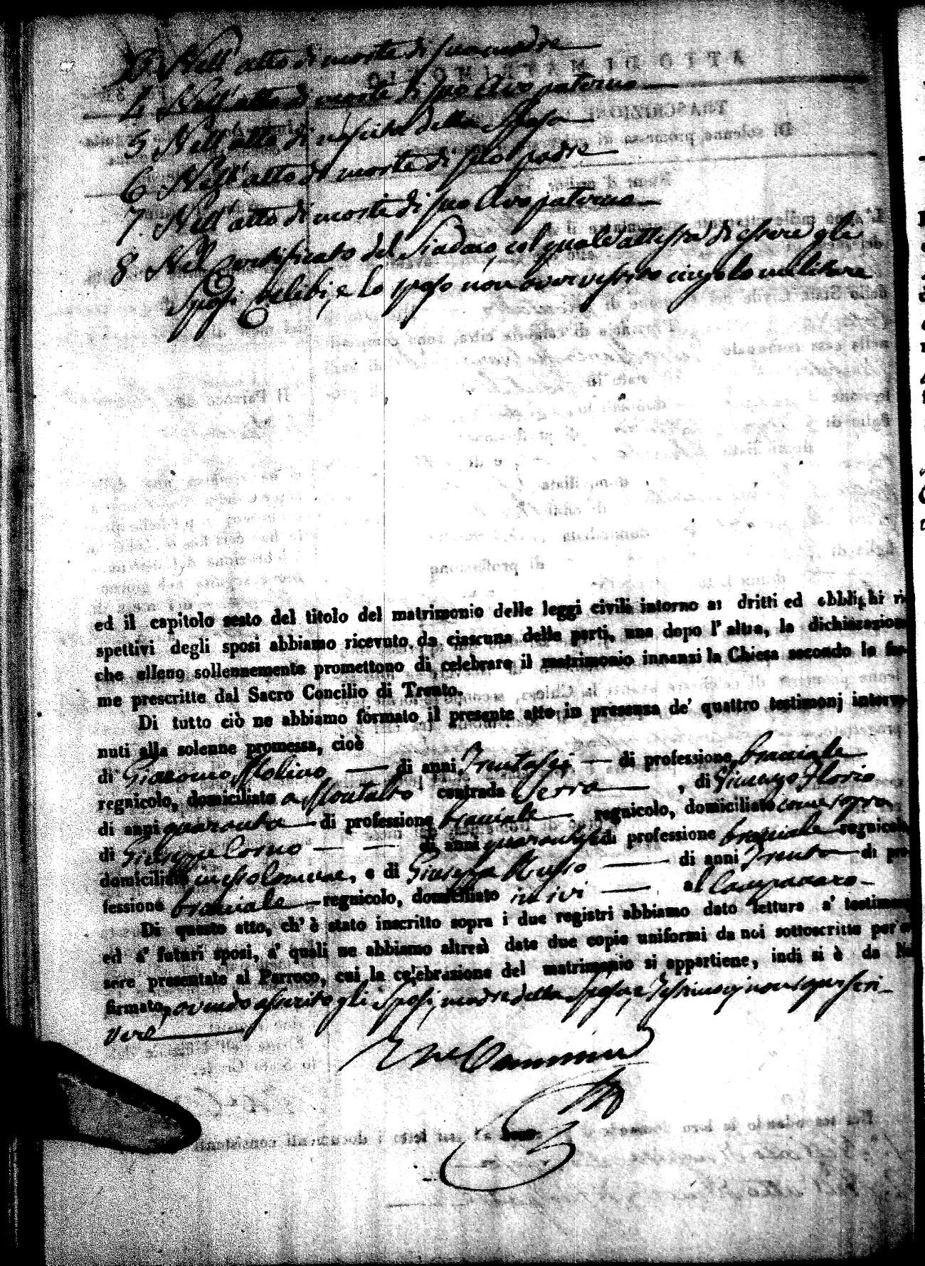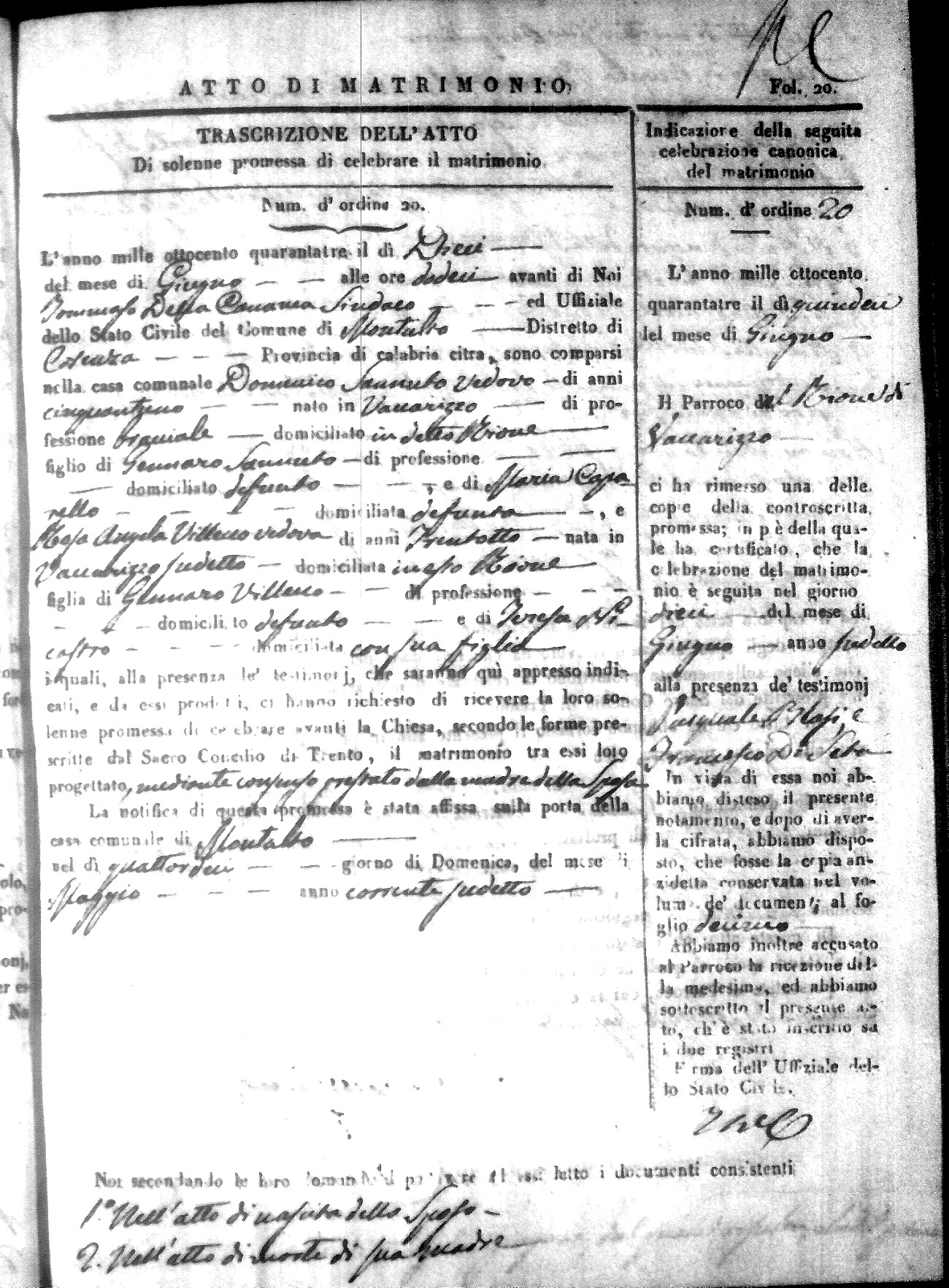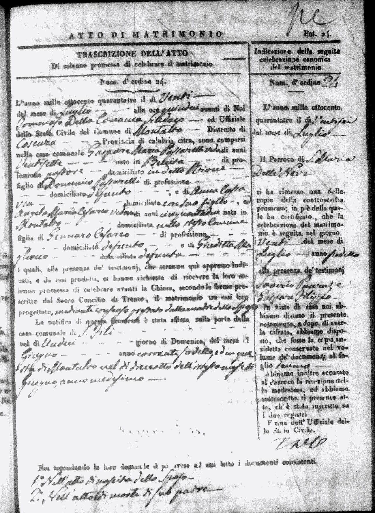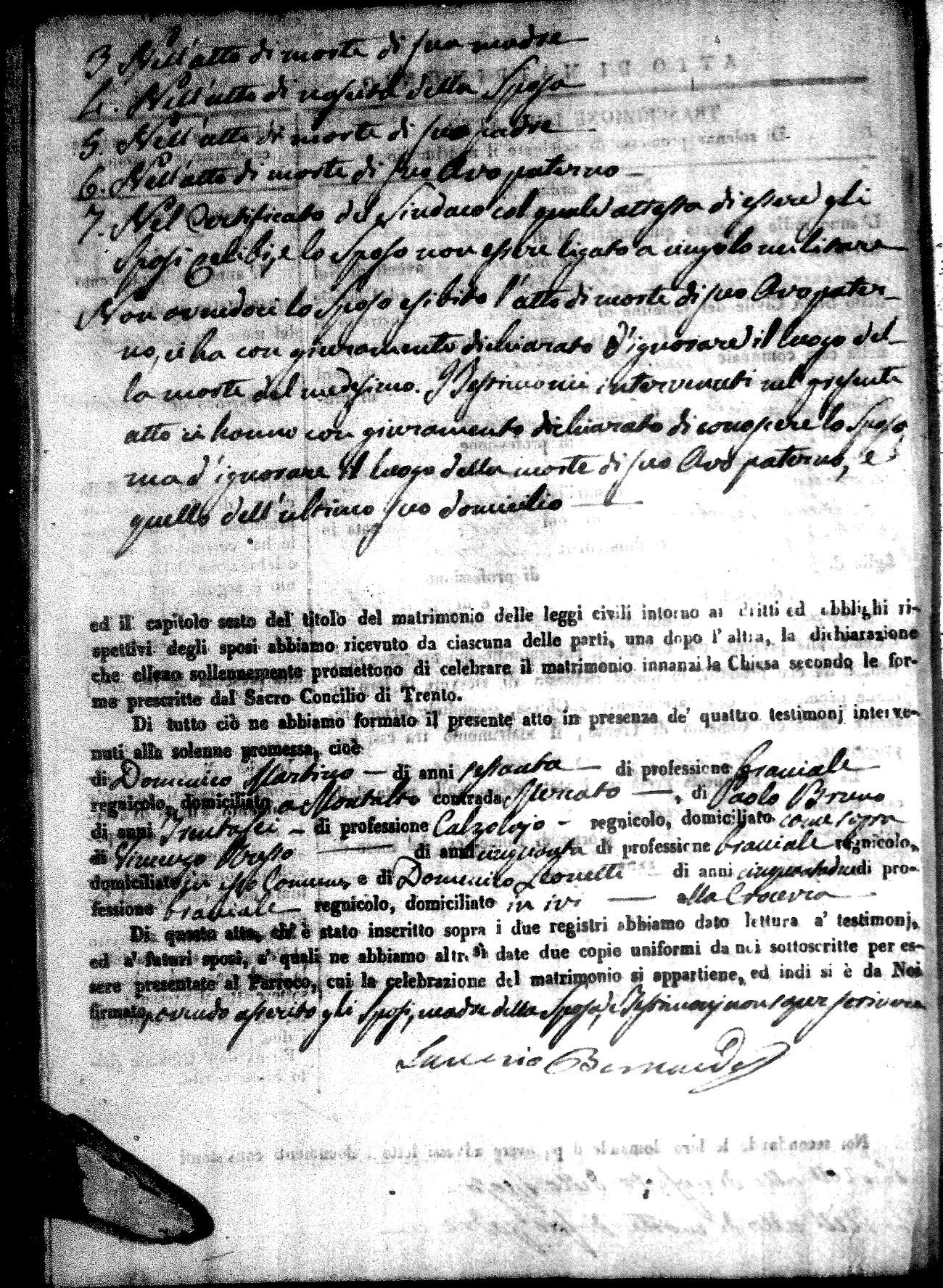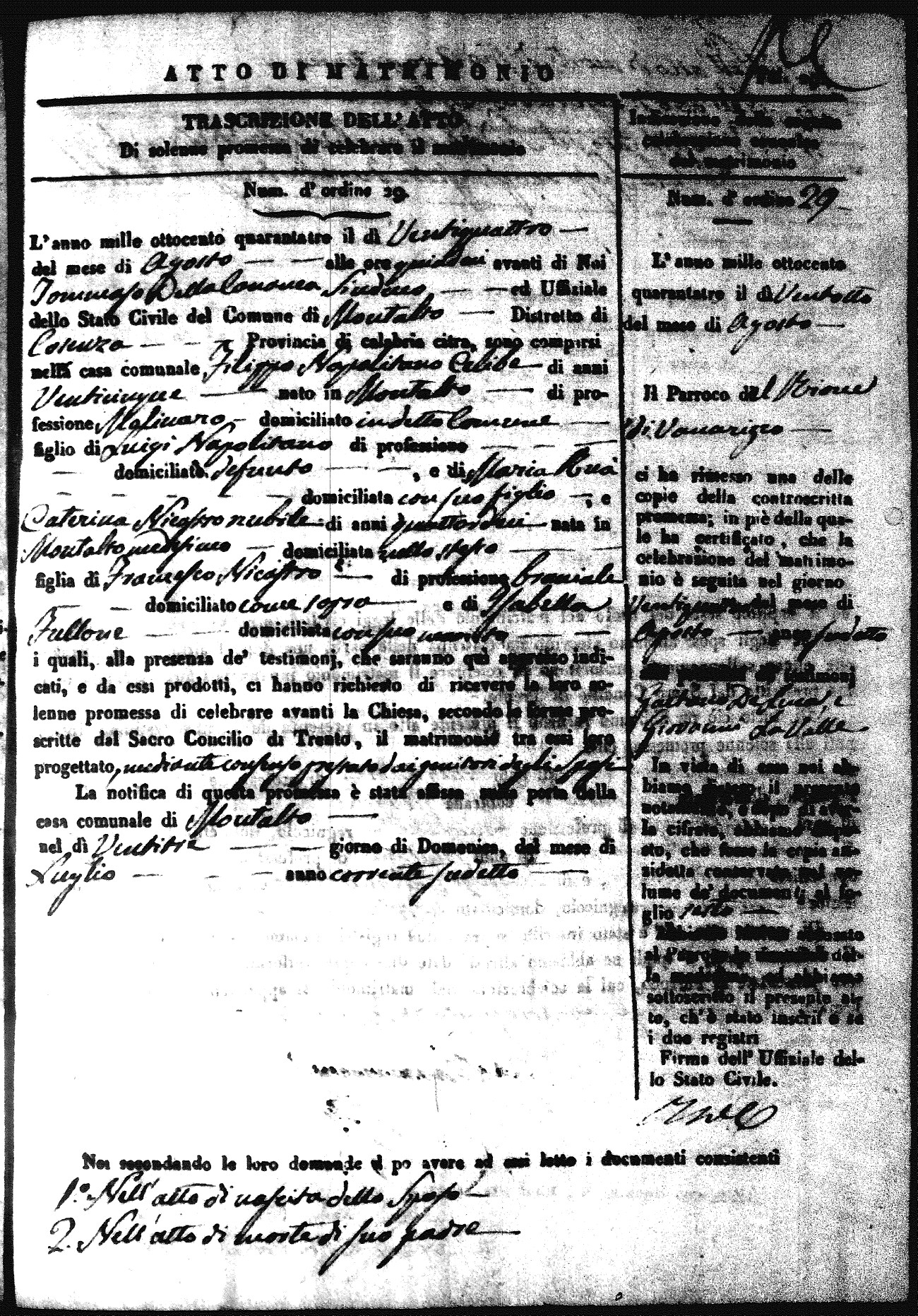 | Sannuto | Domenico | Gennaro (fu) | Caparello | Maria (fu) | Villecco | Rosa Angela | Gennaro (fu) | Nicastro | Teresa |