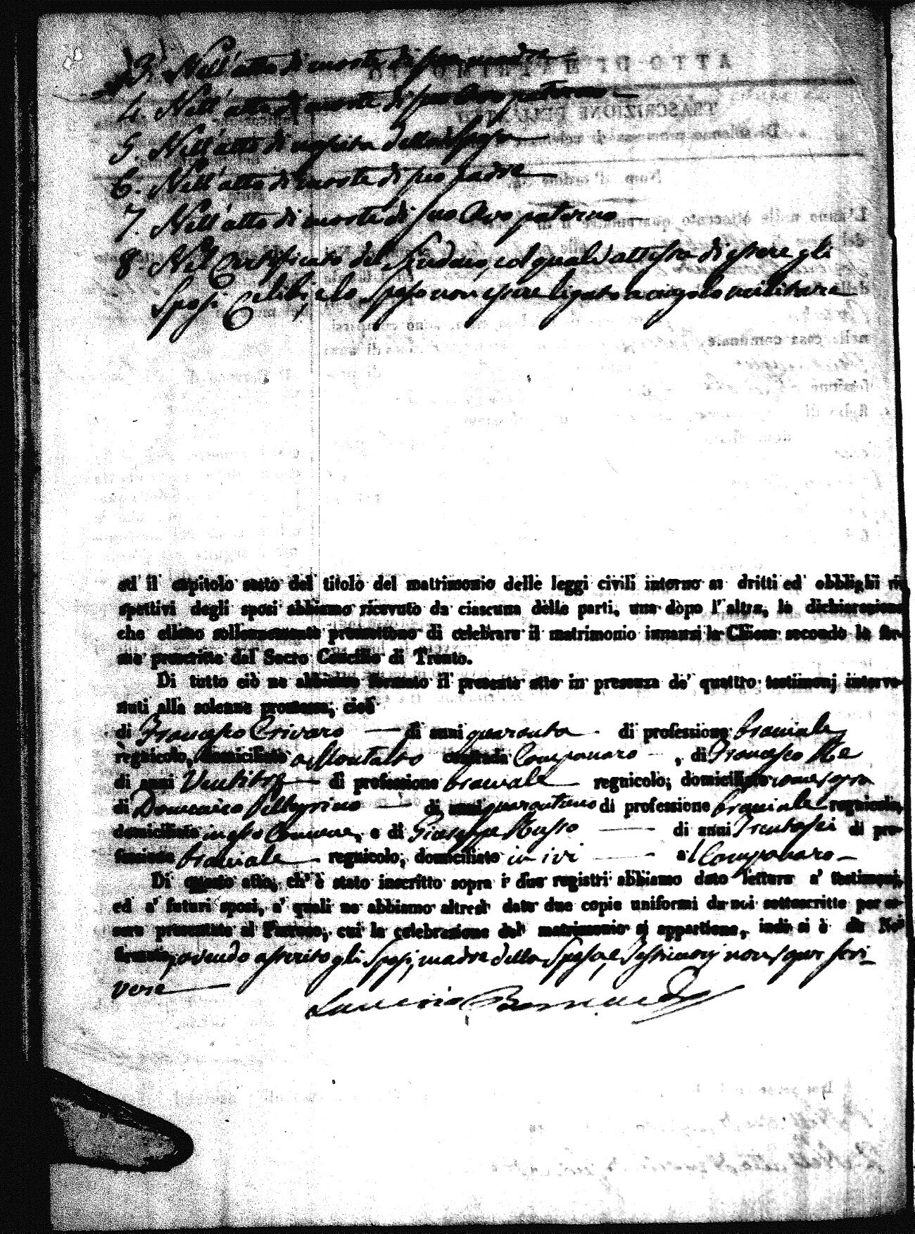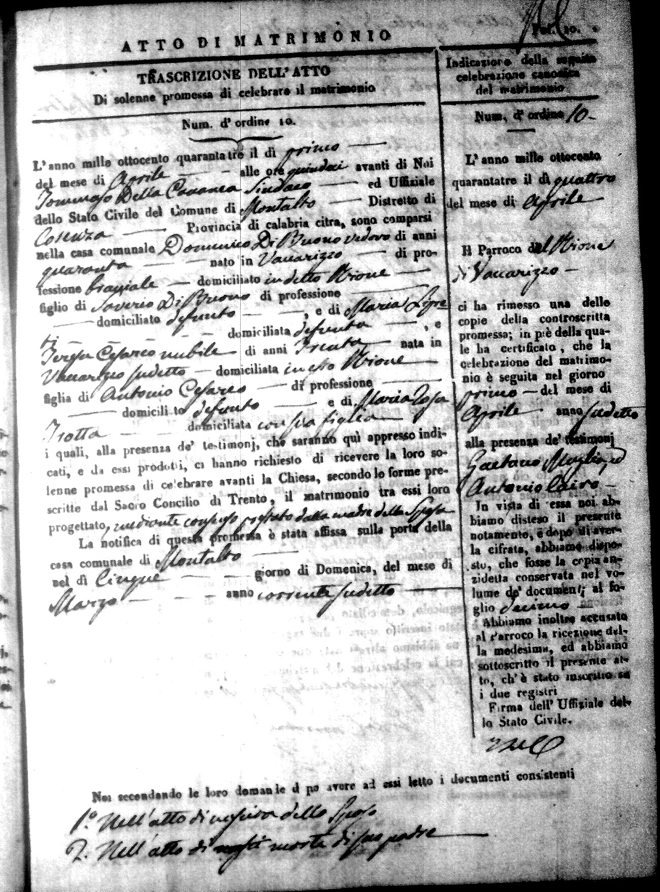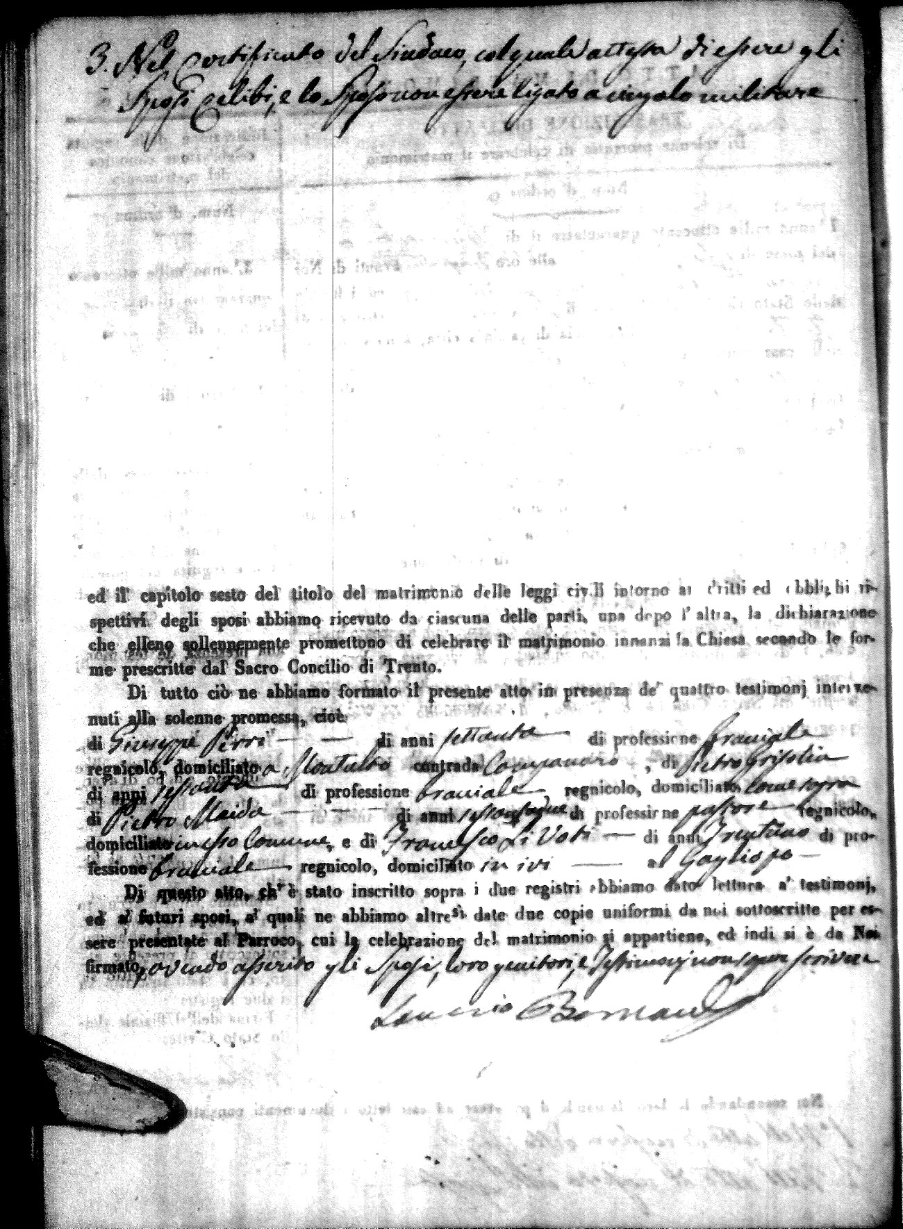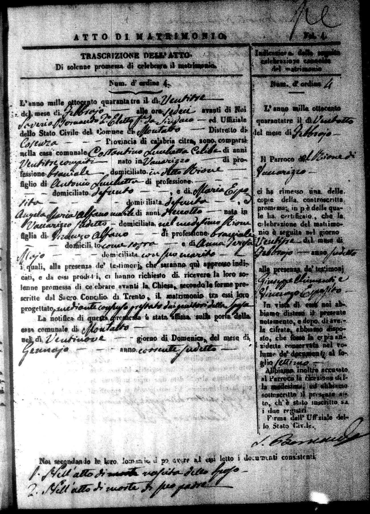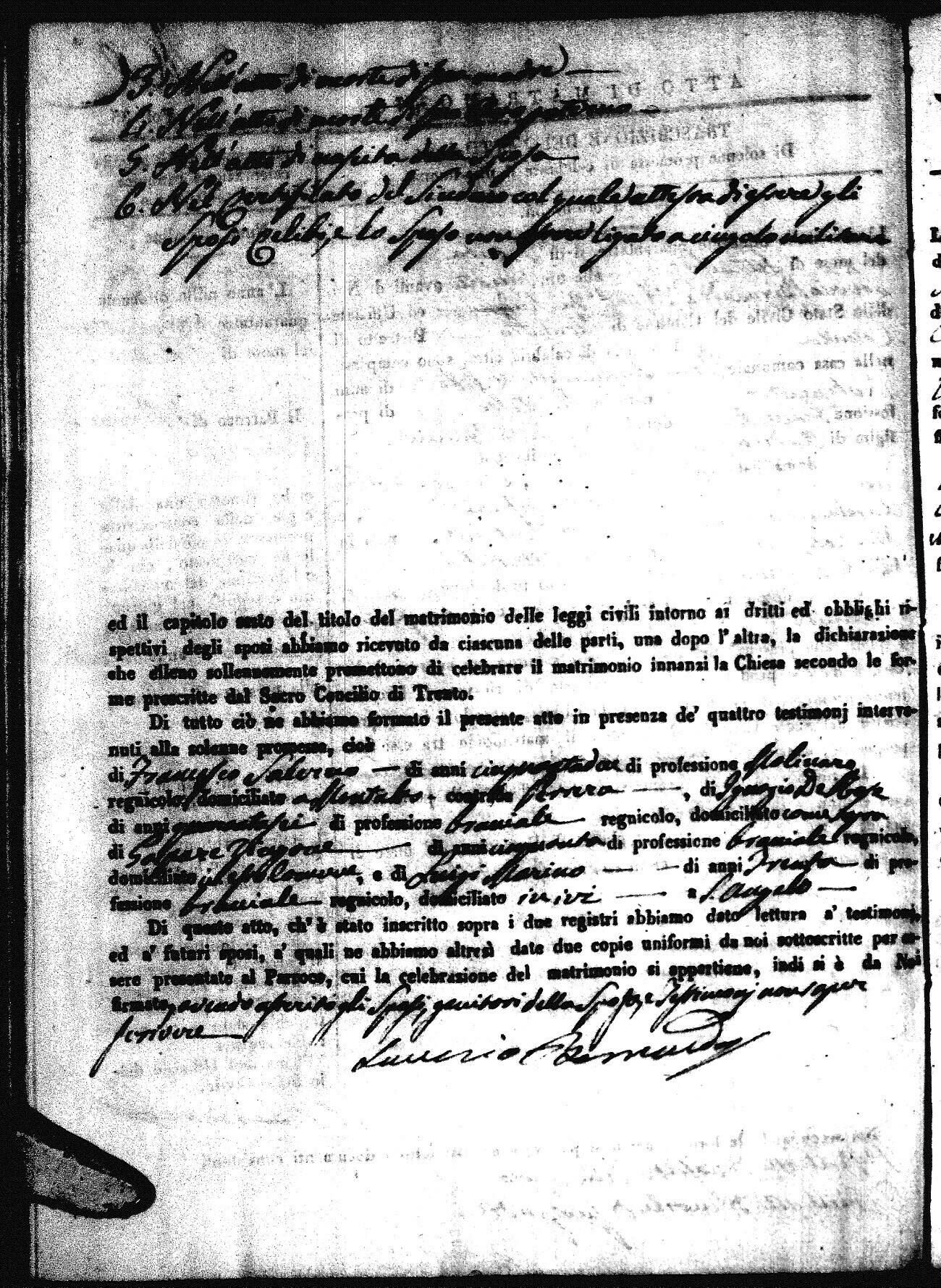 | Sannuto | Domenico | Gennaro (fu) | Caparello | Maria (fu) | Villecco | Rosa Angela | Gennaro (fu) | Nicastro | Teresa |