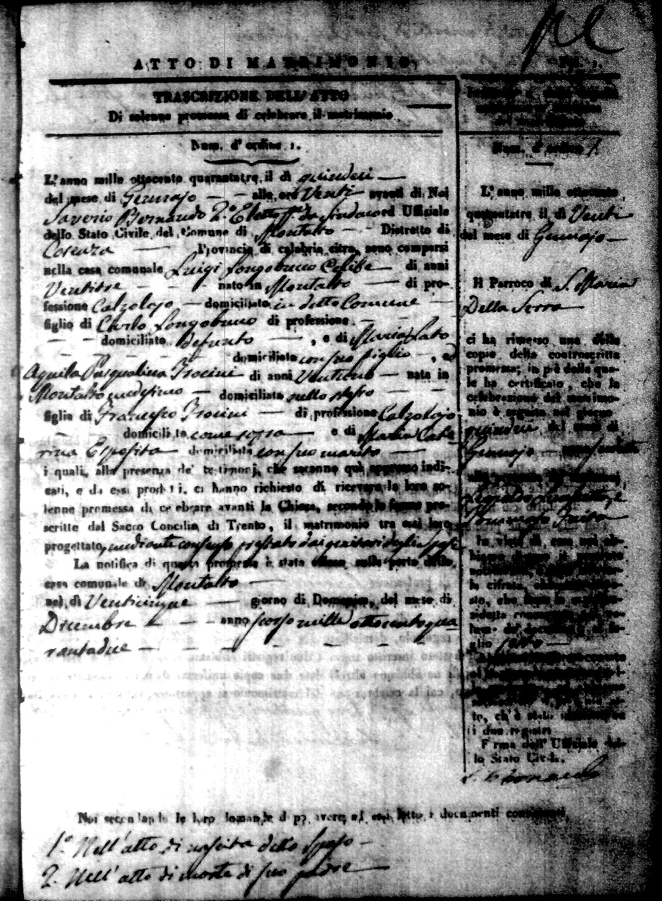 | Longobucco | Luigi | Carlo (fu) | Lato | Maria | Trocini | Aguila Pasqualina | Francesco | Esposito | Maria Caterina |