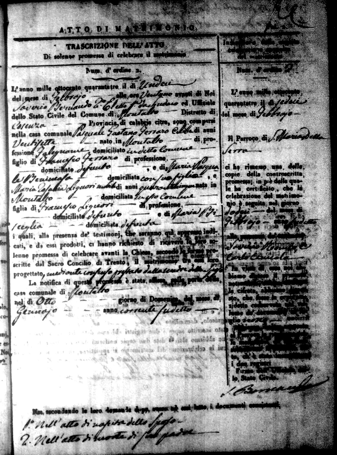 | Ferraro | Pasquale Gaetano | Francesco (fu) | Benincasa | Maria Pasqualina | Liguori | Maria Rosaria | Francesco (fu) | Bisceglia | Maria (fu) |