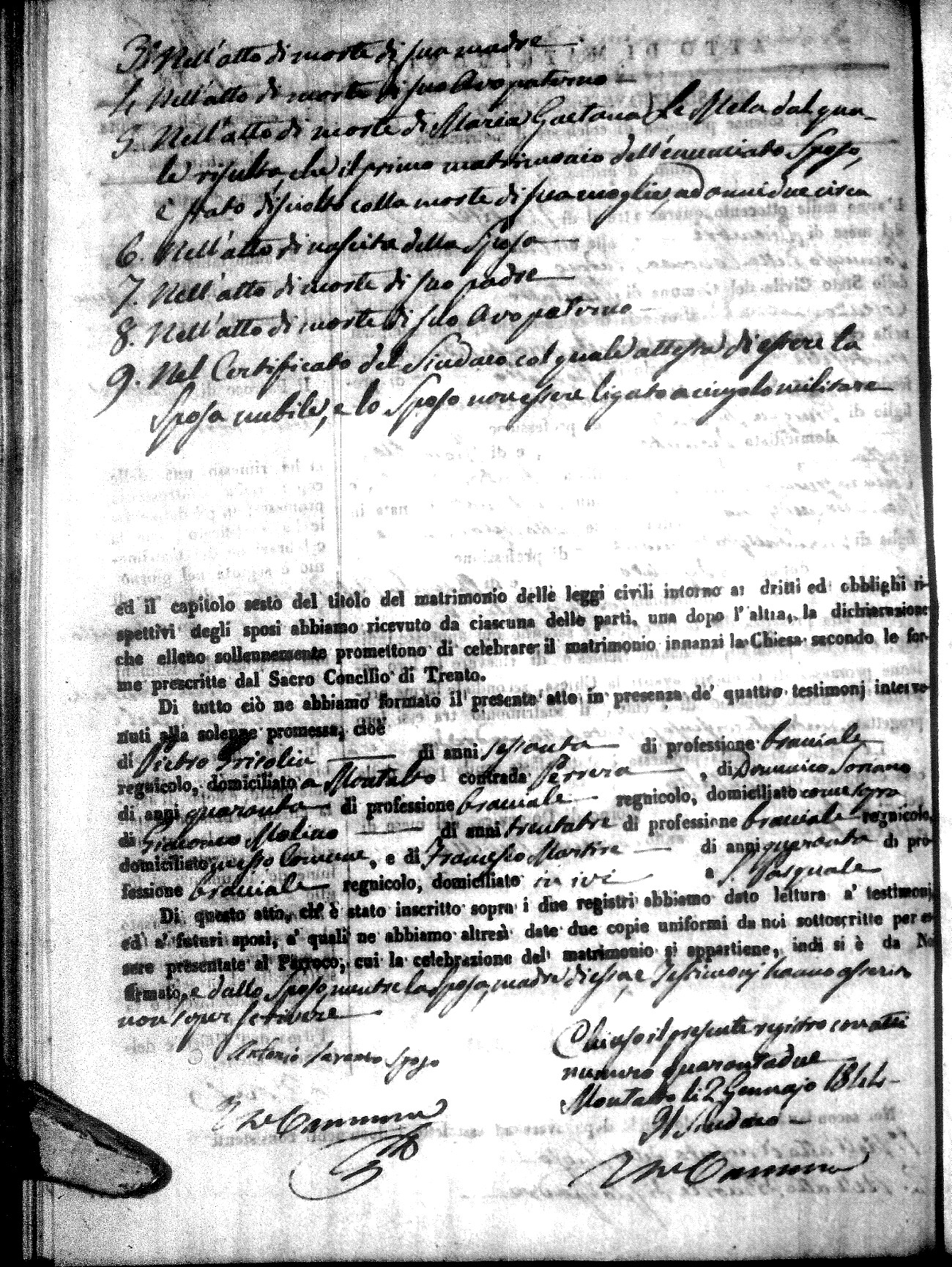 | Molinaro | Pietro Maria | Giuseppe (fu) | Arturi | Vittoria (fu) | Palmieri | Rosa | Giuseppe (fu) | Muglia | Teresa |