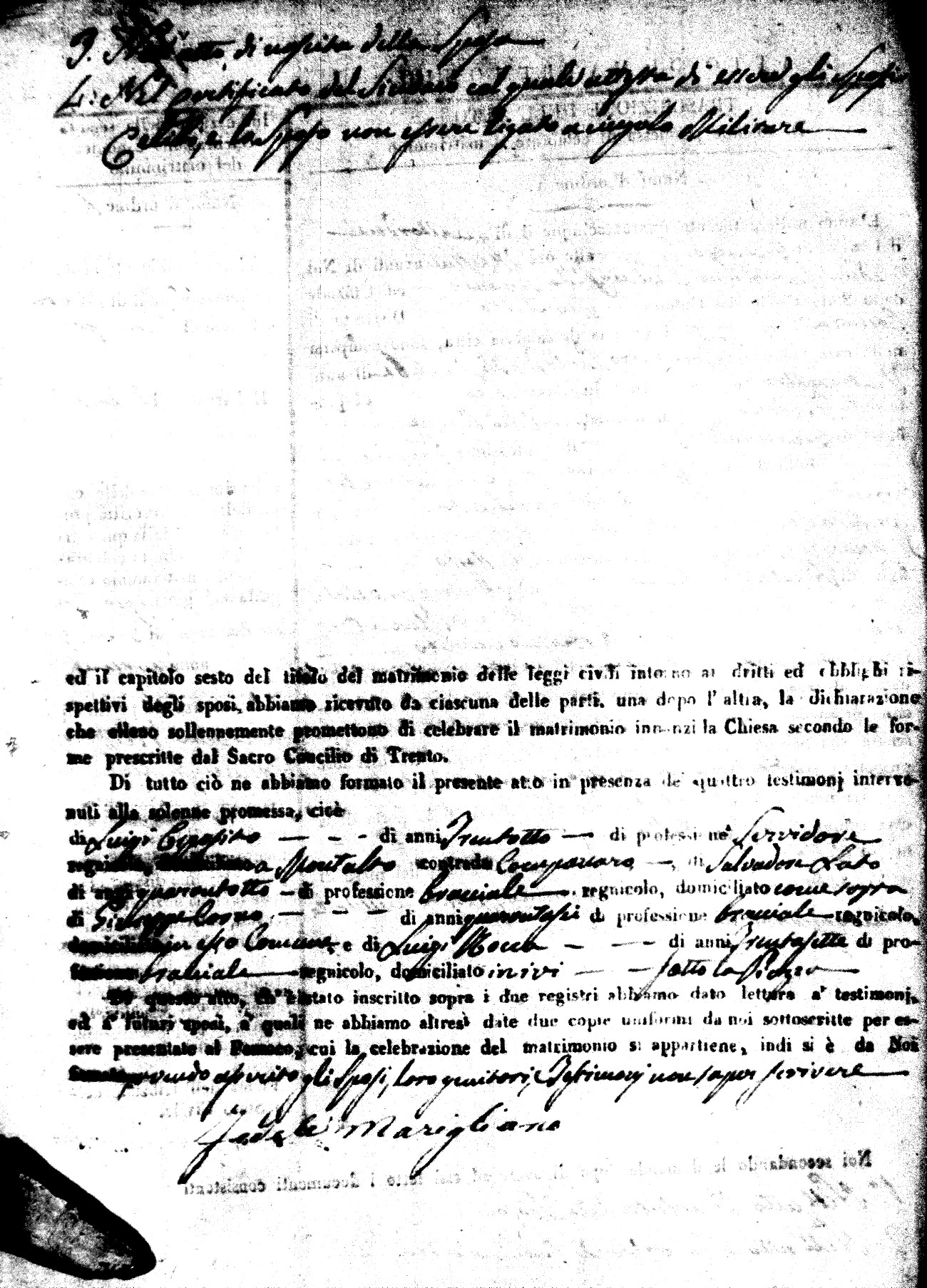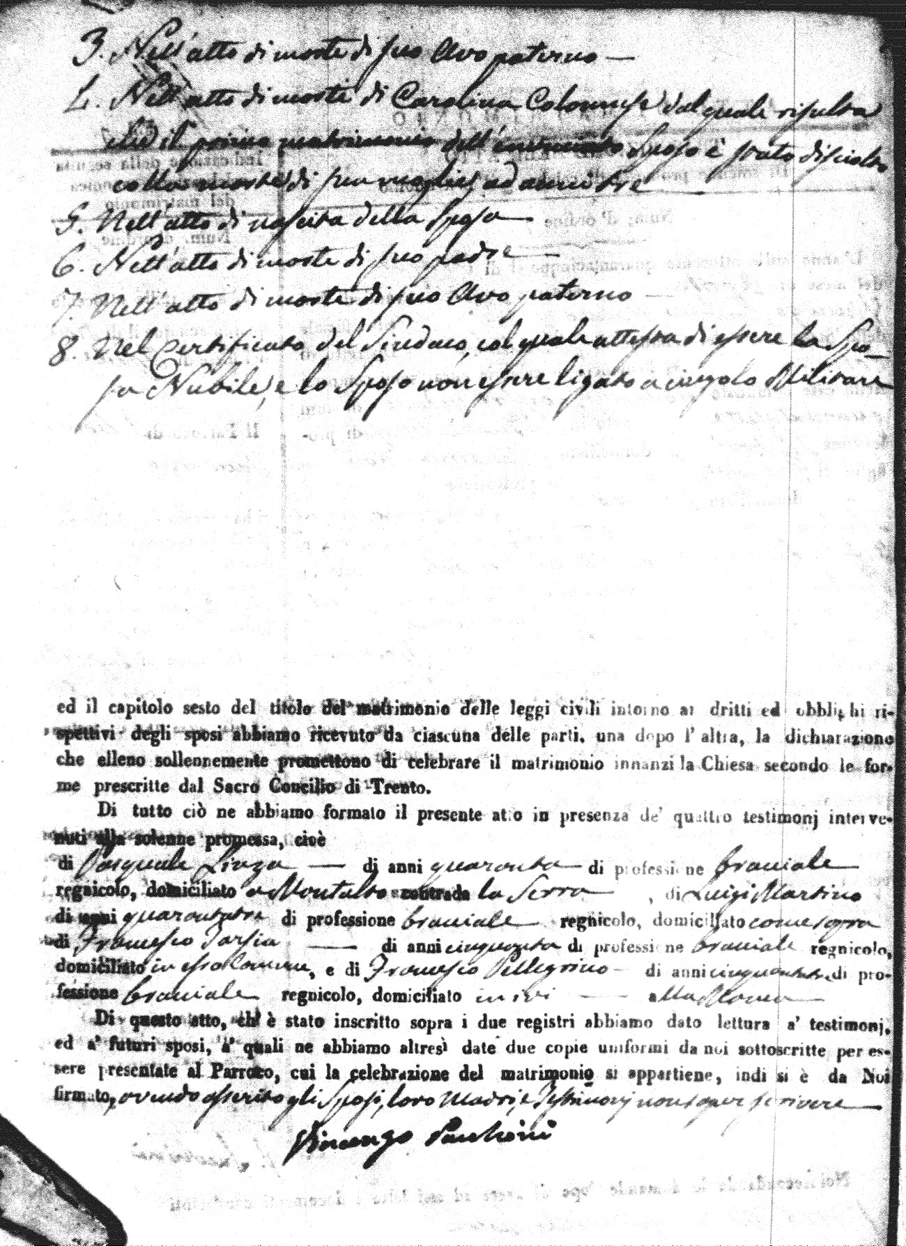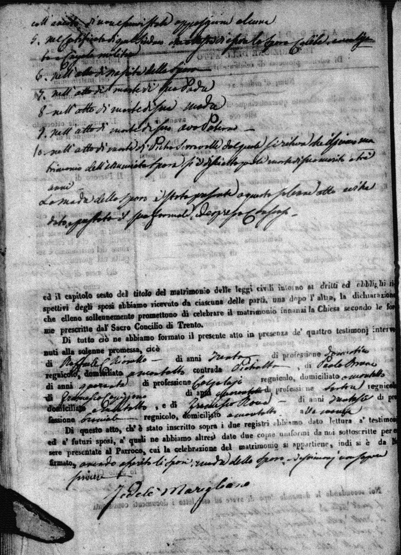 | 21 May | Passarello | Pasquale | Tommaso (fu) | Perri | Anna | Cavaliere | Maria Rosa | Giuseppe (fu) | Corrado | Carmela (fu) |