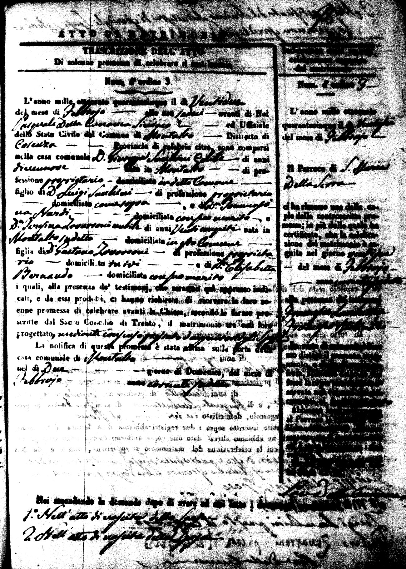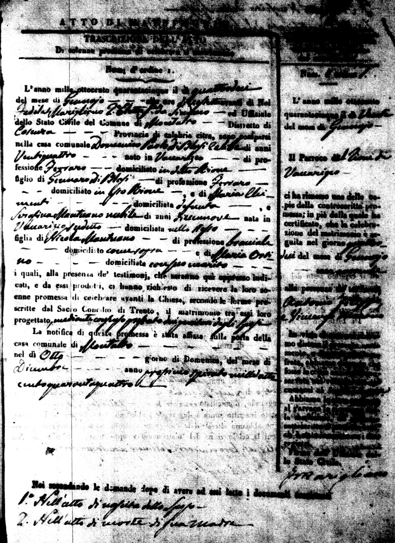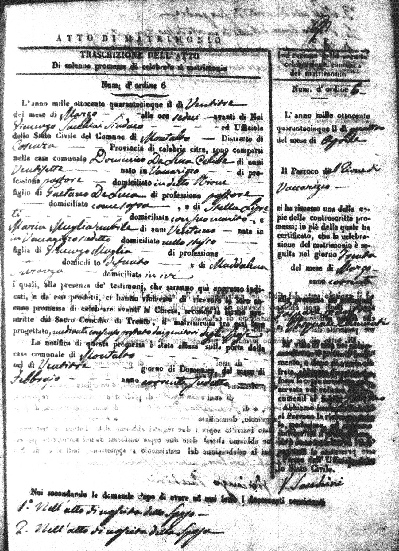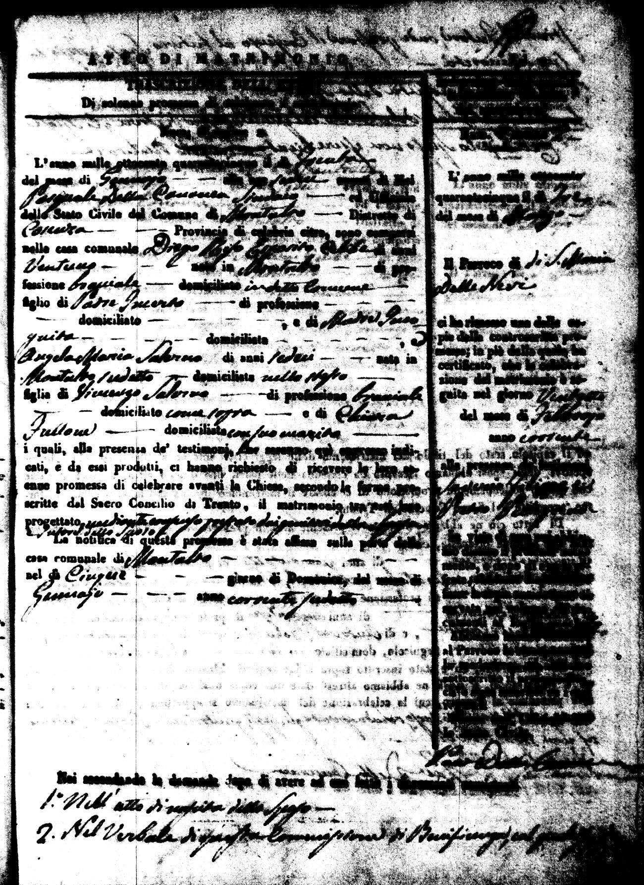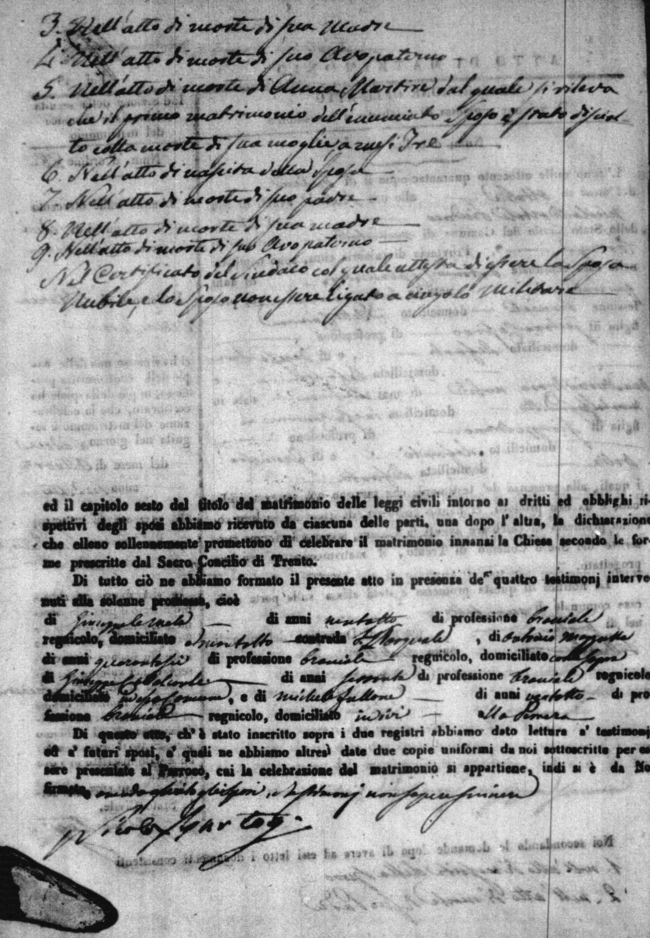 Here are the extractions for all the marriage acts in 1845 for Montalto Uffugo. For more information, click on the groom's surname to view a copy of the original document.