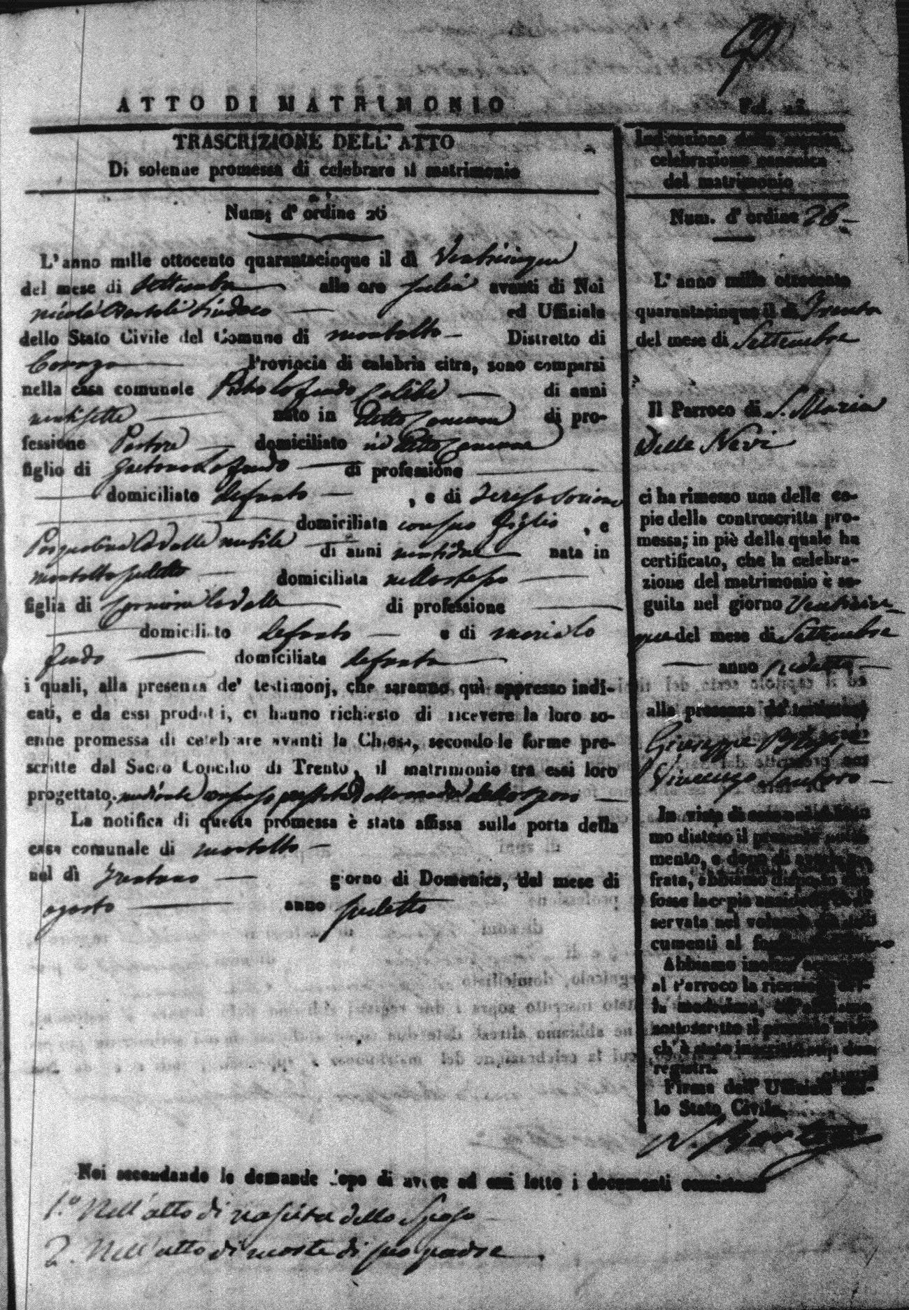 | 30 Sep | LoFeudo | Pietro | Gaetano (fu) | Soriano | Teresa | LaValle | Pasqualina | Carmine (fu) | LoFeudo | Maria (fu) |