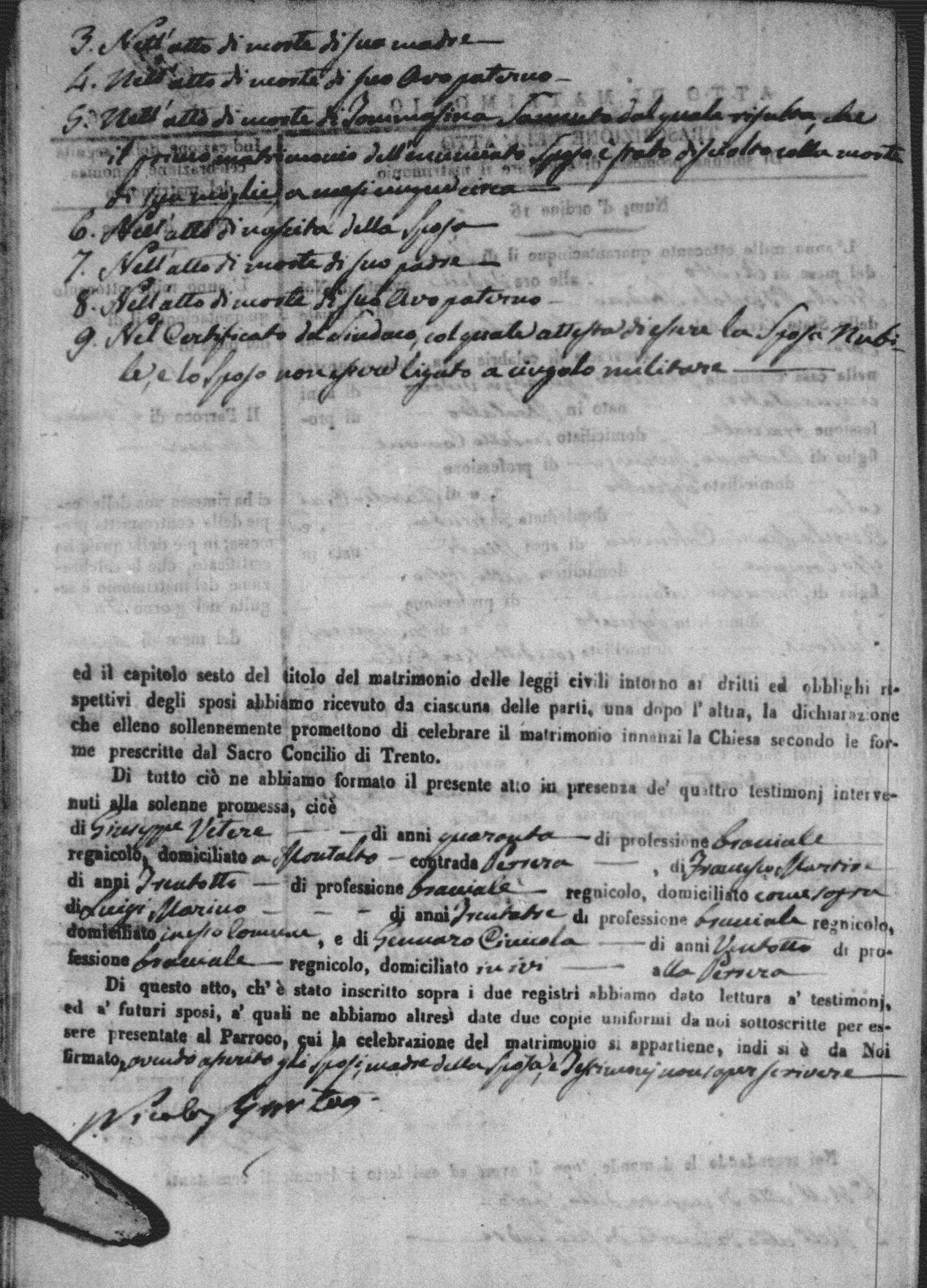 | 8 May | Speranza | Vincenzo | Michele (fu) | Ortino | Angela | Mele | Maria Aloisa | Vincenzo (fu) | Sannuto | Serafina (fu) |