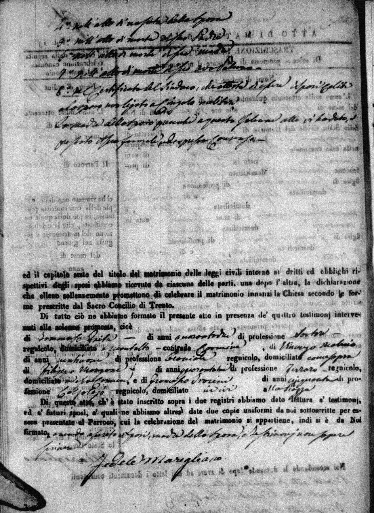 | 16 May | Morelli | Vincenzo | Giuseppe (fu) | DeLio | Serafina | Brandi | Caterina | Giuseppe (fu) | Verucci | Anna |