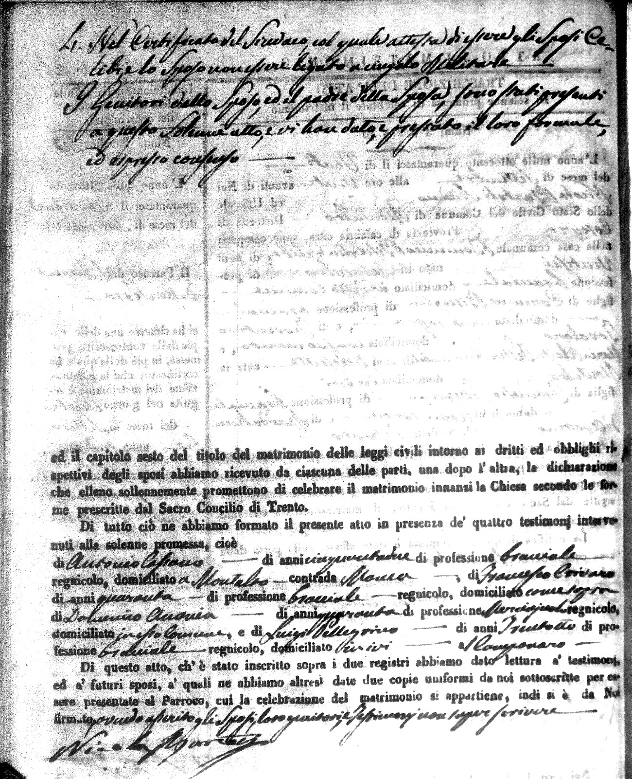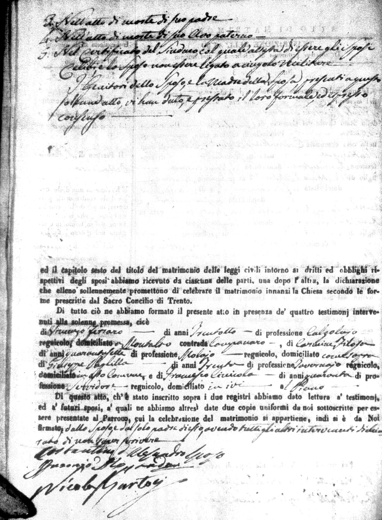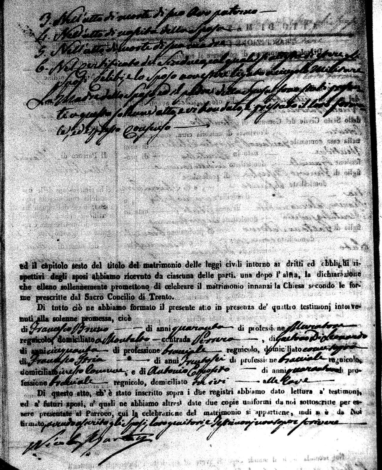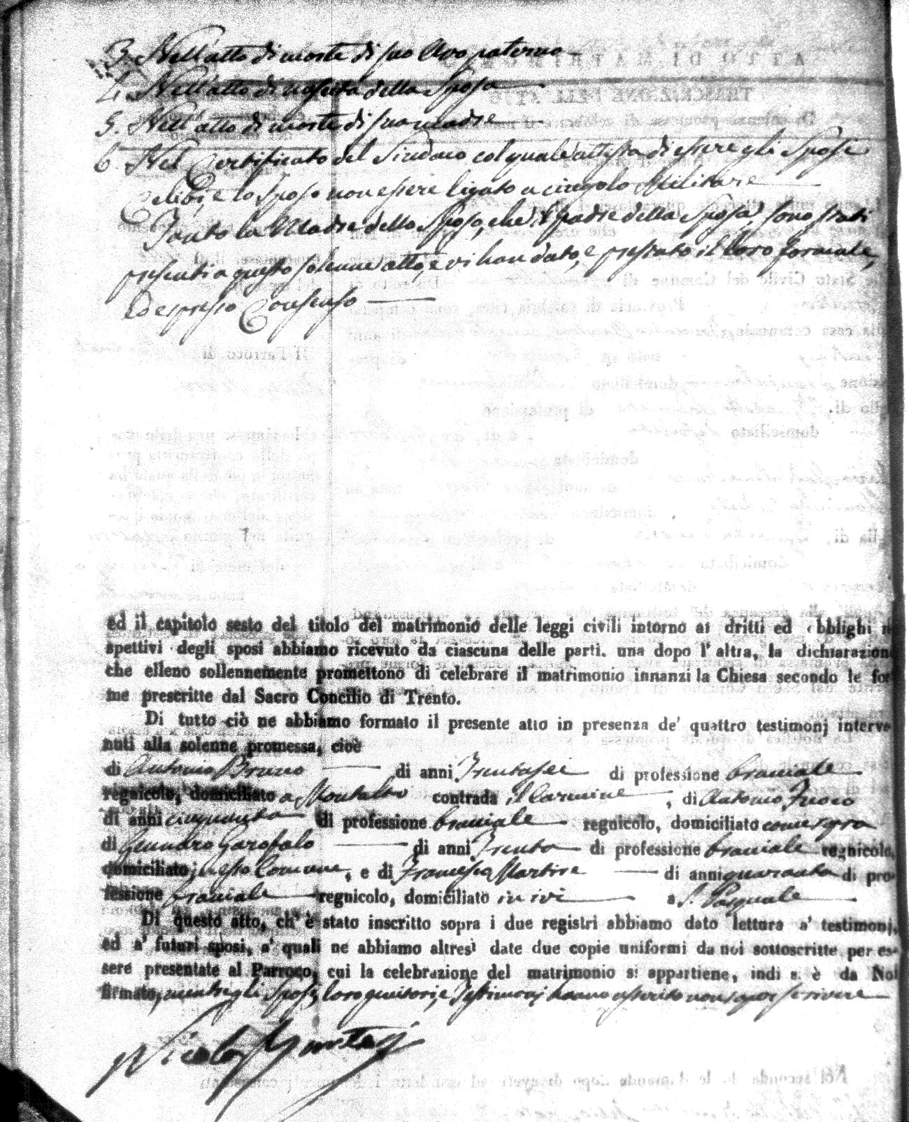 | Marchese | Antonio | Giuseppe (fu) | Alfano | Teresa | Corno | Chiara Maria | Saverio (fu) | Fuoco | Maddalena (fu) |