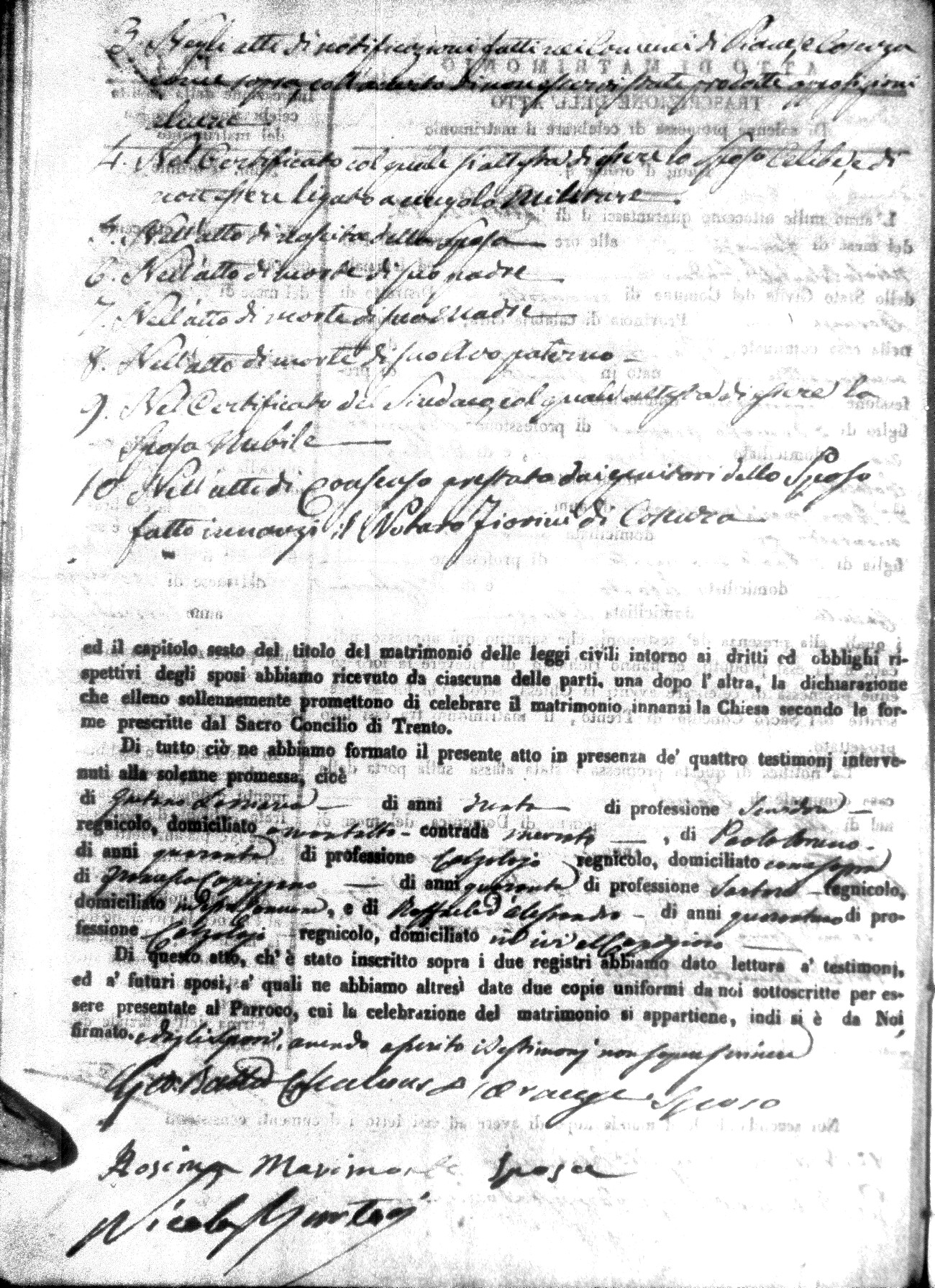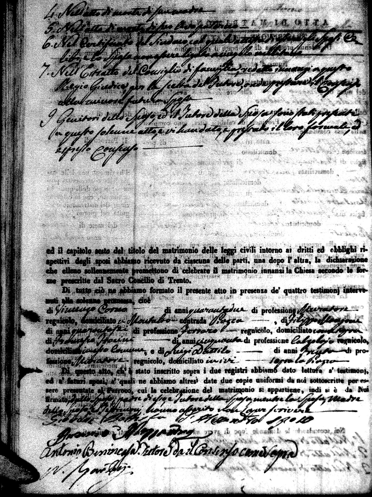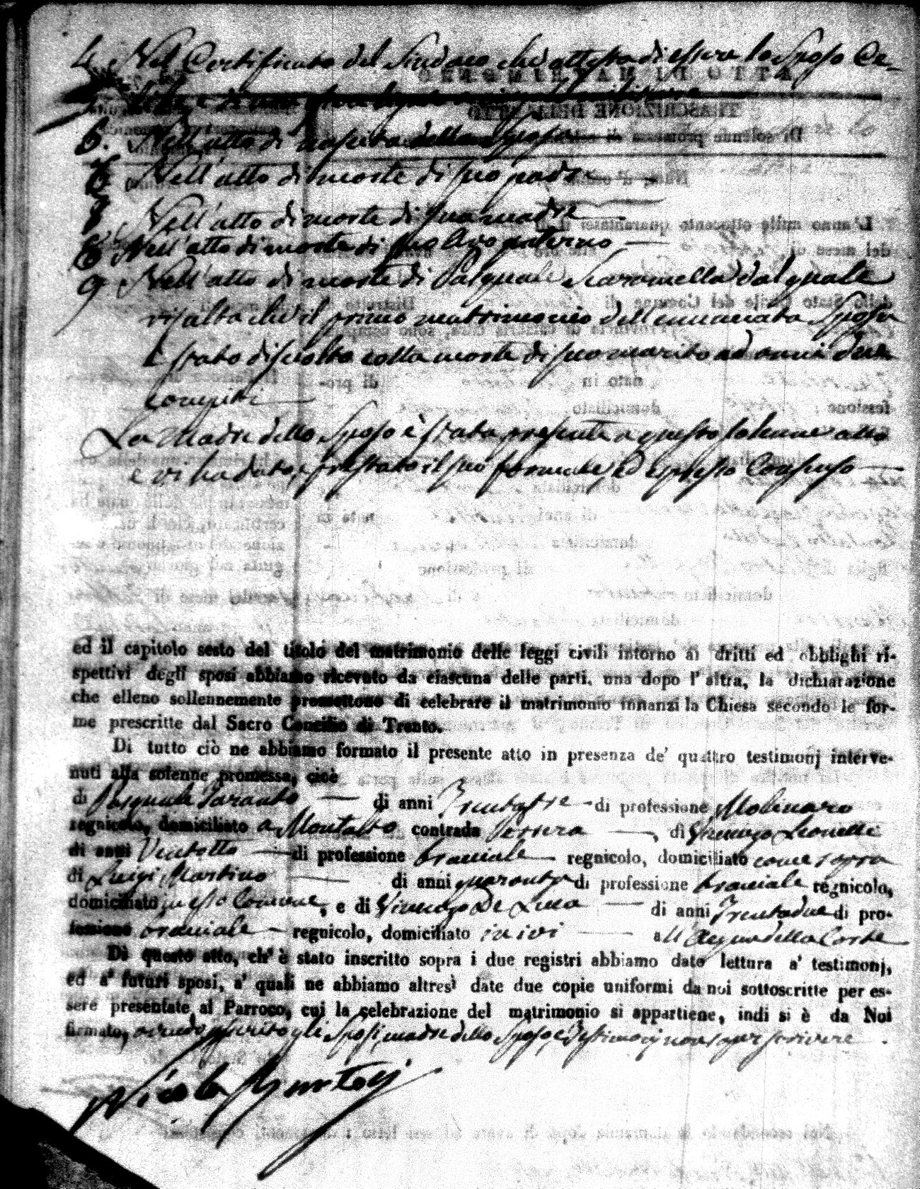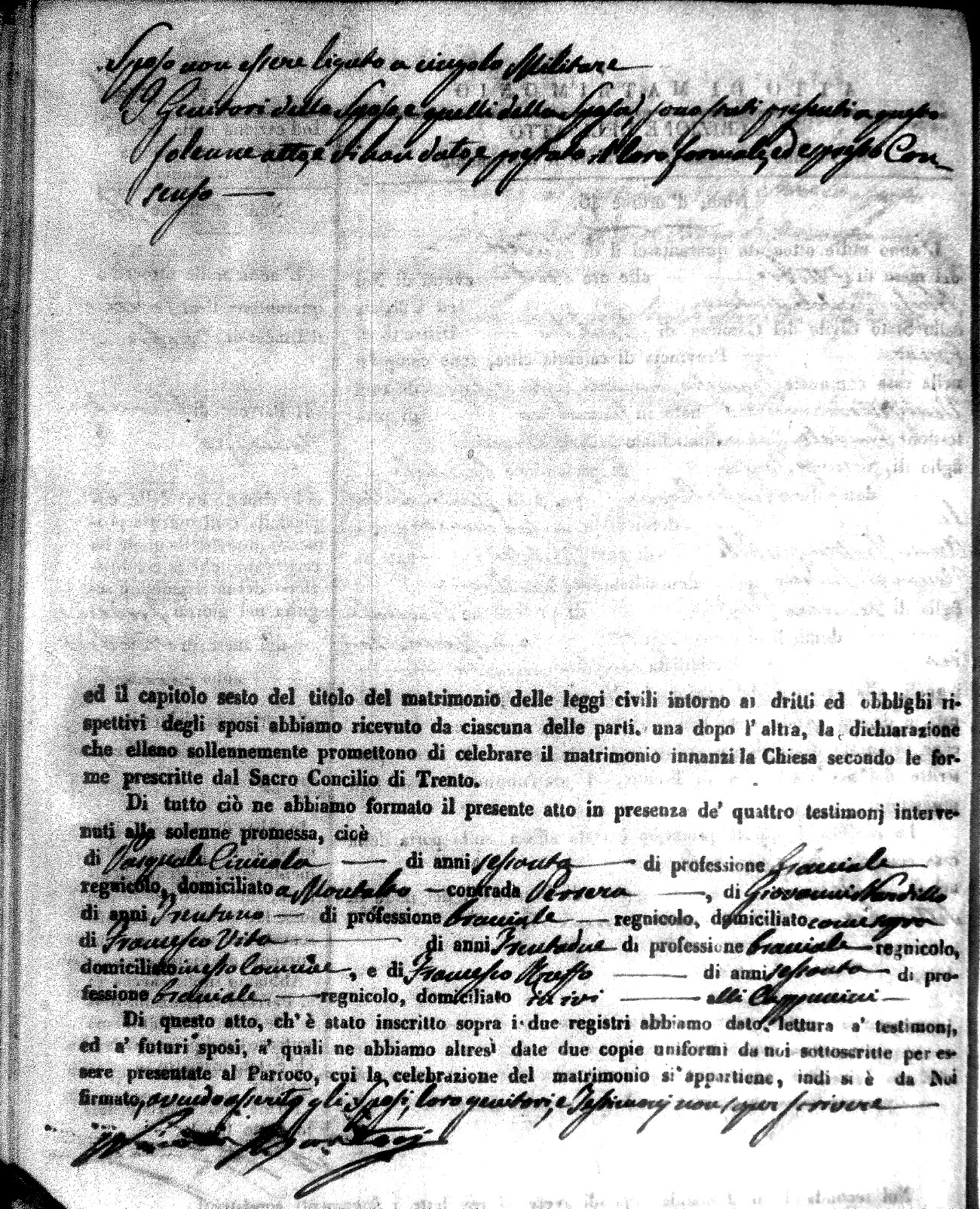 | Marchese | Antonio | Giuseppe (fu) | Alfano | Teresa | Corno | Chiara Maria | Saverio (fu) | Fuoco | Maddalena (fu) |