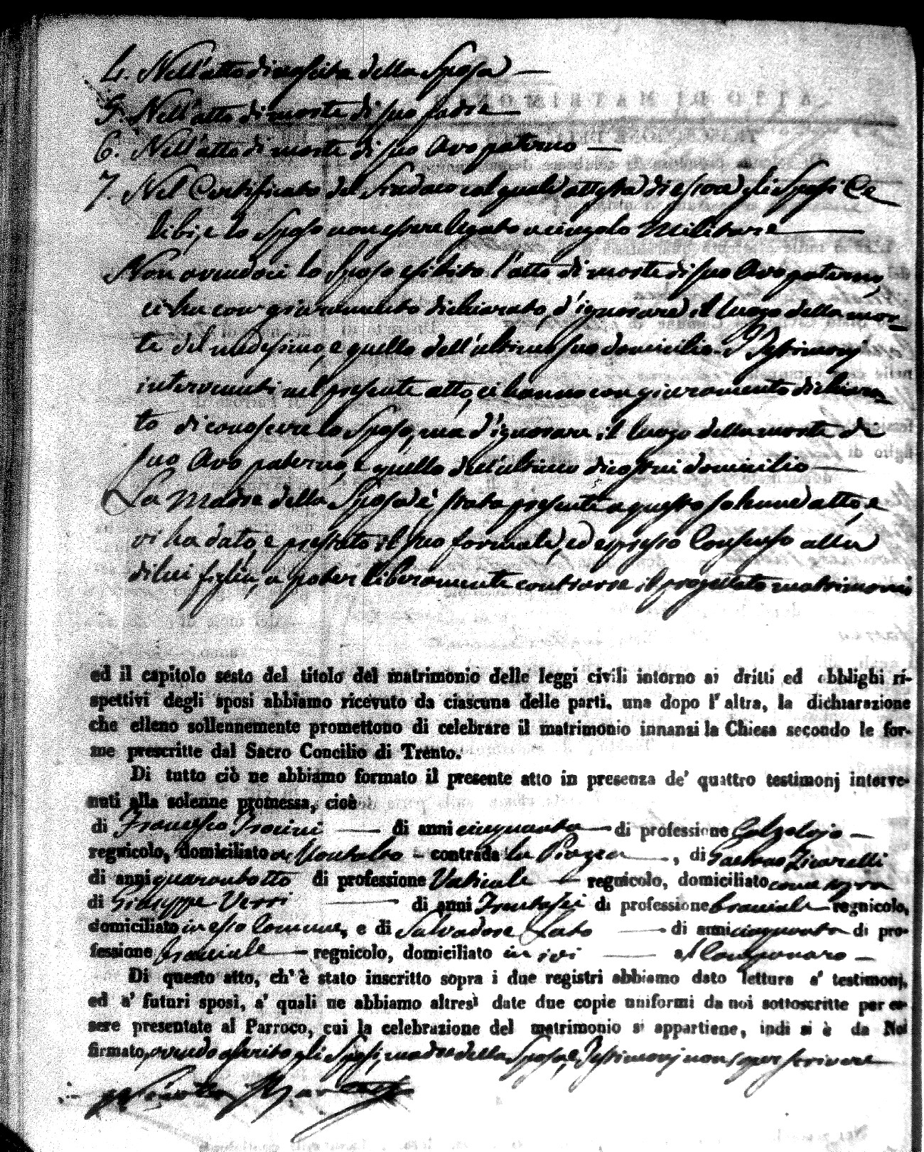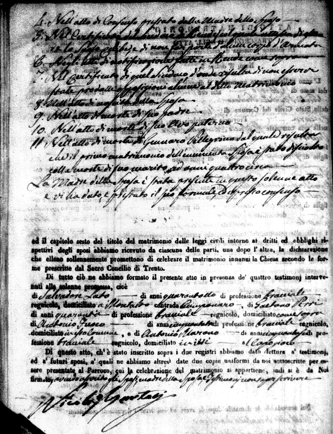 | Salerno | Michele Federico | Vincenzo (fu) | Salerno | Rosaria (fu) | LaValle | Maria Rosa | Francesco (fu) | Salerno | Chiara |