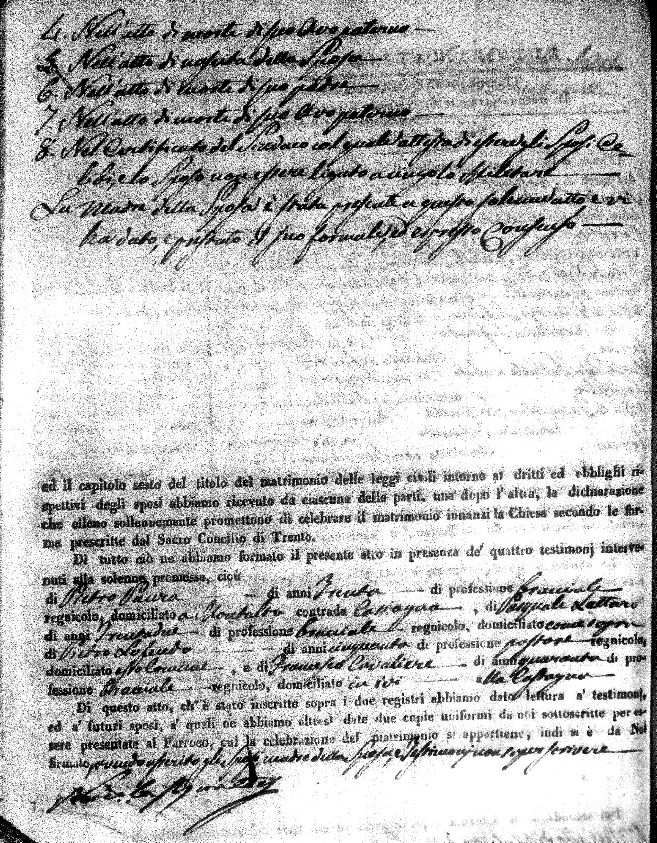 | Caparelli | Pietro Fortunato | Francesco (fu) | Storino | Rosaria | Fizzigno? | Angela Rosa | Francesco (fu) | DeMarco | Carmela |