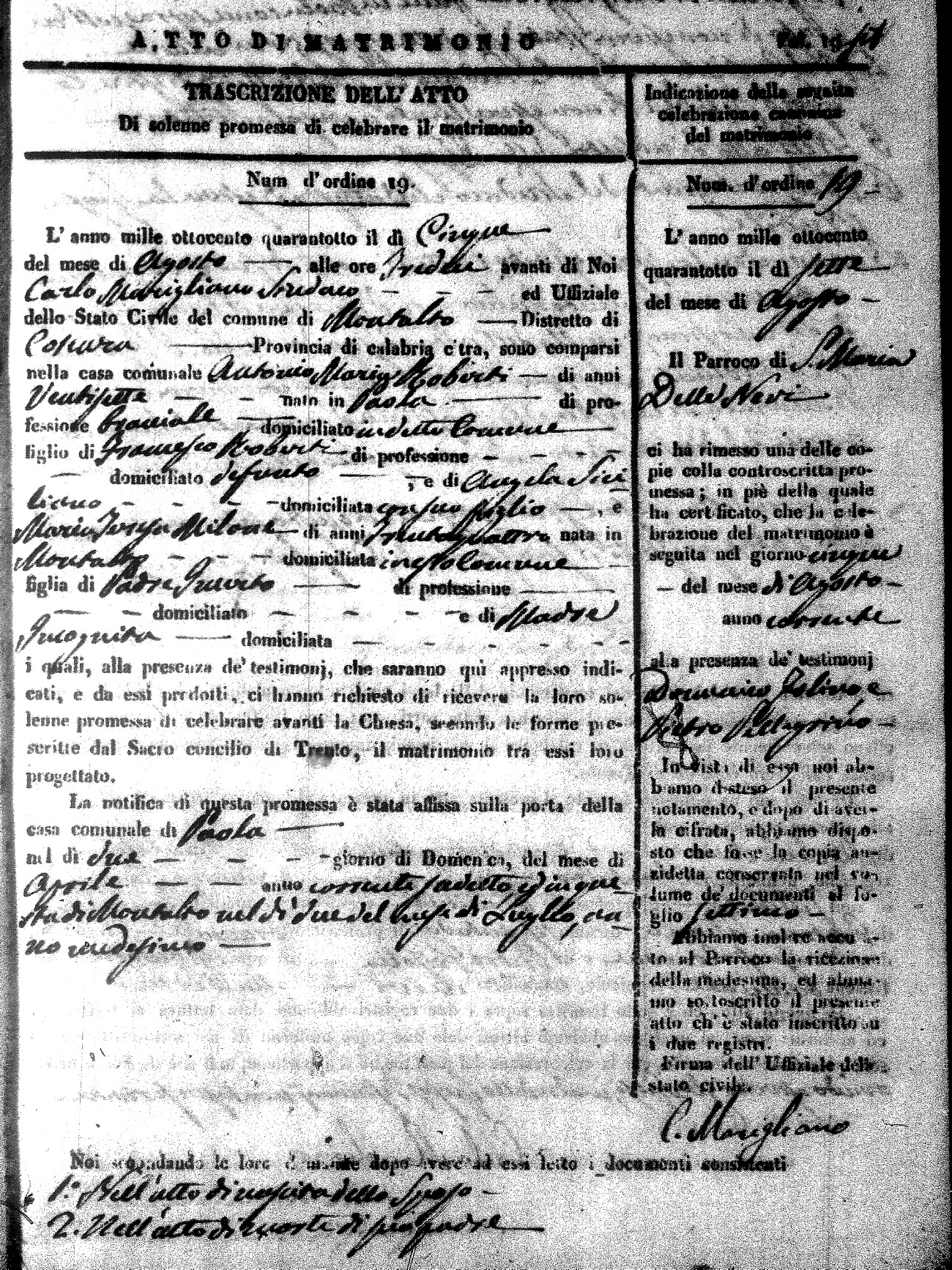 | Robirti | Antonio Maria | Francesco (fu) | Siciliano | Angela | Milone | Maria Teresa | unknown | unknown | unknown | |