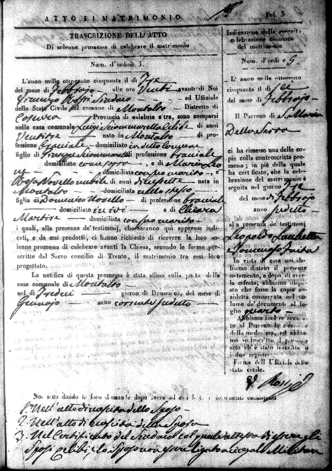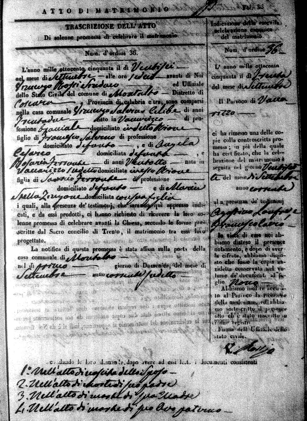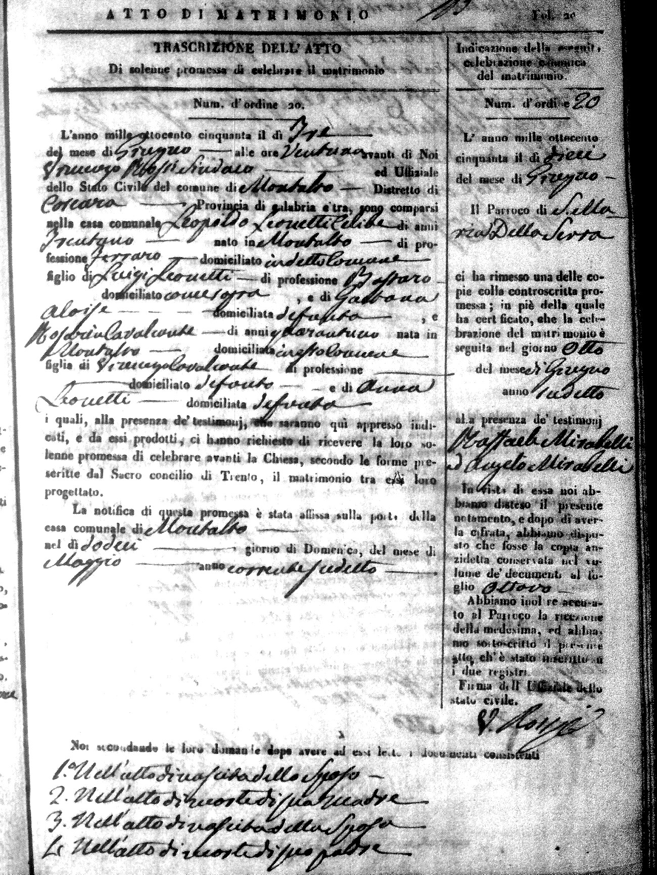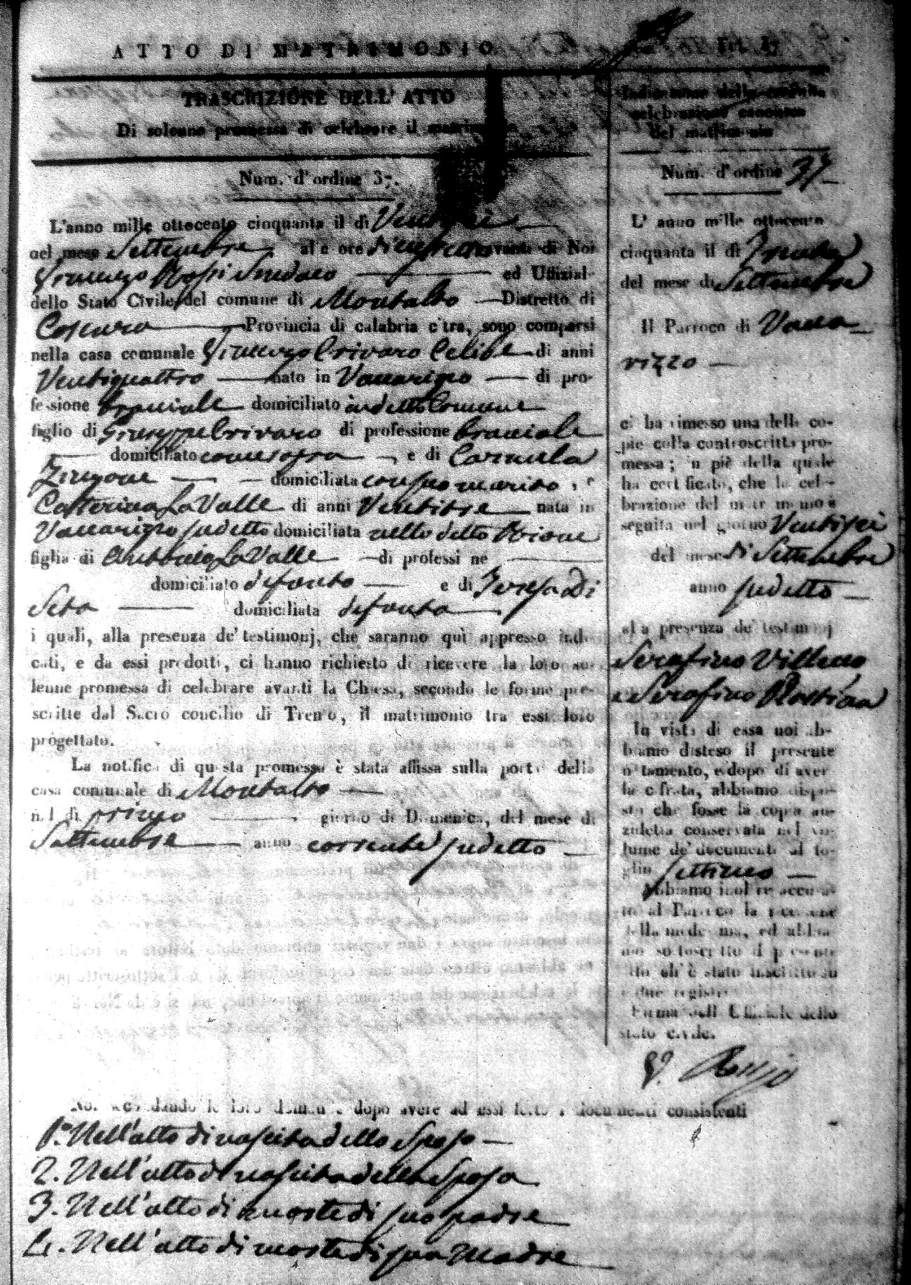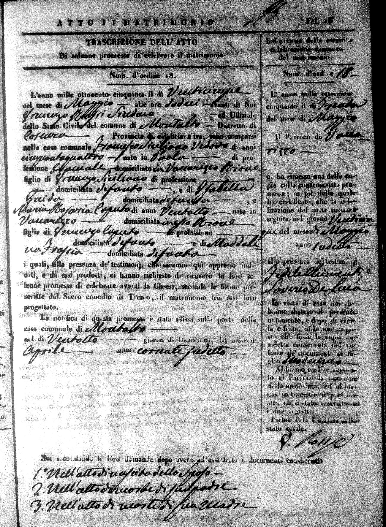 Here are the extractions for all the marriage acts in 1850 for Montalto Uffugo. For more information, click on the groom's surname to view a copy of the original document.