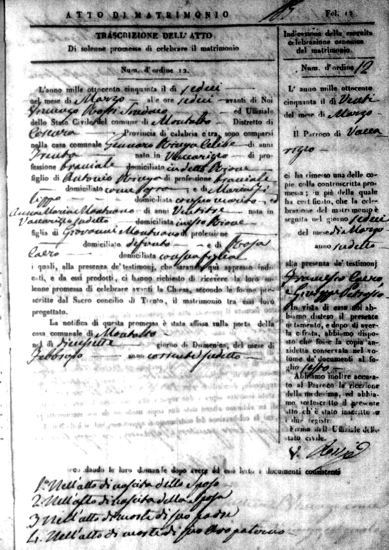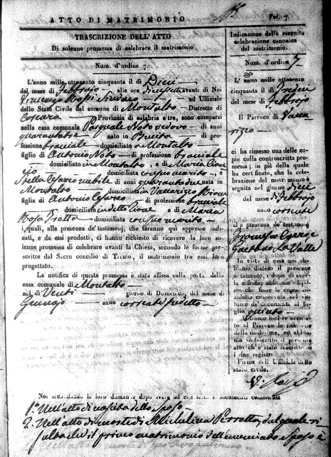 | 7 Mar | Mozzotti | Francesco | Vincenzo (fu) | Caruso | Angela | Calomino | Angela | Giuseppe | Cesareo | Innocenza |