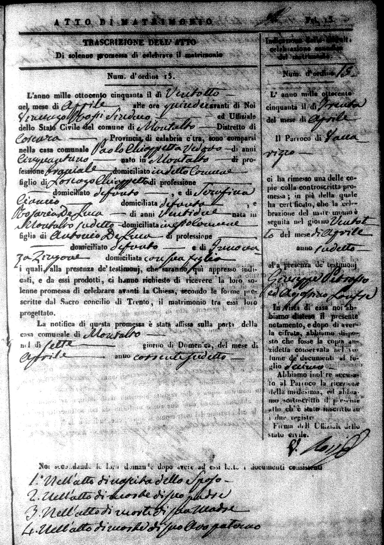 | 28 Apr | Chiapetta | Paolo | Lorenzo (fu) | Ciancio | Serafina (fu) | DeLuca | Rosaria | Antonio (fu) | Zingone | Innocenza |