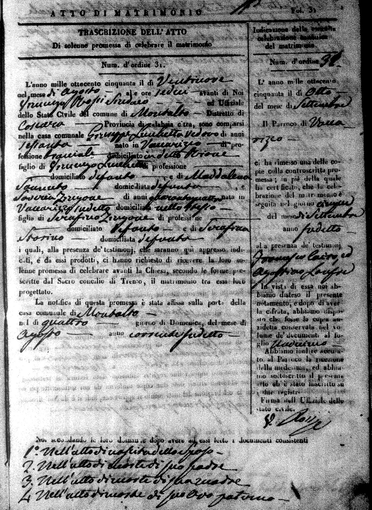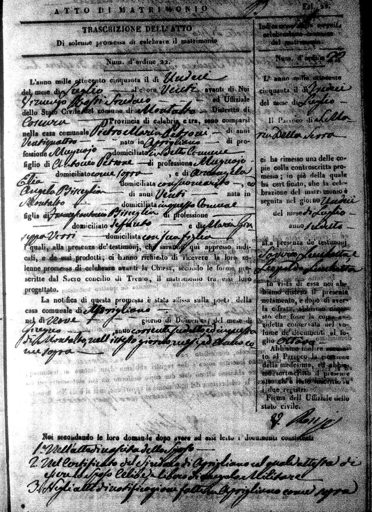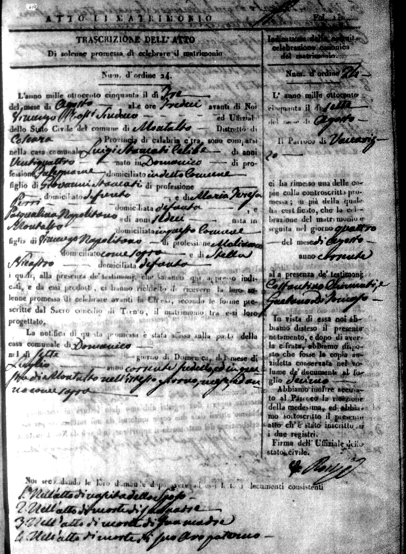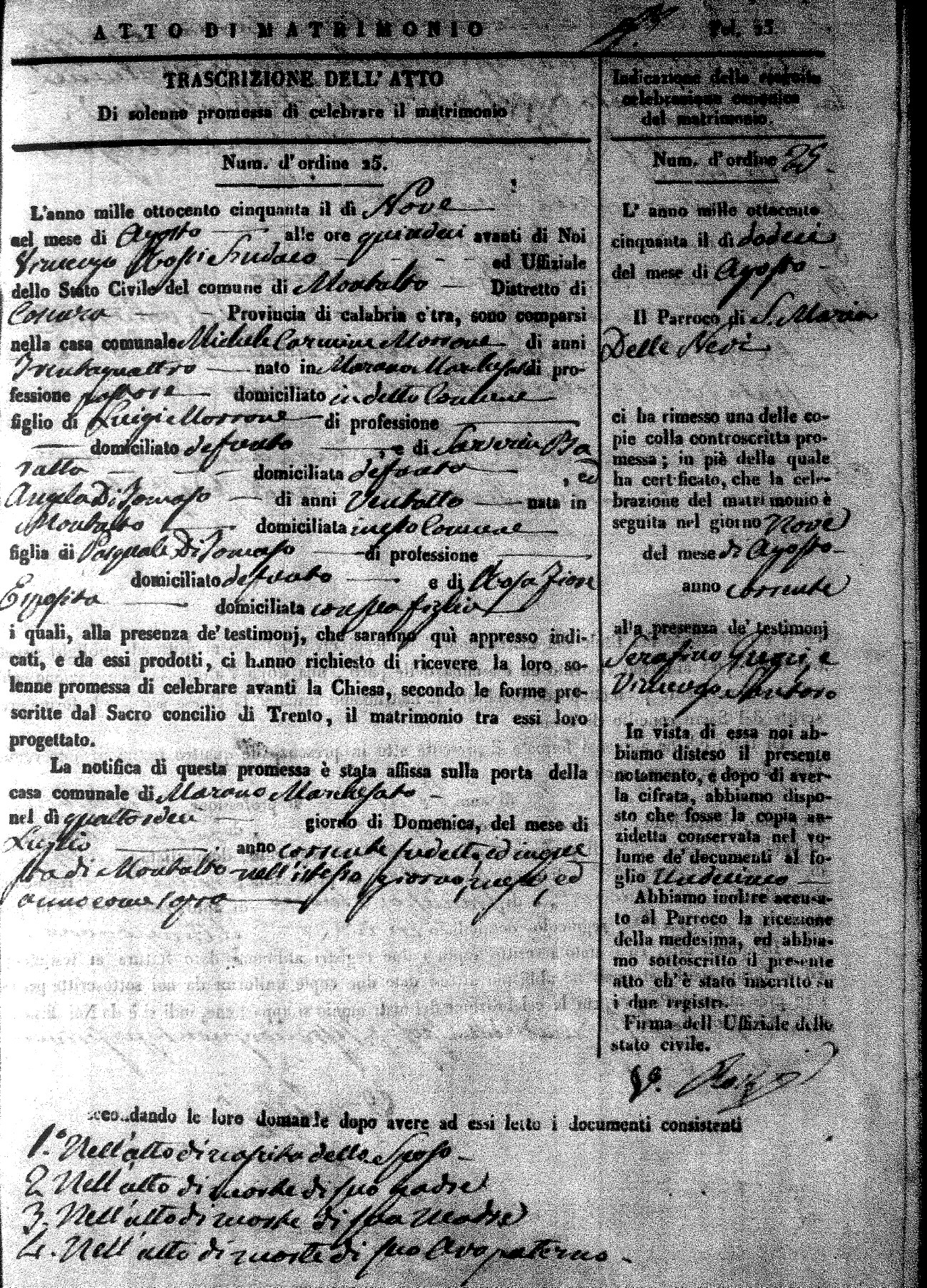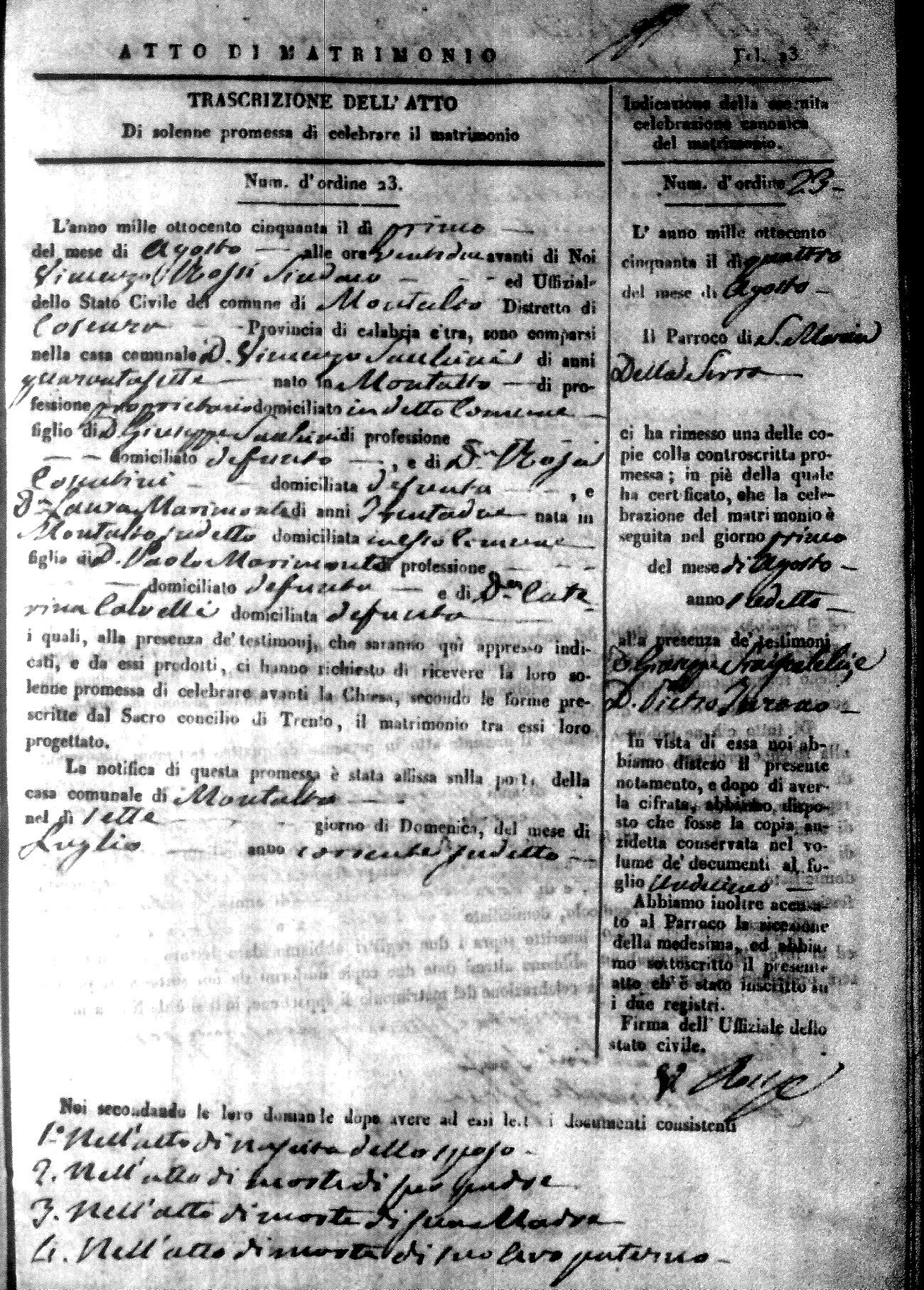 | 1 Aug | Saulini | Vincenzo | Giuseppe (fu) | Cosentini | Rosa (fu) | Marimonte | Laura | Paolo (fu) | Calvelli | Caterina (fu) |