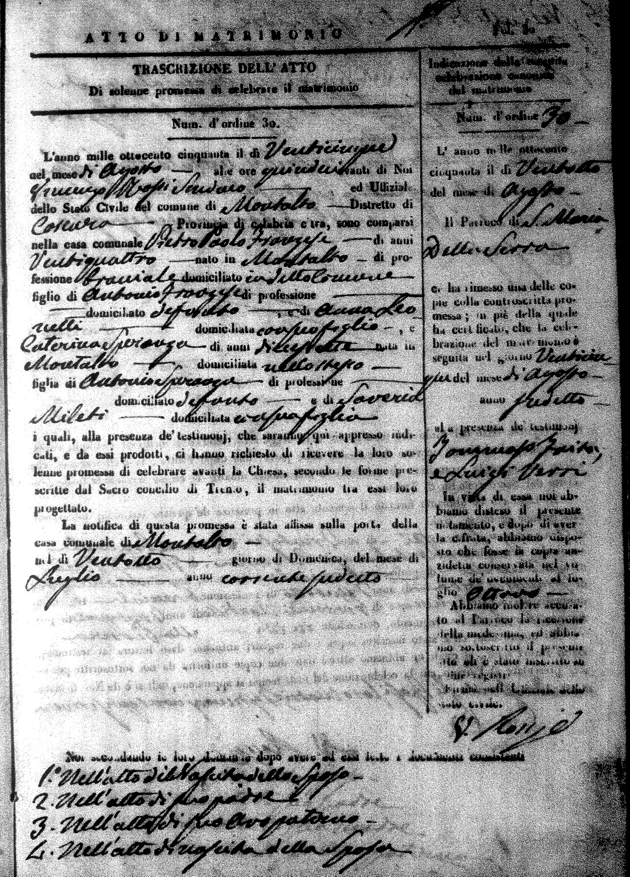 | 25 Aug | Franzese | Pietro Paolo | Antonio (fu) | Leonetti | Anna | Speranza | Caterina | Antonio (fu) | Mileti | Saveria |