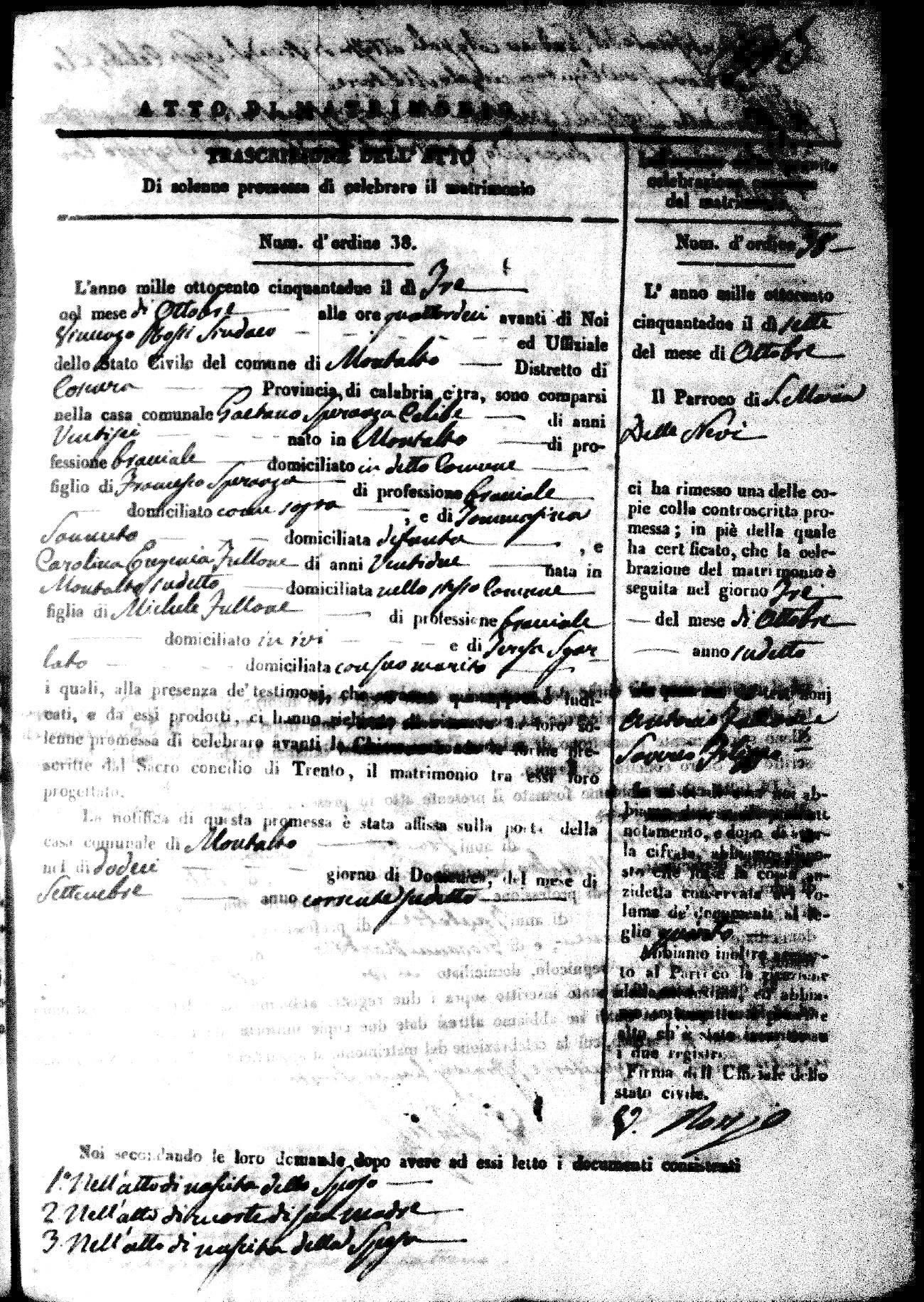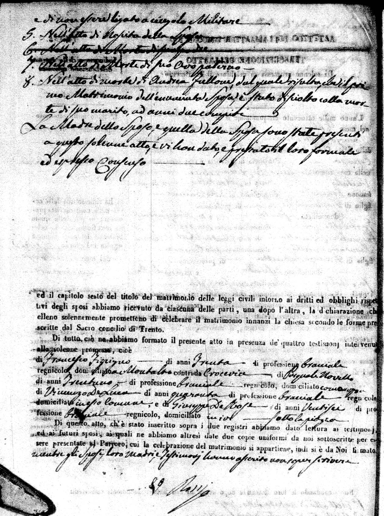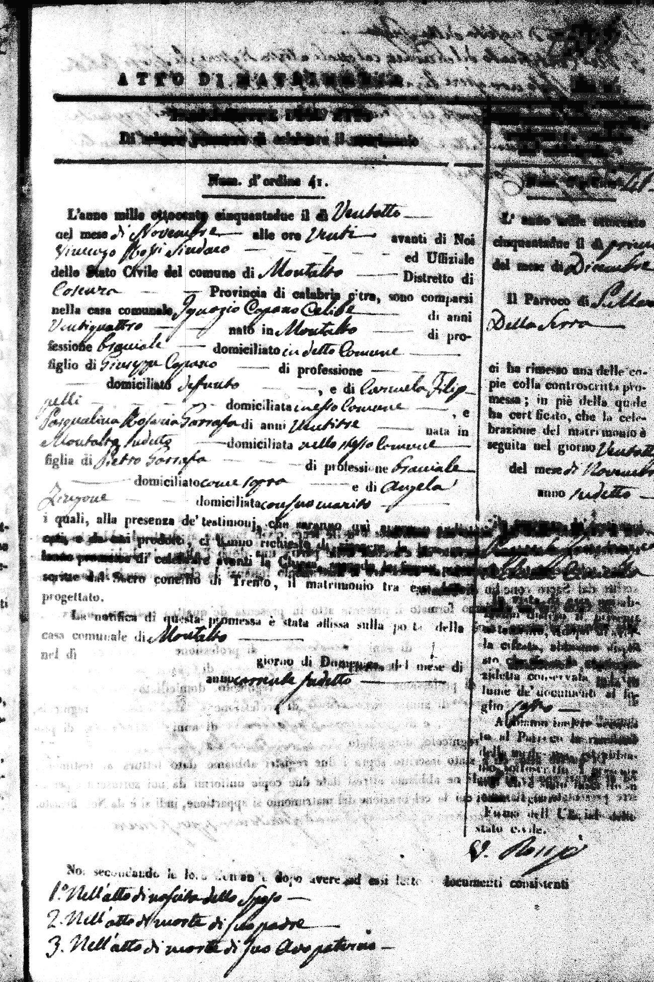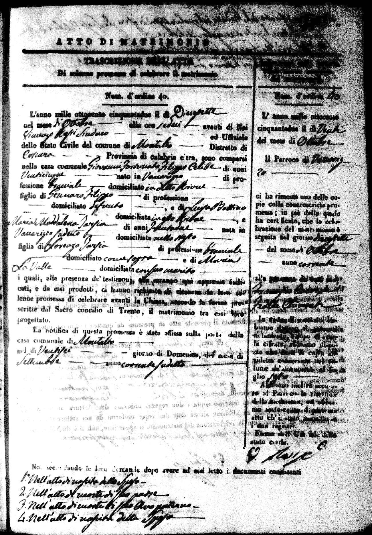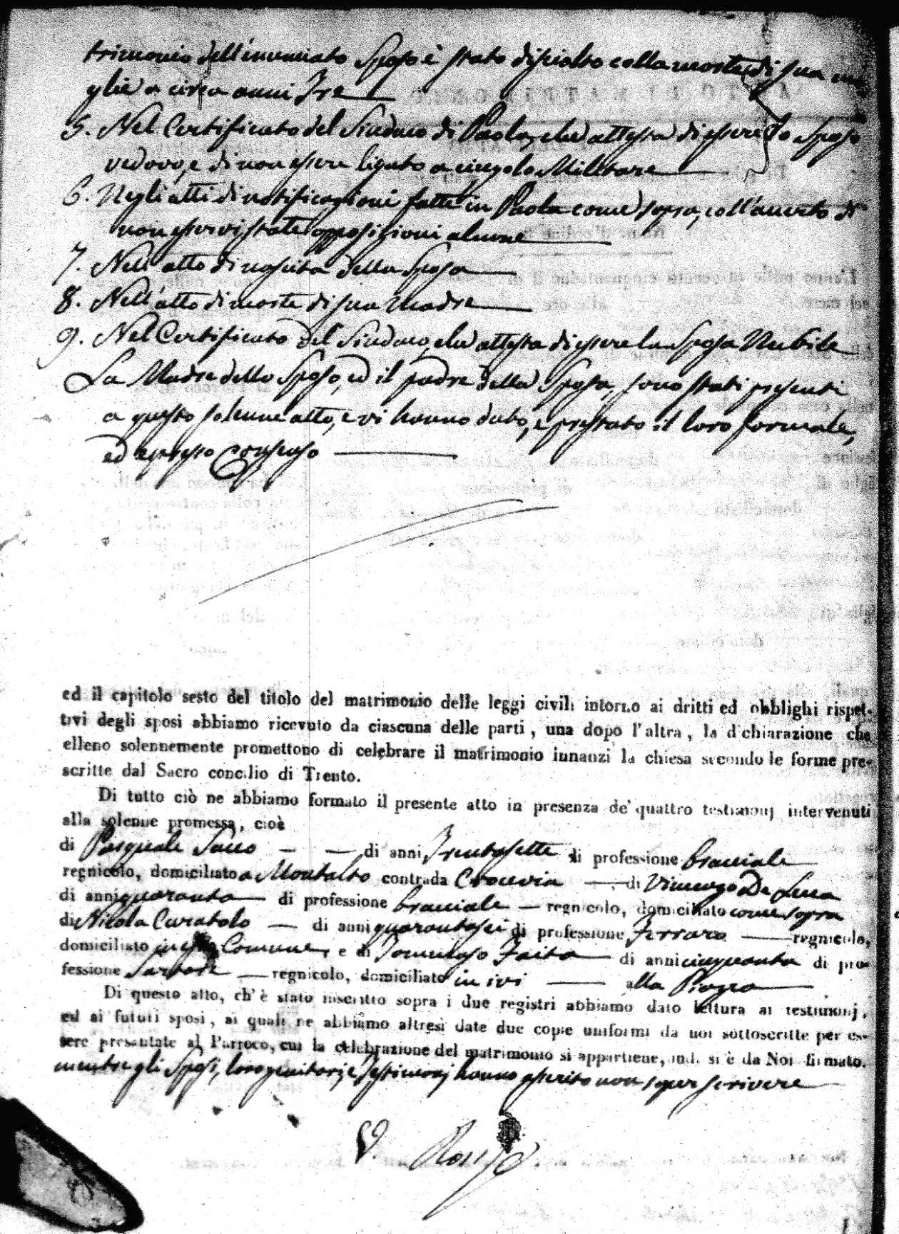 | 7 Mar | Spizirri | Alessandro | Francesco (fu) | Belmonte | Maria (fu) | LoFeudo | Michelina | Bruno (fu) | DeLuca | Angela Maria (fu) |