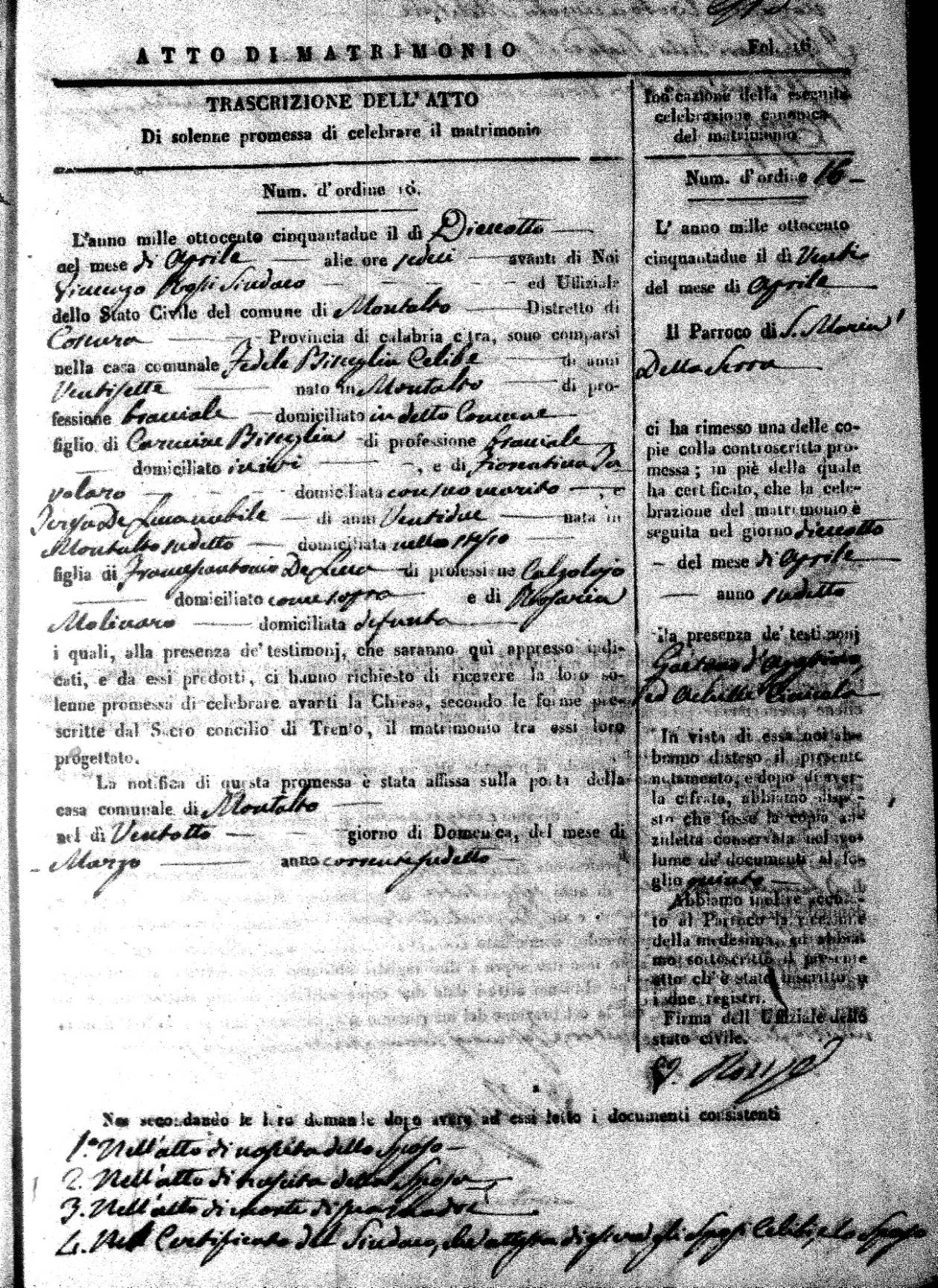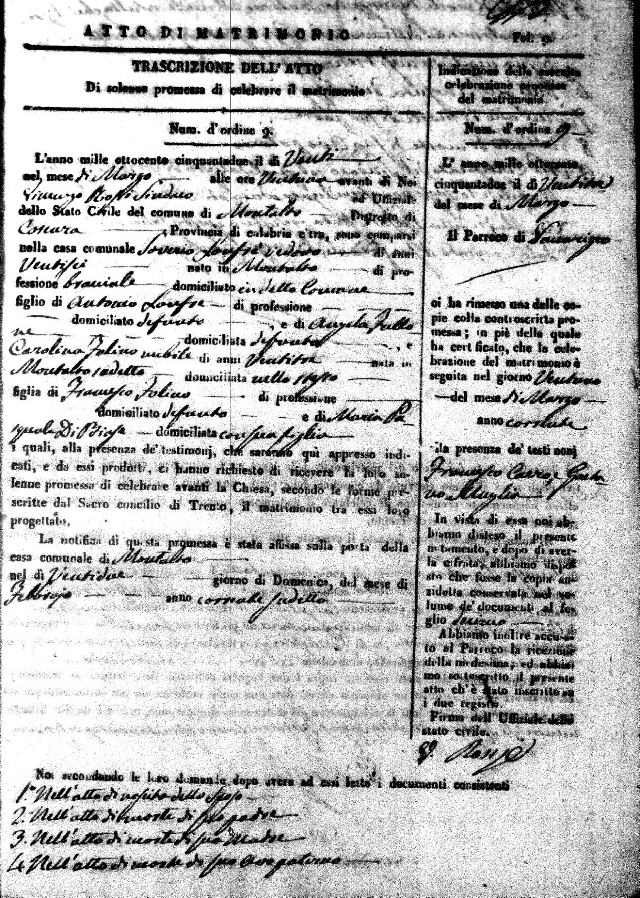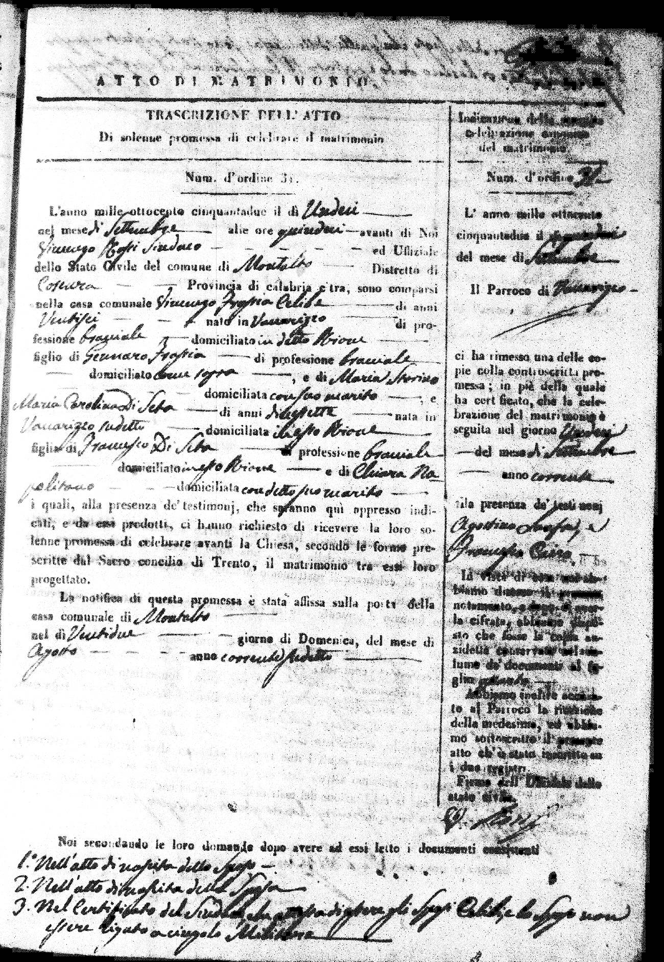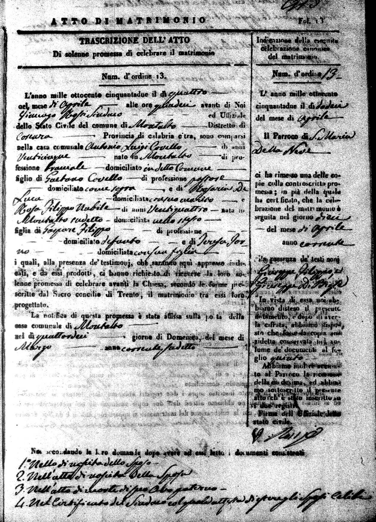 | 7 Mar | Spizirri | Alessandro | Francesco (fu) | Belmonte | Maria (fu) | LoFeudo | Michelina | Bruno (fu) | DeLuca | Angela Maria (fu) |