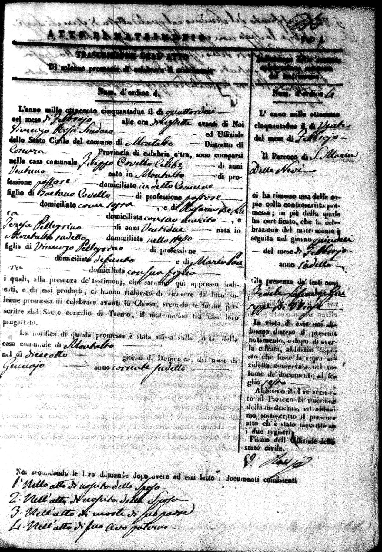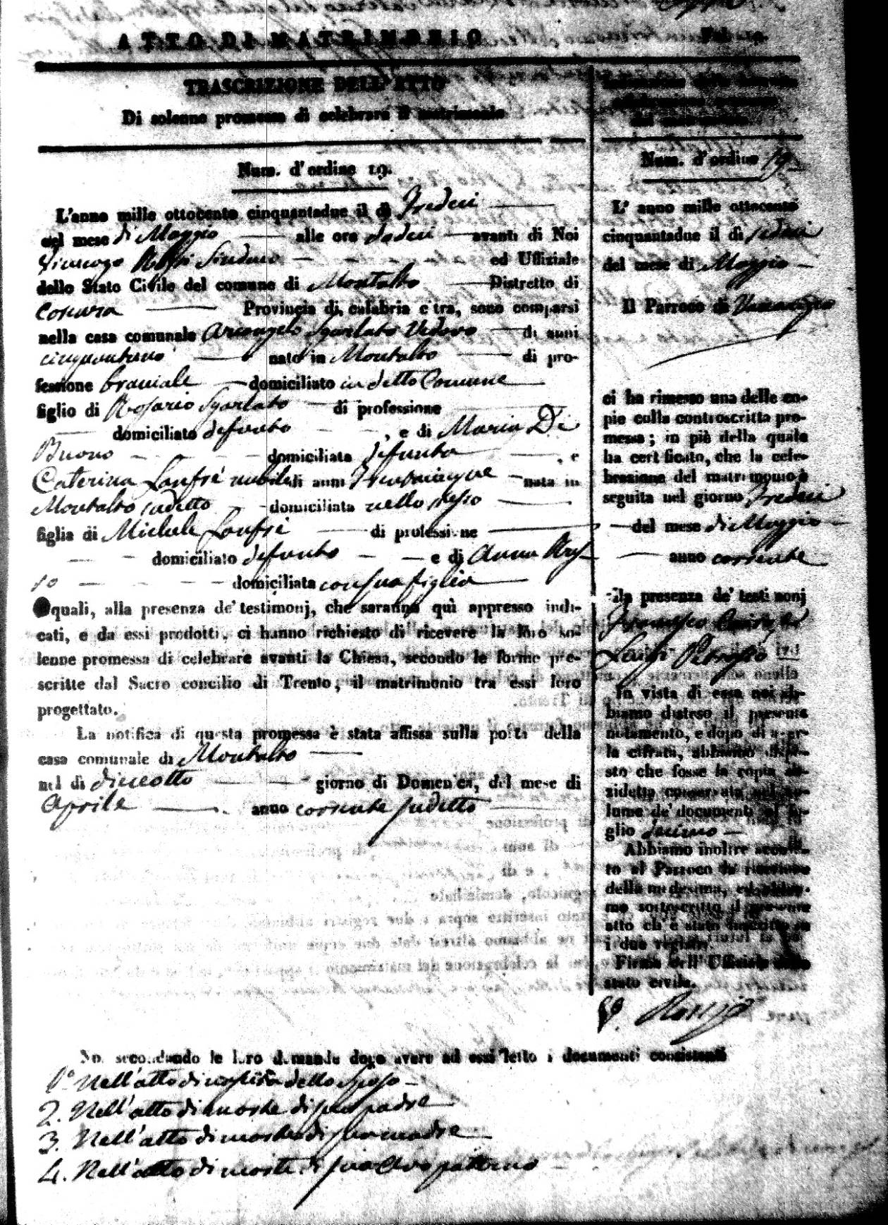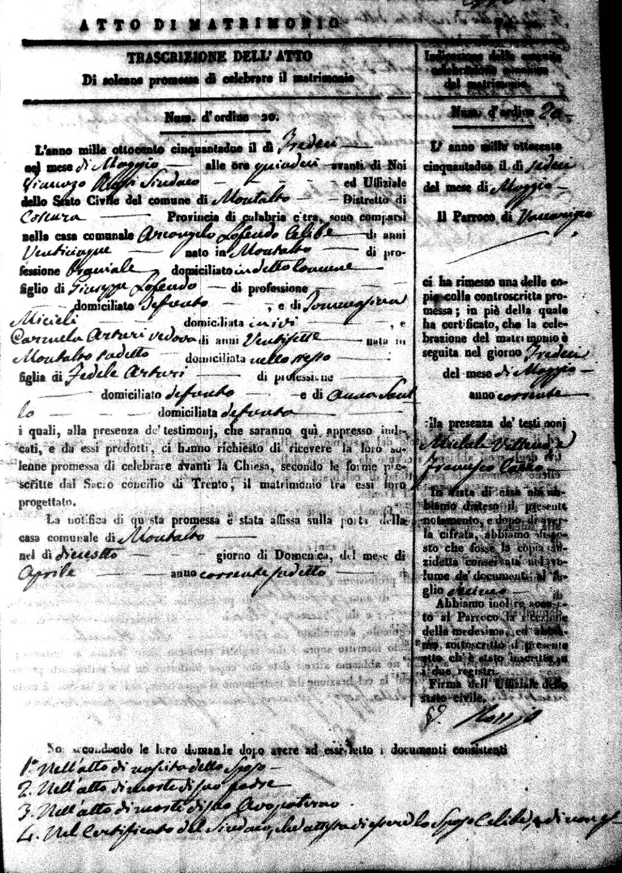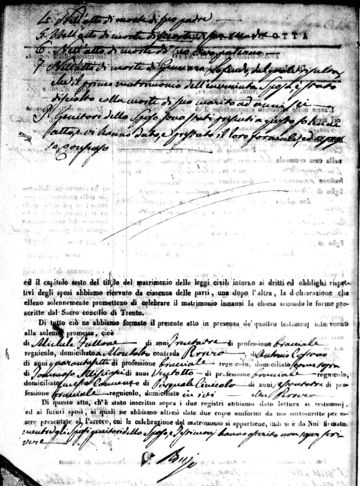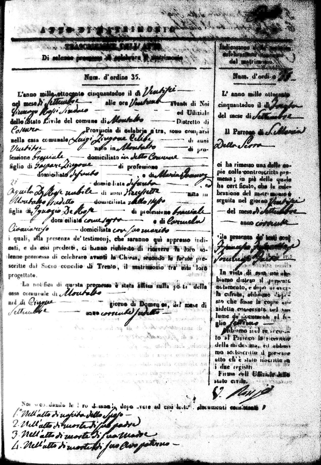 | 7 Mar | Spizirri | Alessandro | Francesco (fu) | Belmonte | Maria (fu) | LoFeudo | Michelina | Bruno (fu) | DeLuca | Angela Maria (fu) |