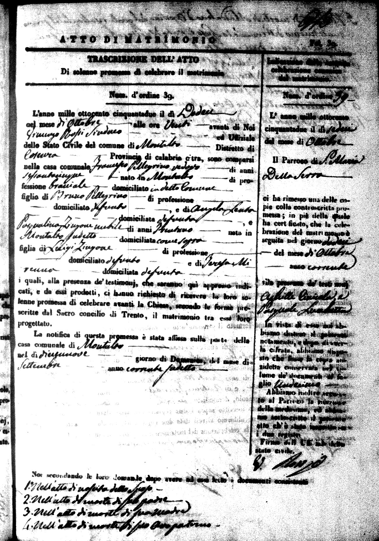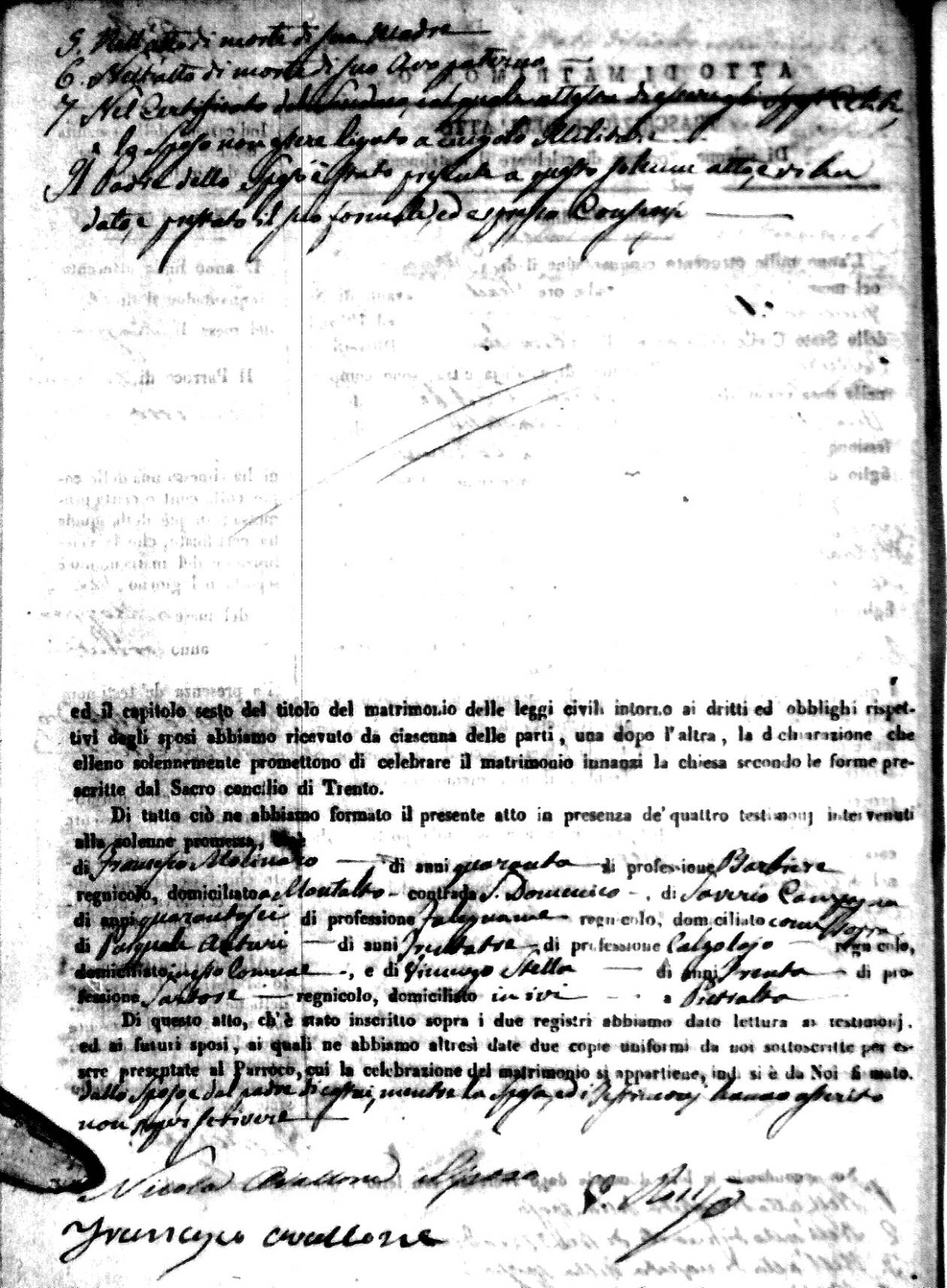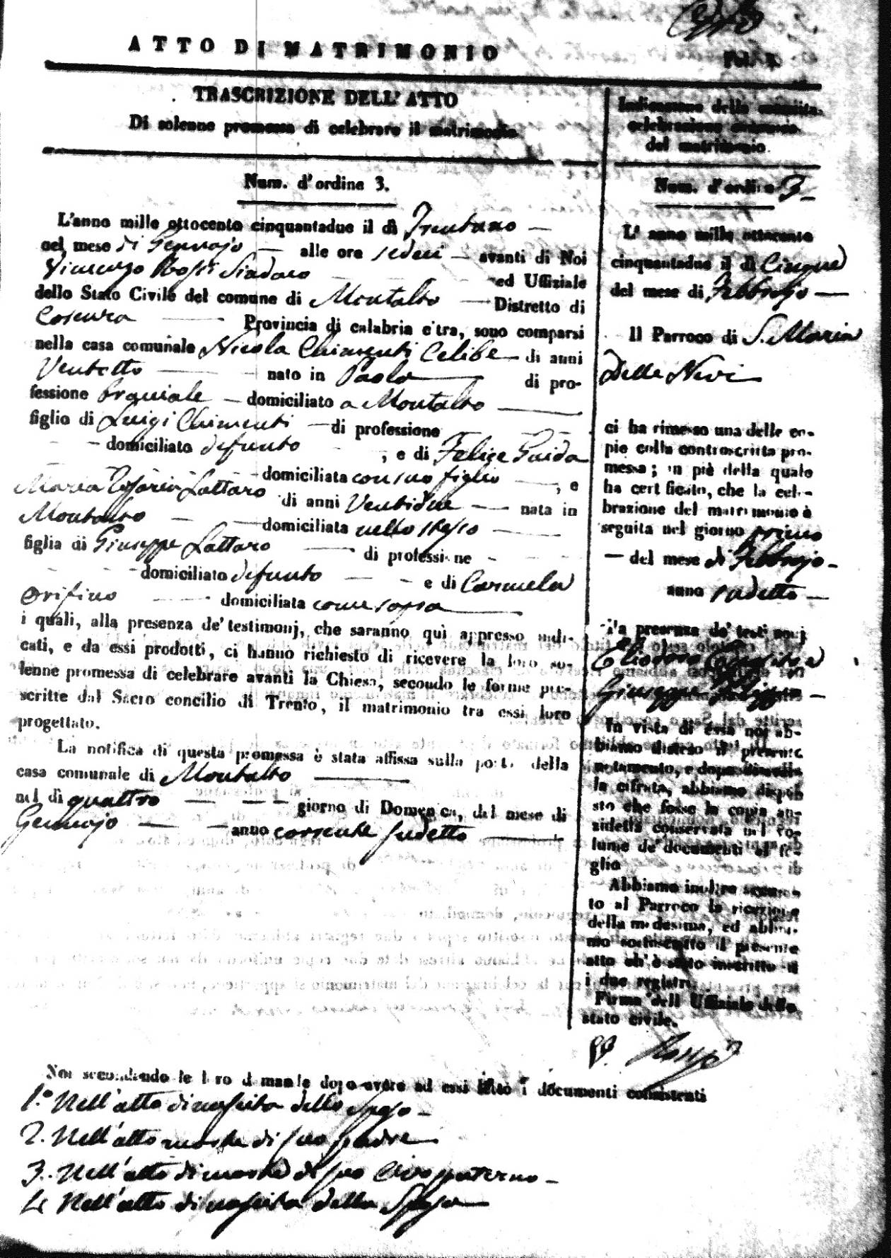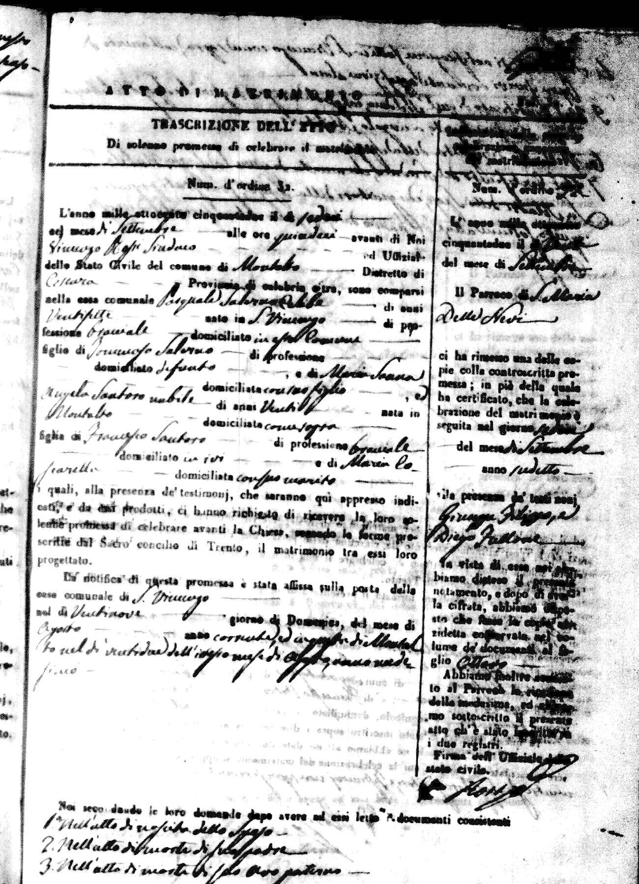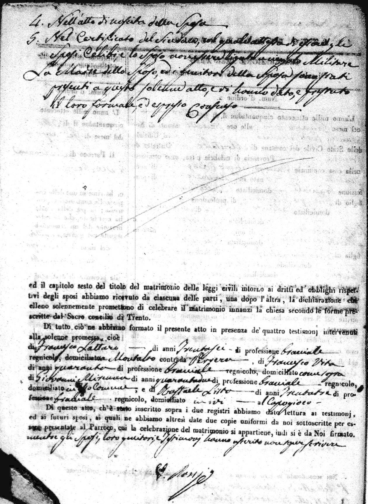 | 7 Mar | Spizirri | Alessandro | Francesco (fu) | Belmonte | Maria (fu) | LoFeudo | Michelina | Bruno (fu) | DeLuca | Angela Maria (fu) |