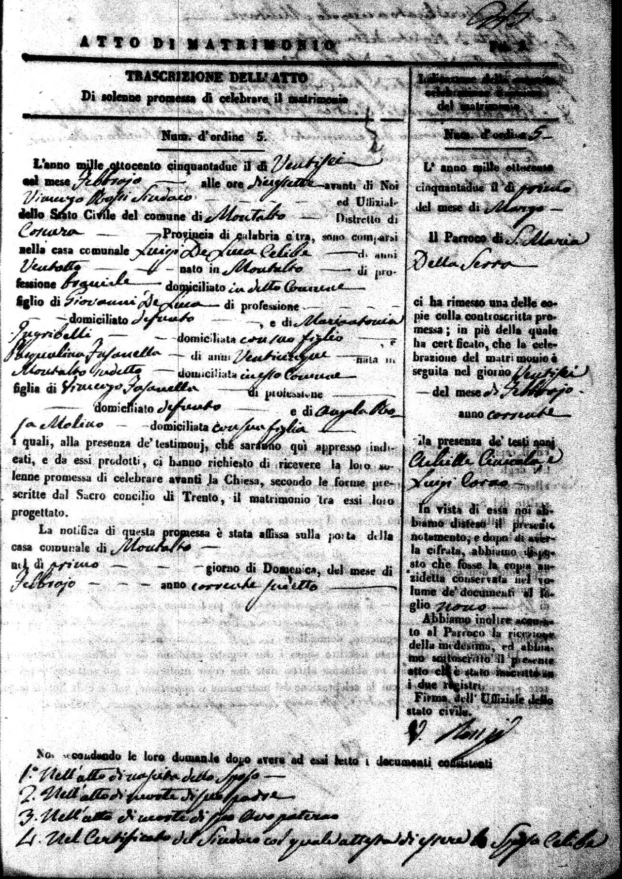 | 26 Feb | DeLuca | Luigi | Giovanni (fu) | Ingribelli | Mariantonia | Fasanella | Pasqualina | Vincenzo (fu) | Molino | Angela Rosa |