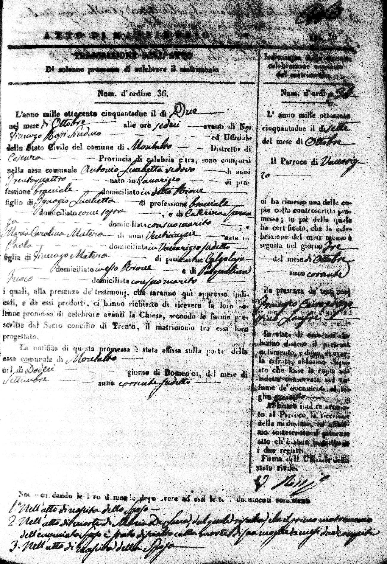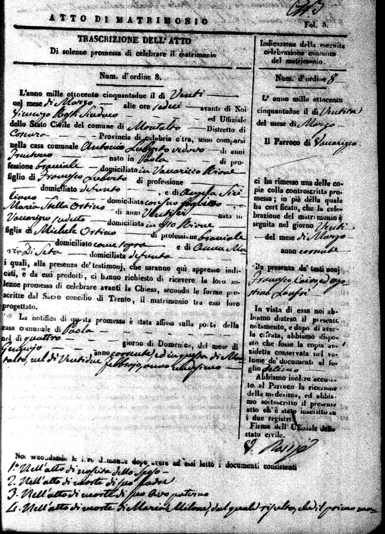 | 20 Mar | Luberto | Antonio | Francesco (fu) | Siciliano | Angela | Ortino | Maria Stella | Michele | DiSeta | Anna Maria (fu) |