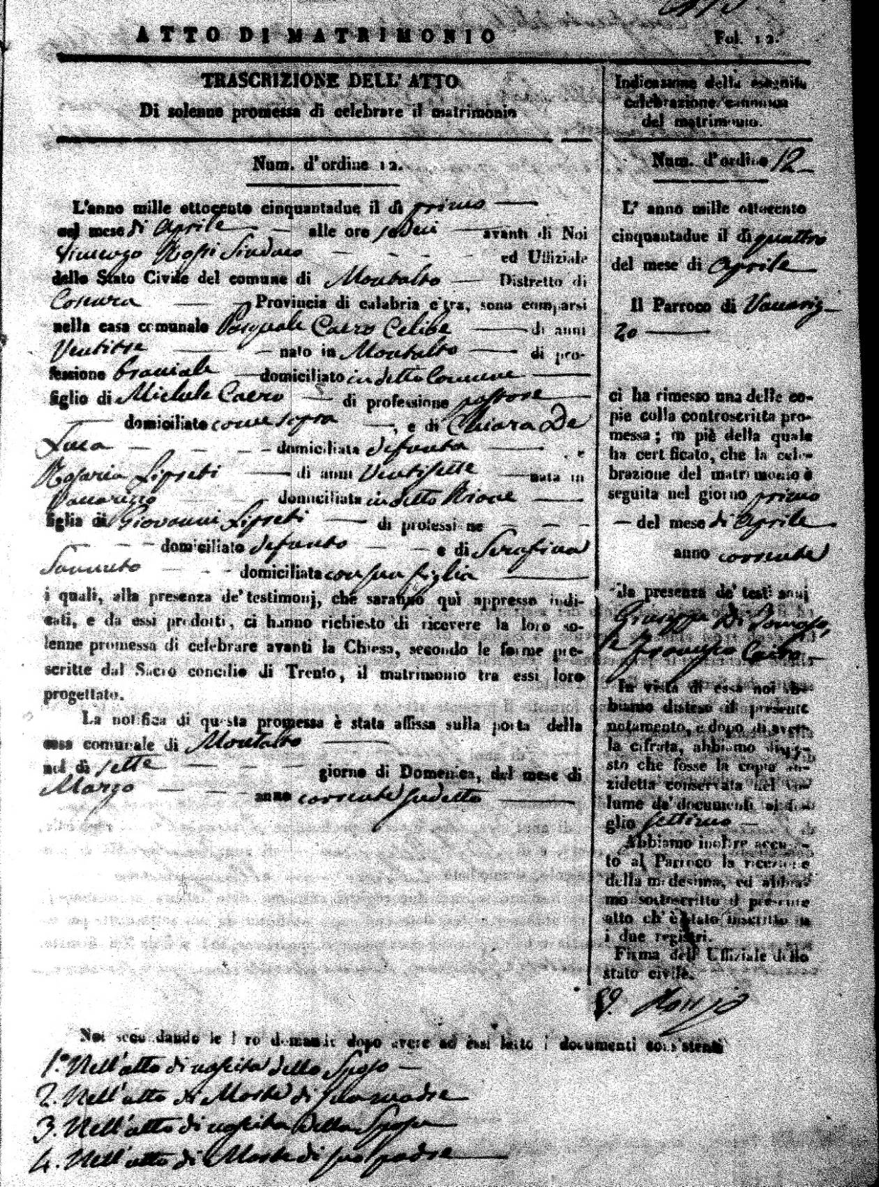 | 1 Apr | Caero | Pasquale | Michele | DeLuca | Chiara (fu) | Lipreti | Rosaria | Giovanni (fu) | Sannuto | Serafina |