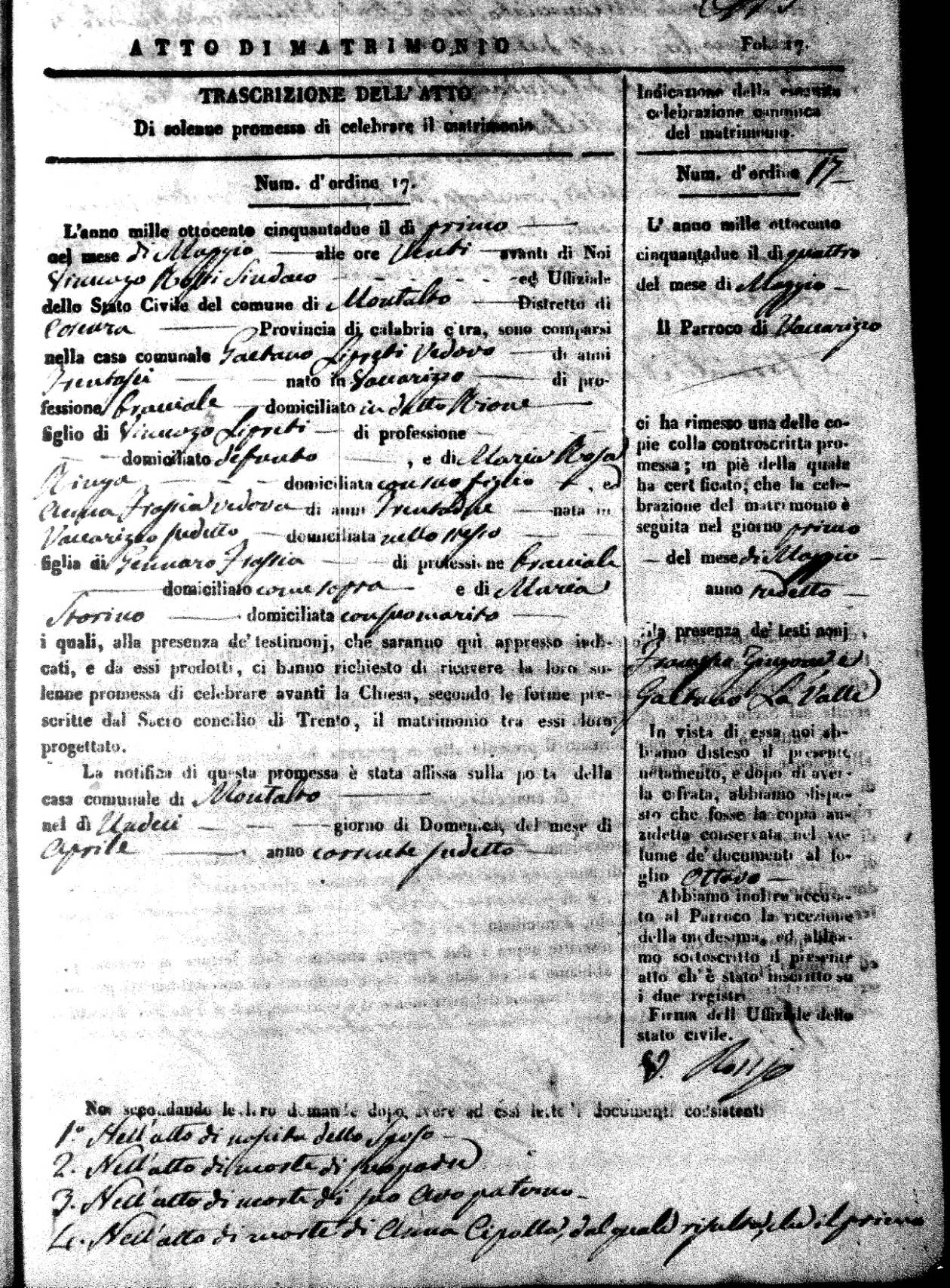 | 2 May | Avallone | Nicola | Francesco | DeLio | Maria Giuseppa (fu) | Cirella | Agota | Saverio (fu) | Turano | Rosa (fu) |