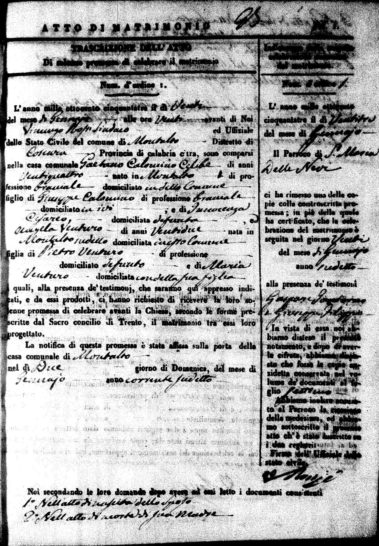 | 23 Jan | Calomino | Gaetano | Giuseppe | Cesario | Innocenza (fu) | Venturo | Angela | Pietro (fu) | Venturo | Maria |