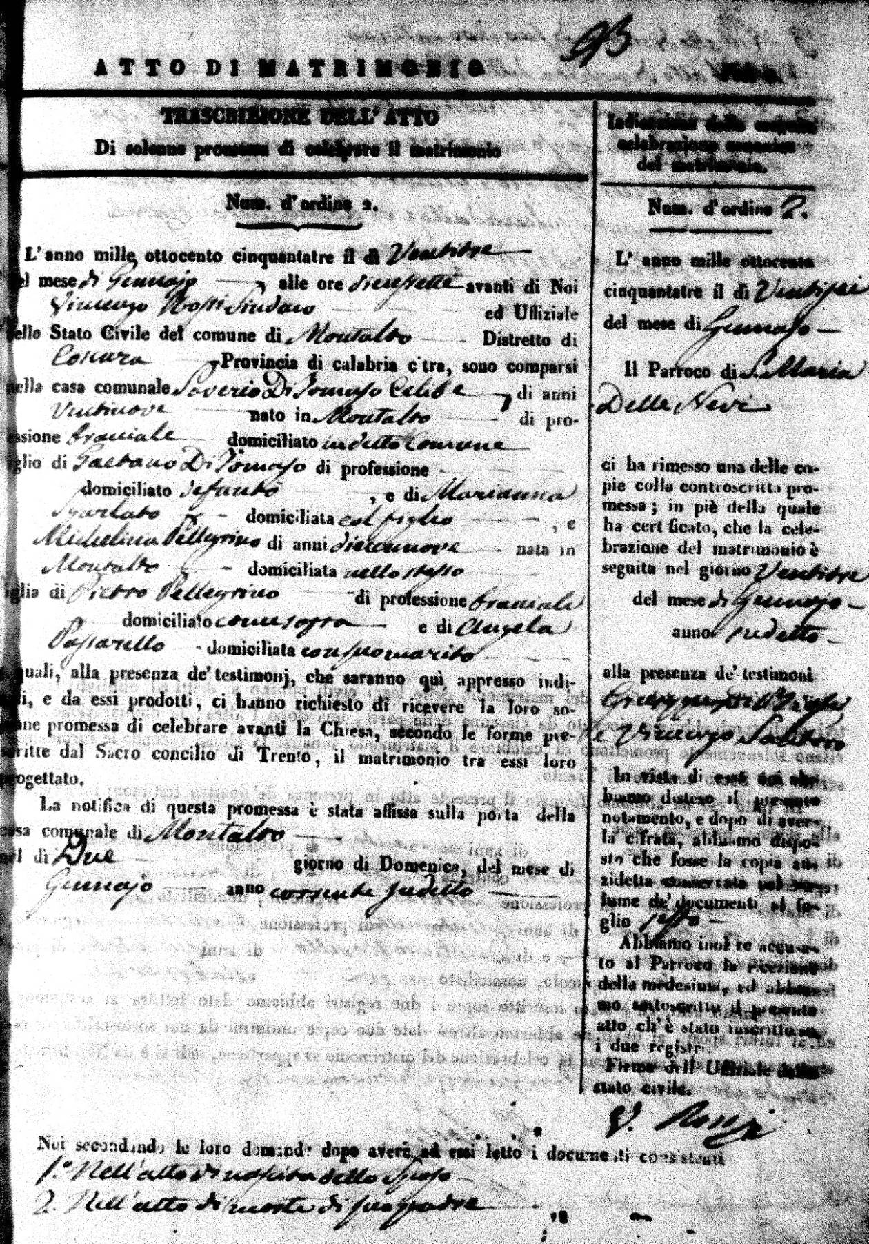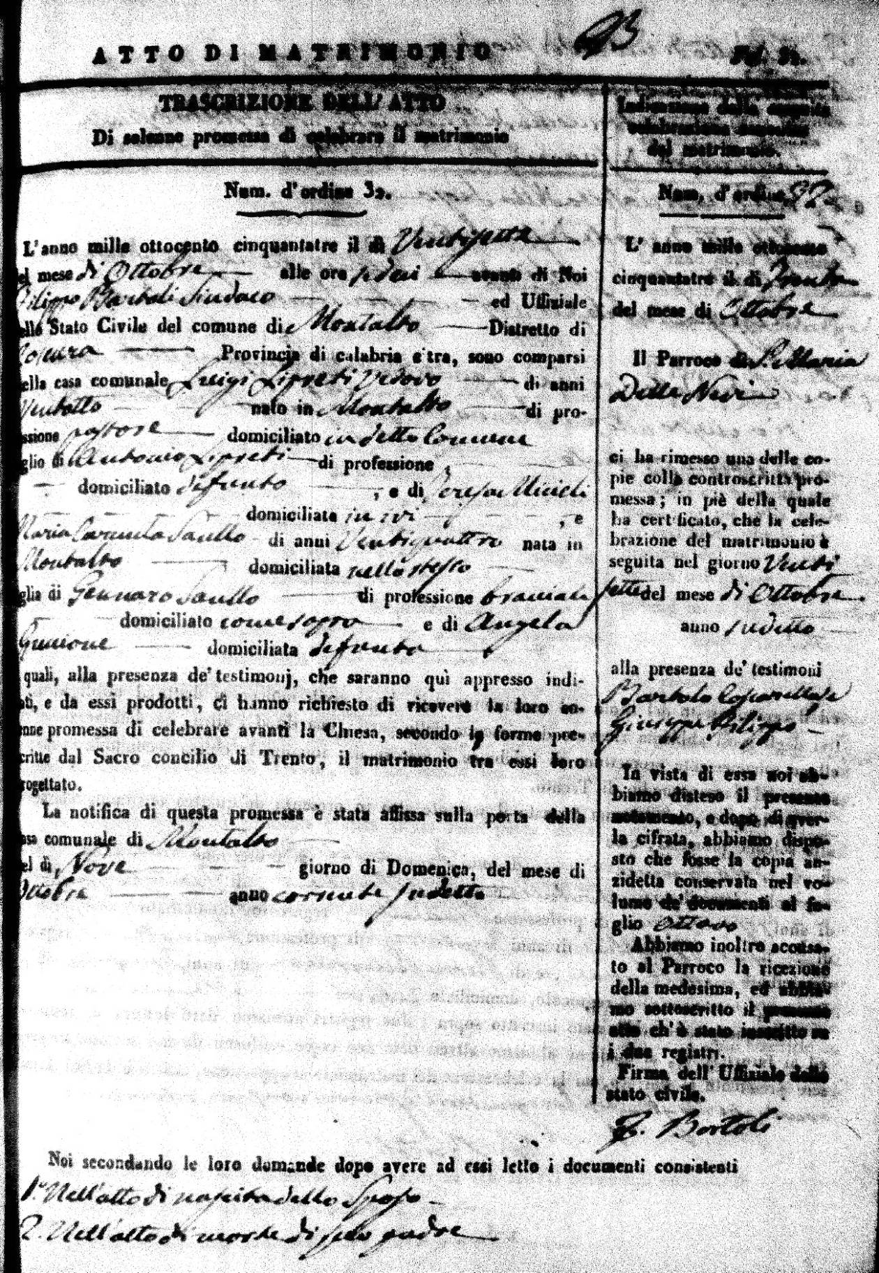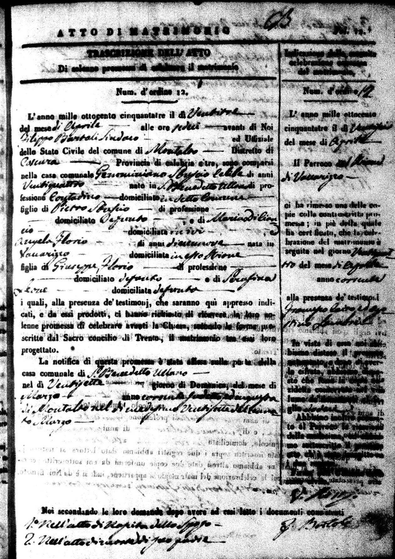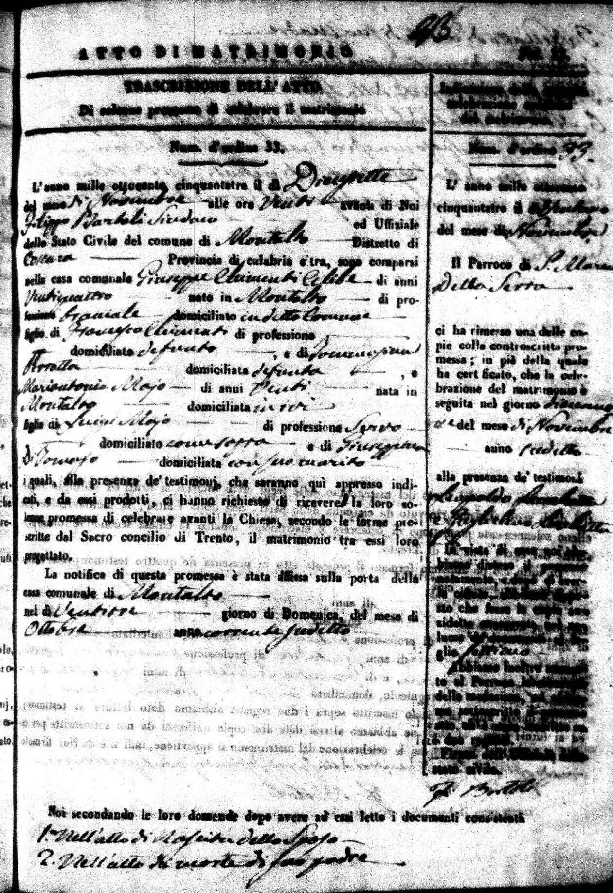 Here are the extractions for all the marriage acts in 1853 for Montalto Uffugo. For more information, click on the groom's surname to view a copy of the original document.