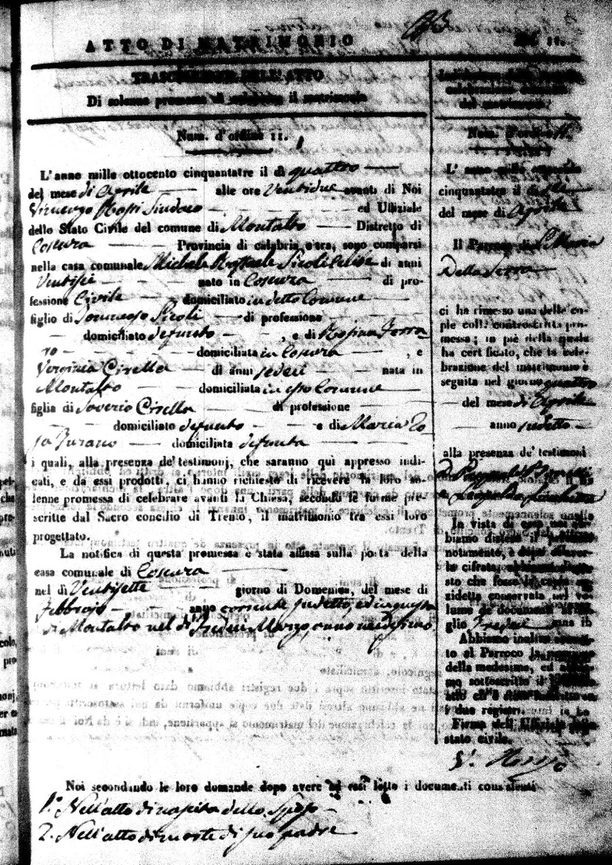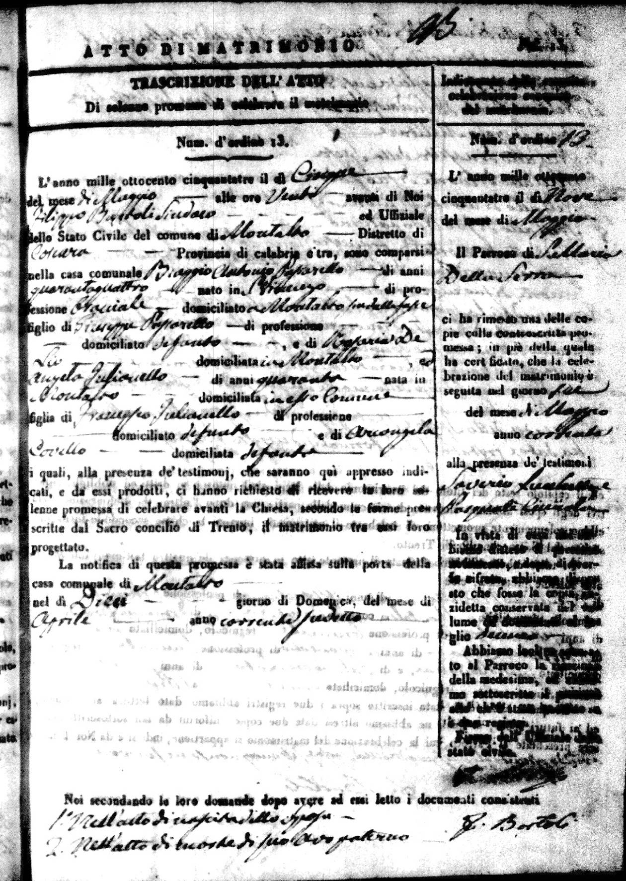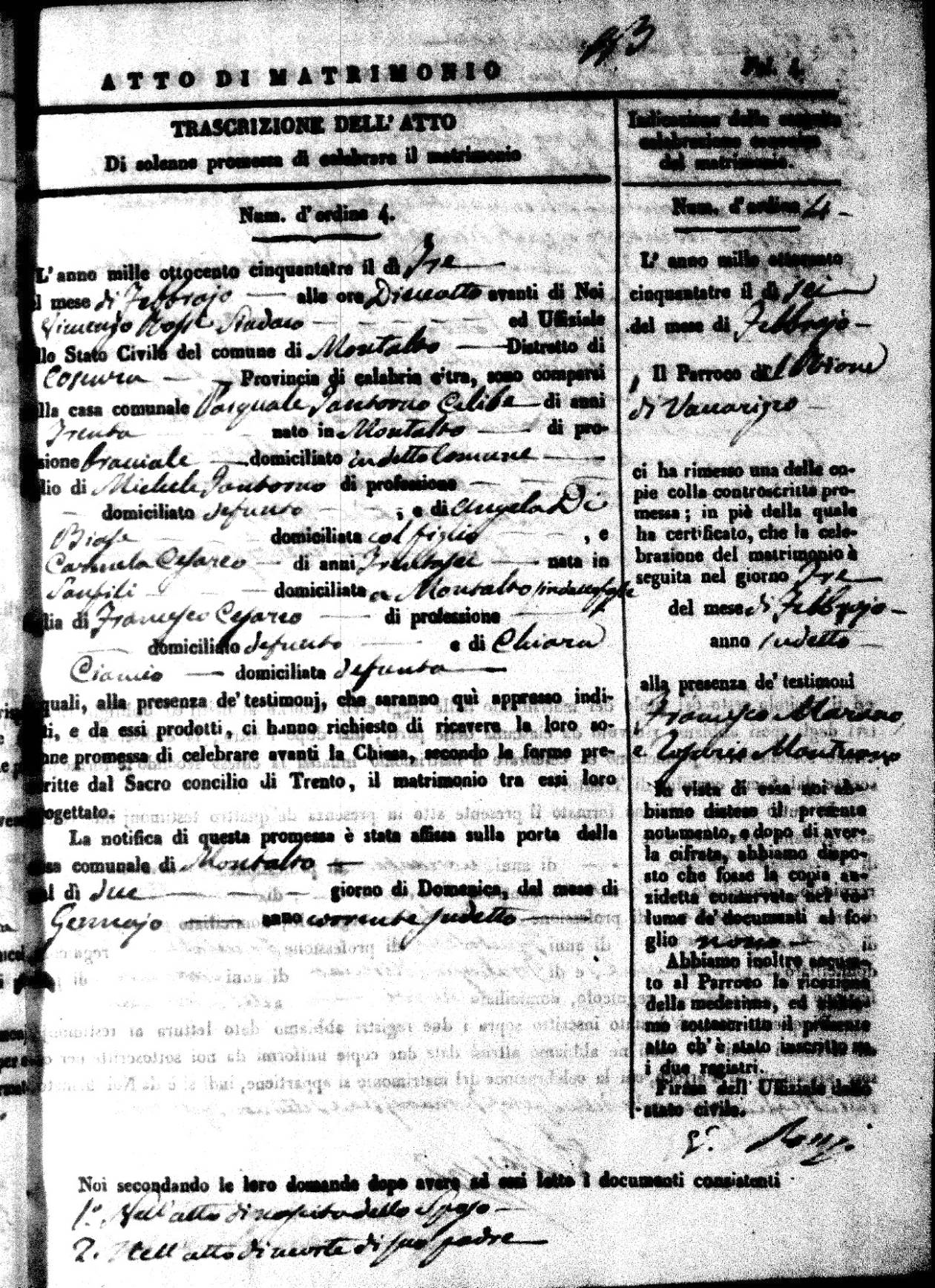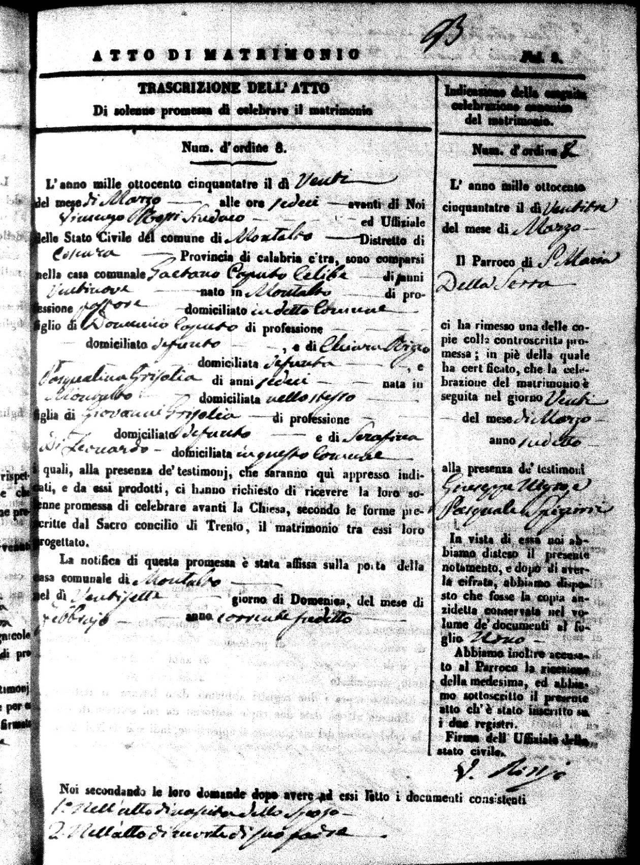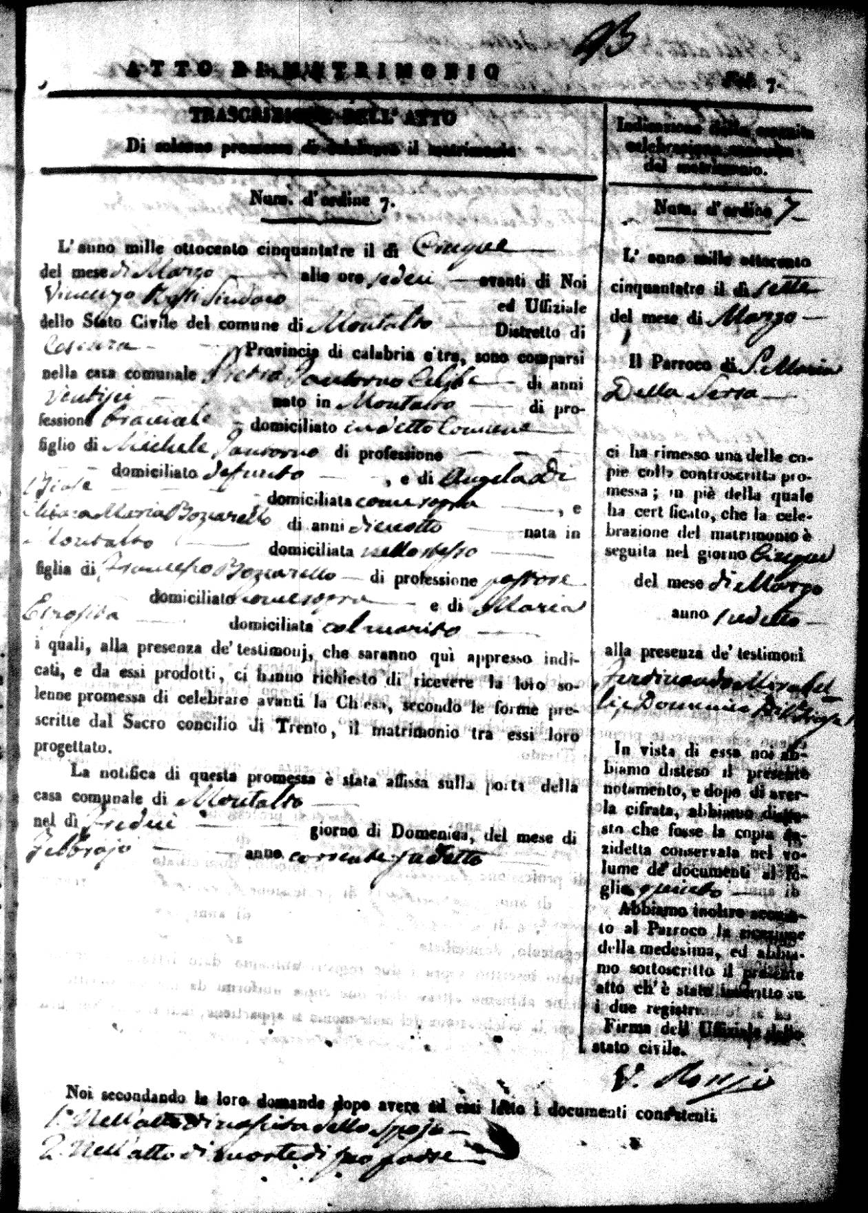 Here are the extractions for all the marriage acts in 1853 for Montalto Uffugo. For more information, click on the groom's surname to view a copy of the original document.
