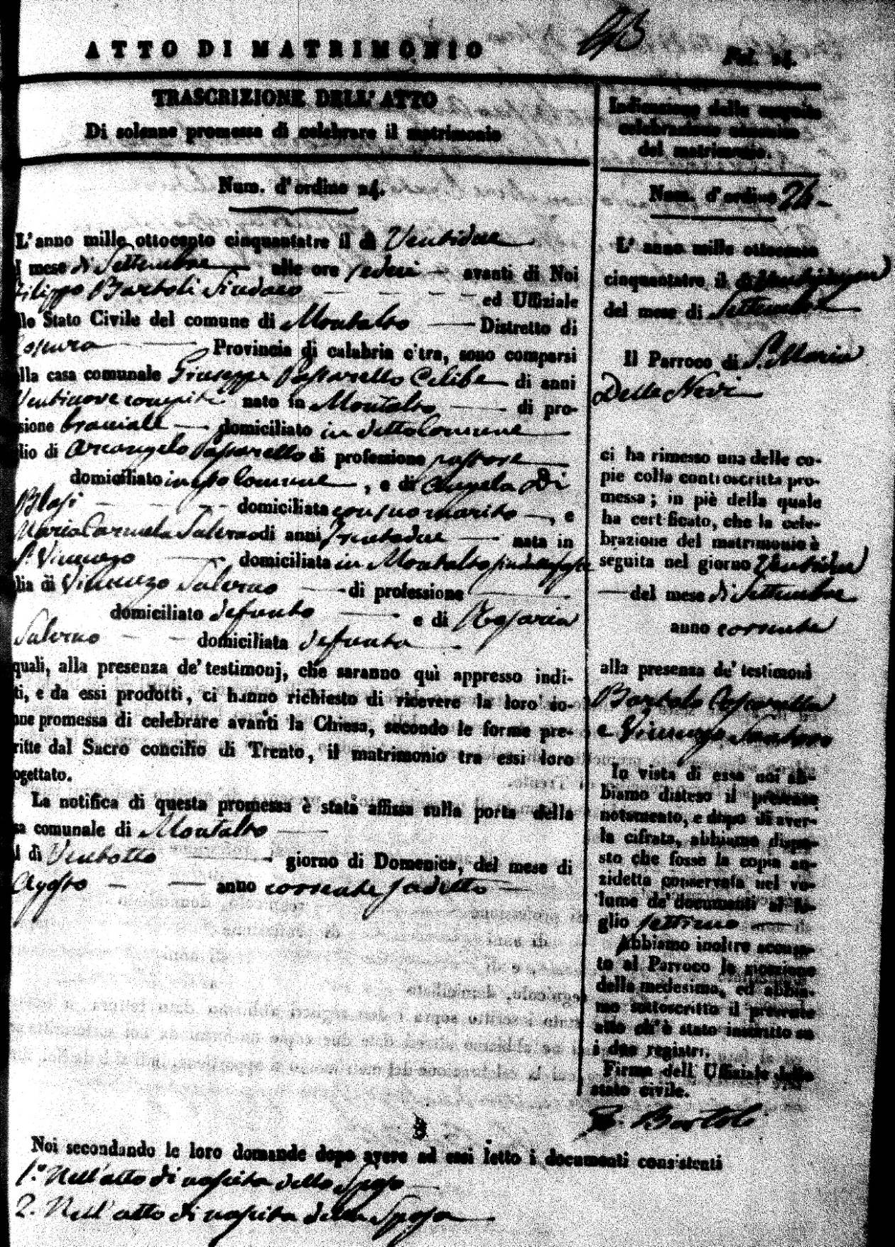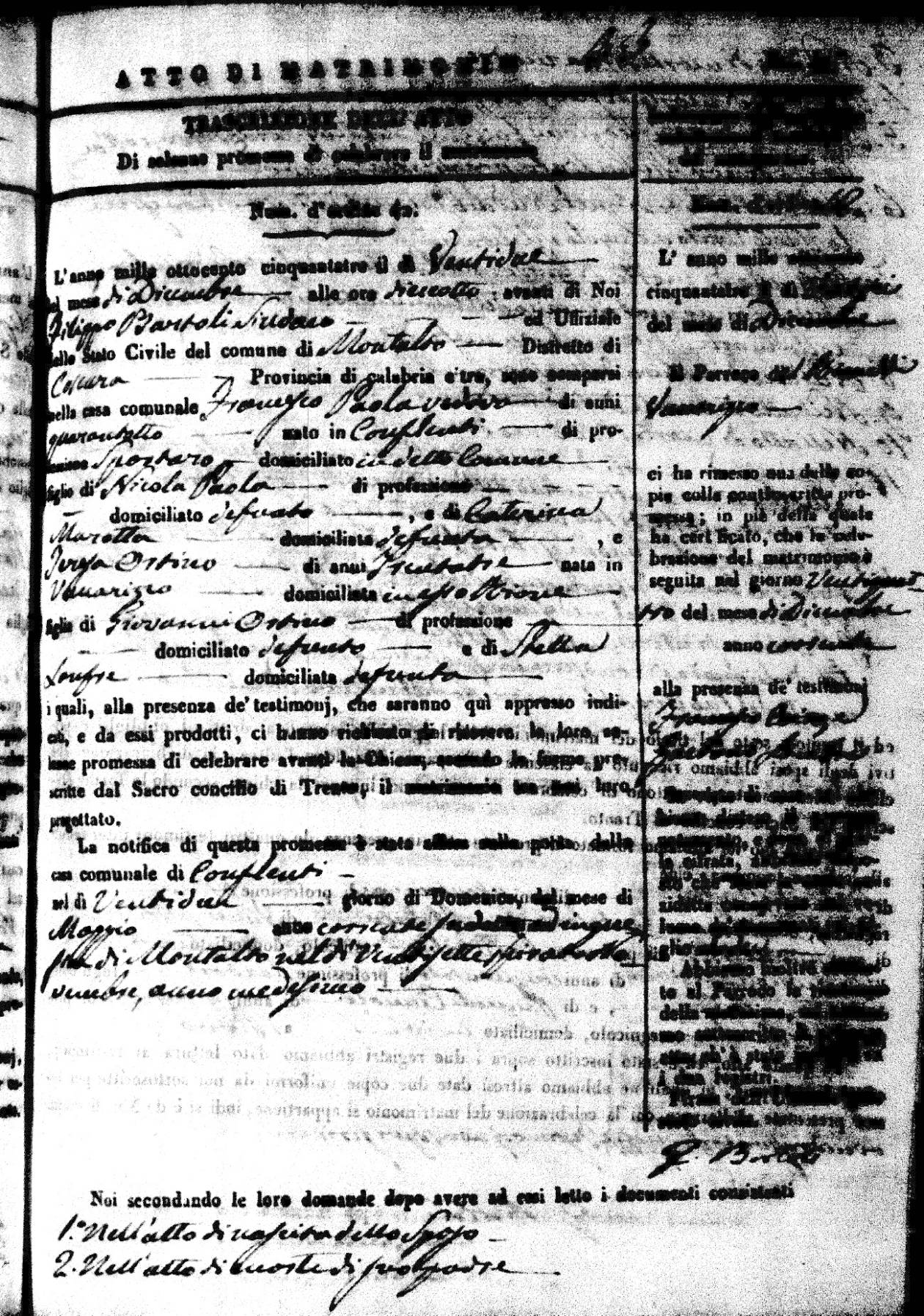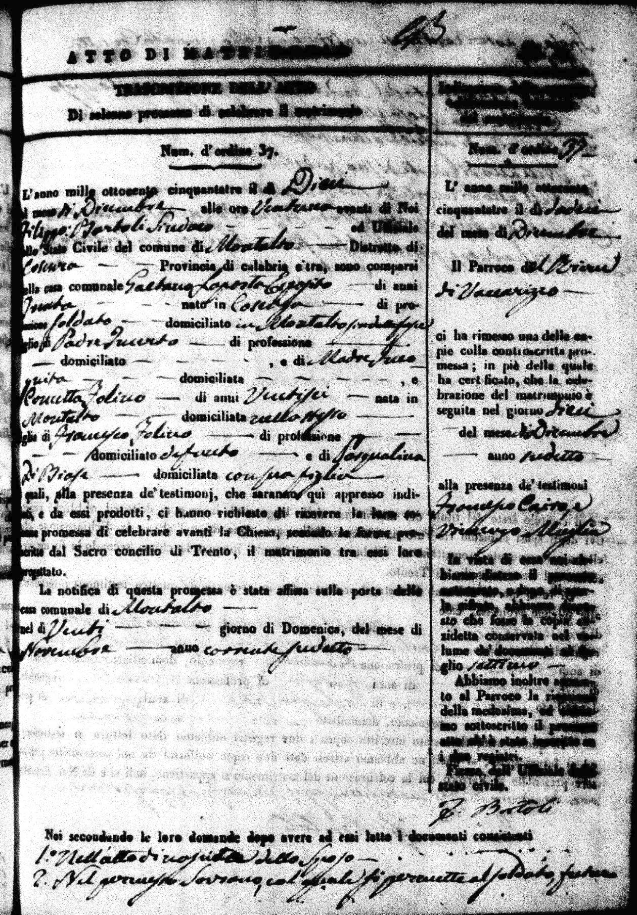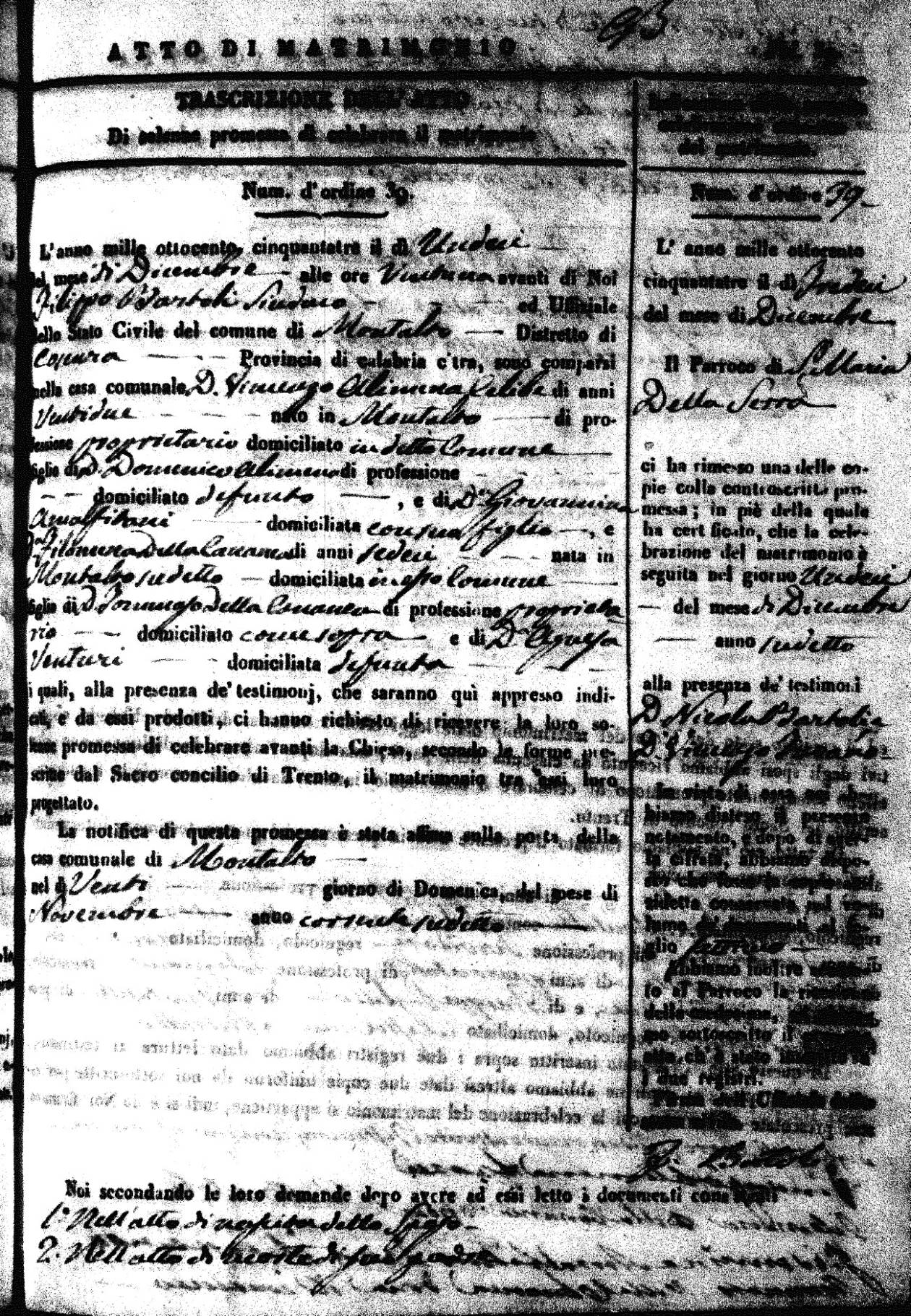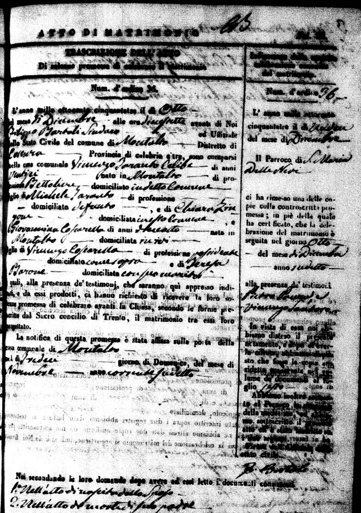 | 26 Dec | Mosciaro | Vincenzo | Antonio (fu) | Tarsia | Maria | Caparelli | Maria Teresa | Gaetano (fu) | DiSeta | Rosaria (fu) |