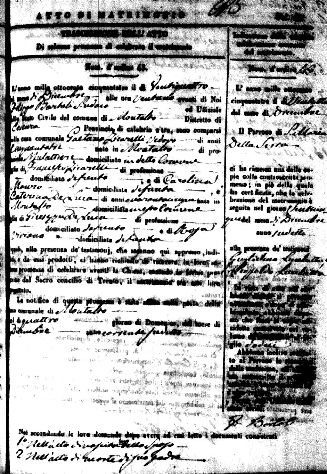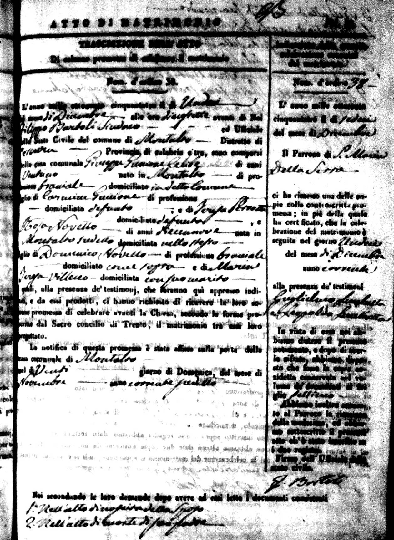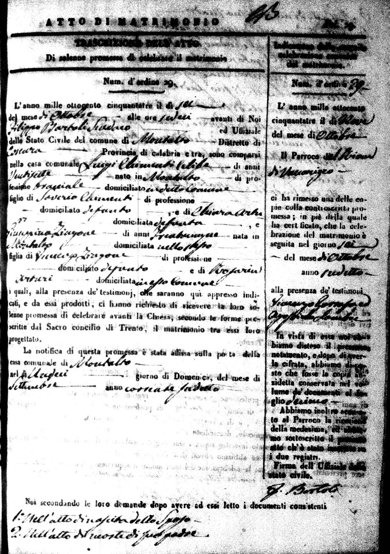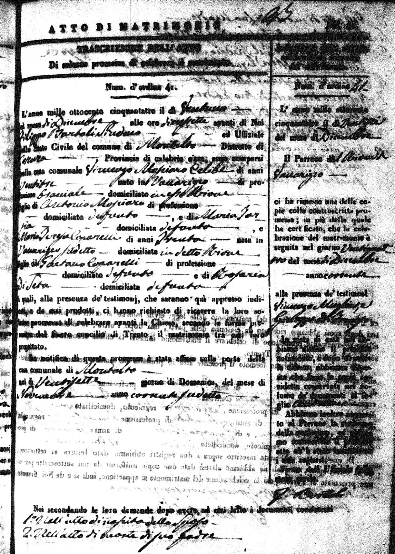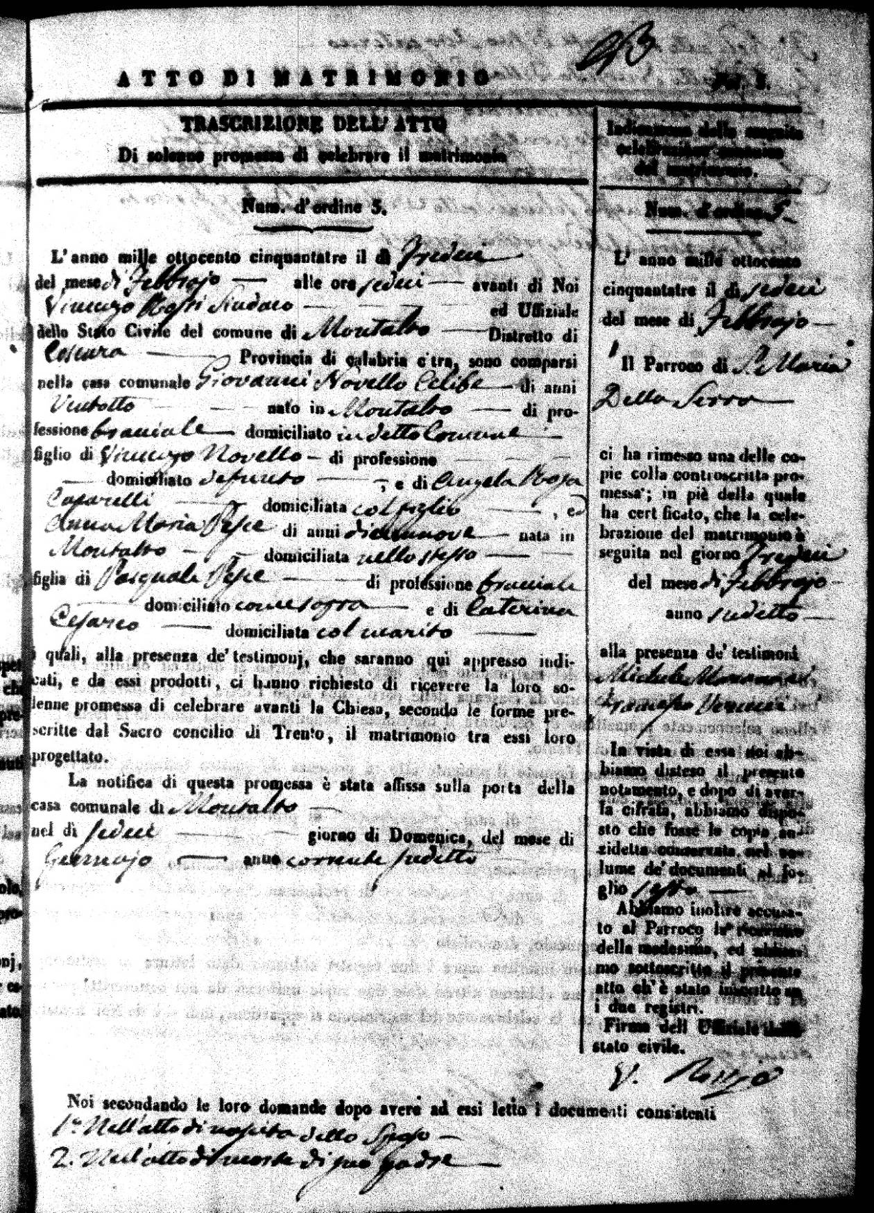 | 26 Dec | Mosciaro | Vincenzo | Antonio (fu) | Tarsia | Maria | Caparelli | Maria Teresa | Gaetano (fu) | DiSeta | Rosaria (fu) |