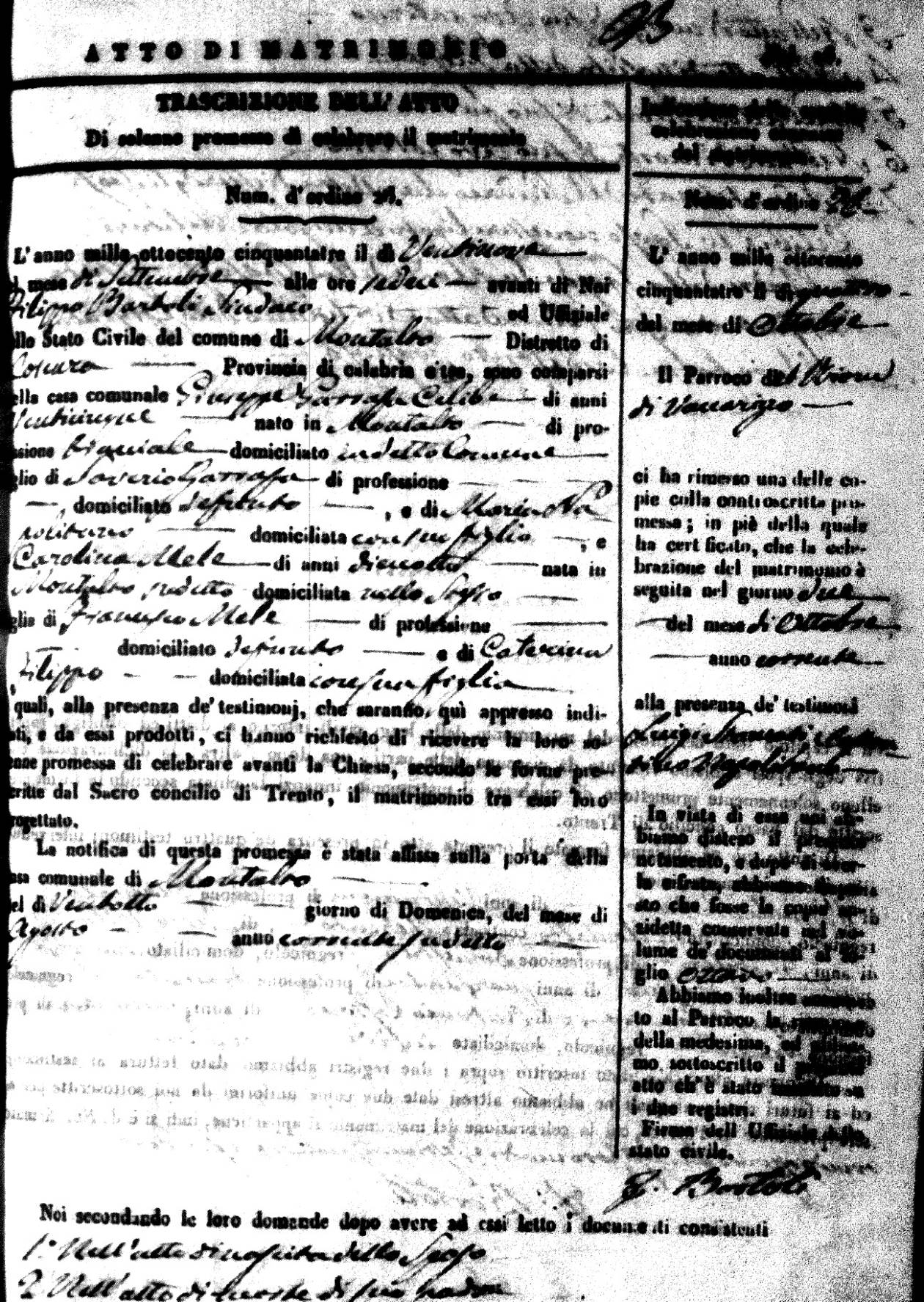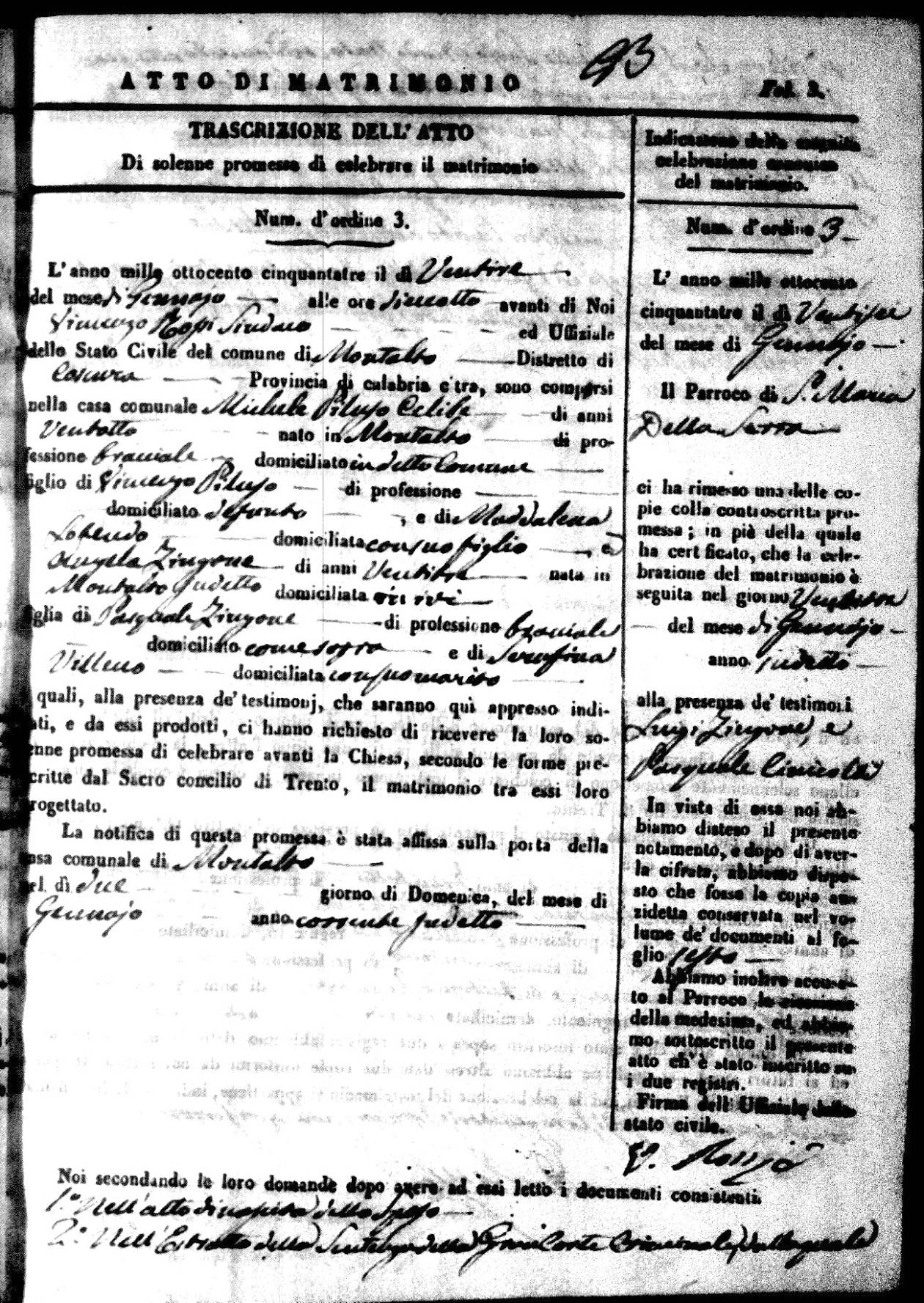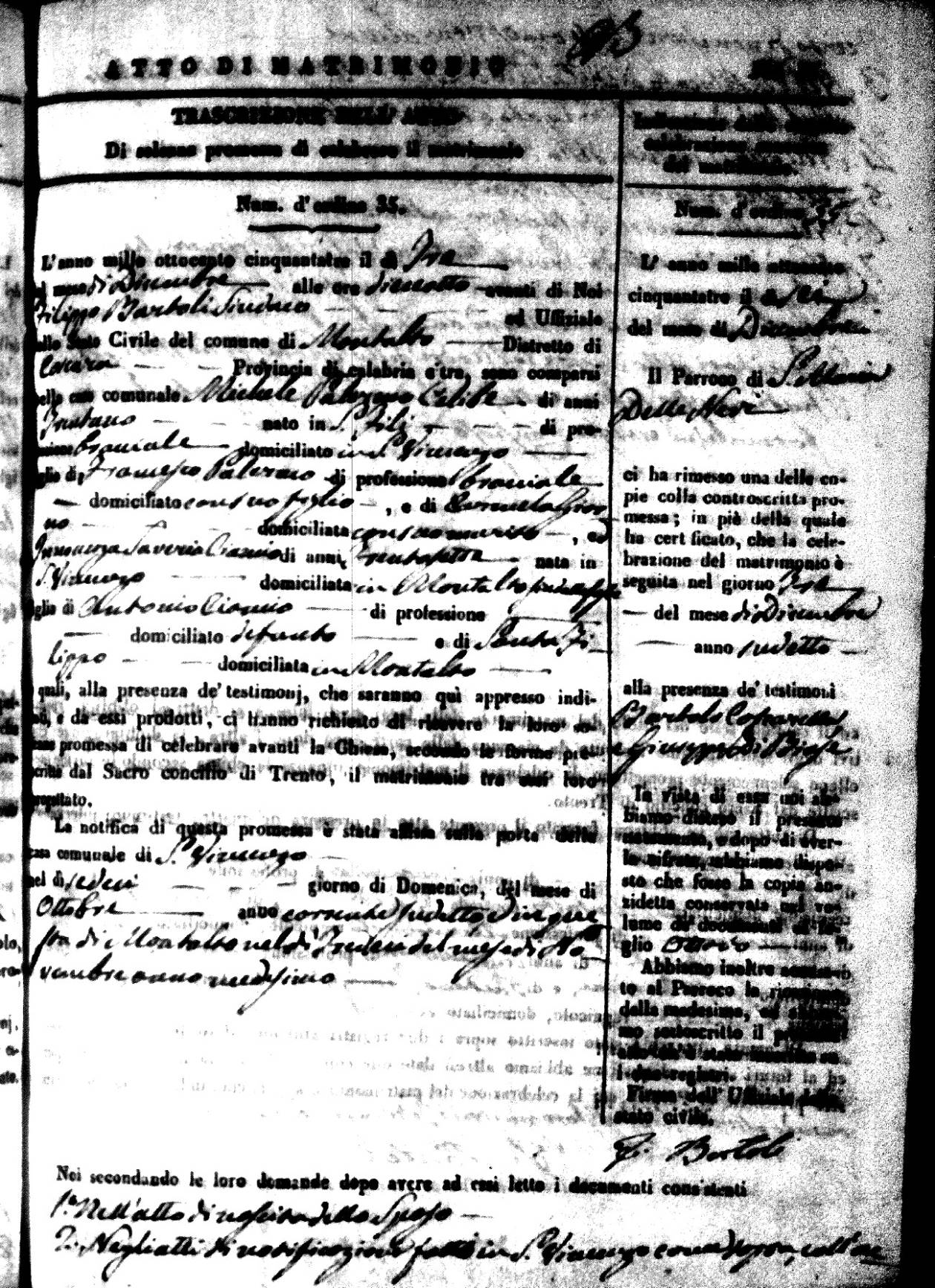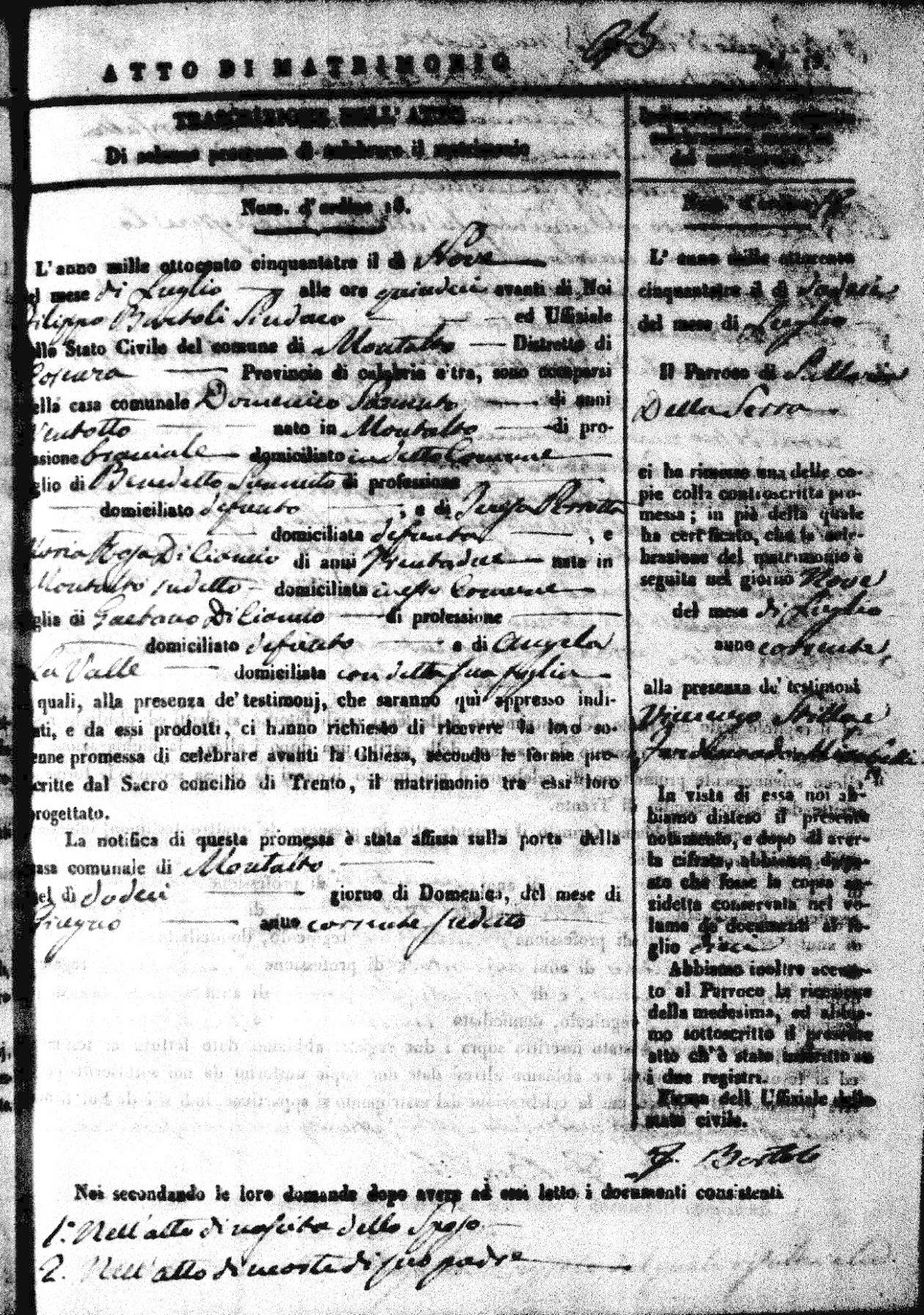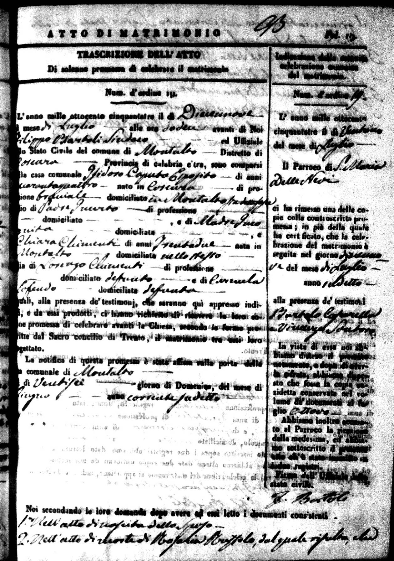 | 26 Dec | Mosciaro | Vincenzo | Antonio (fu) | Tarsia | Maria | Caparelli | Maria Teresa | Gaetano (fu) | DiSeta | Rosaria (fu) |