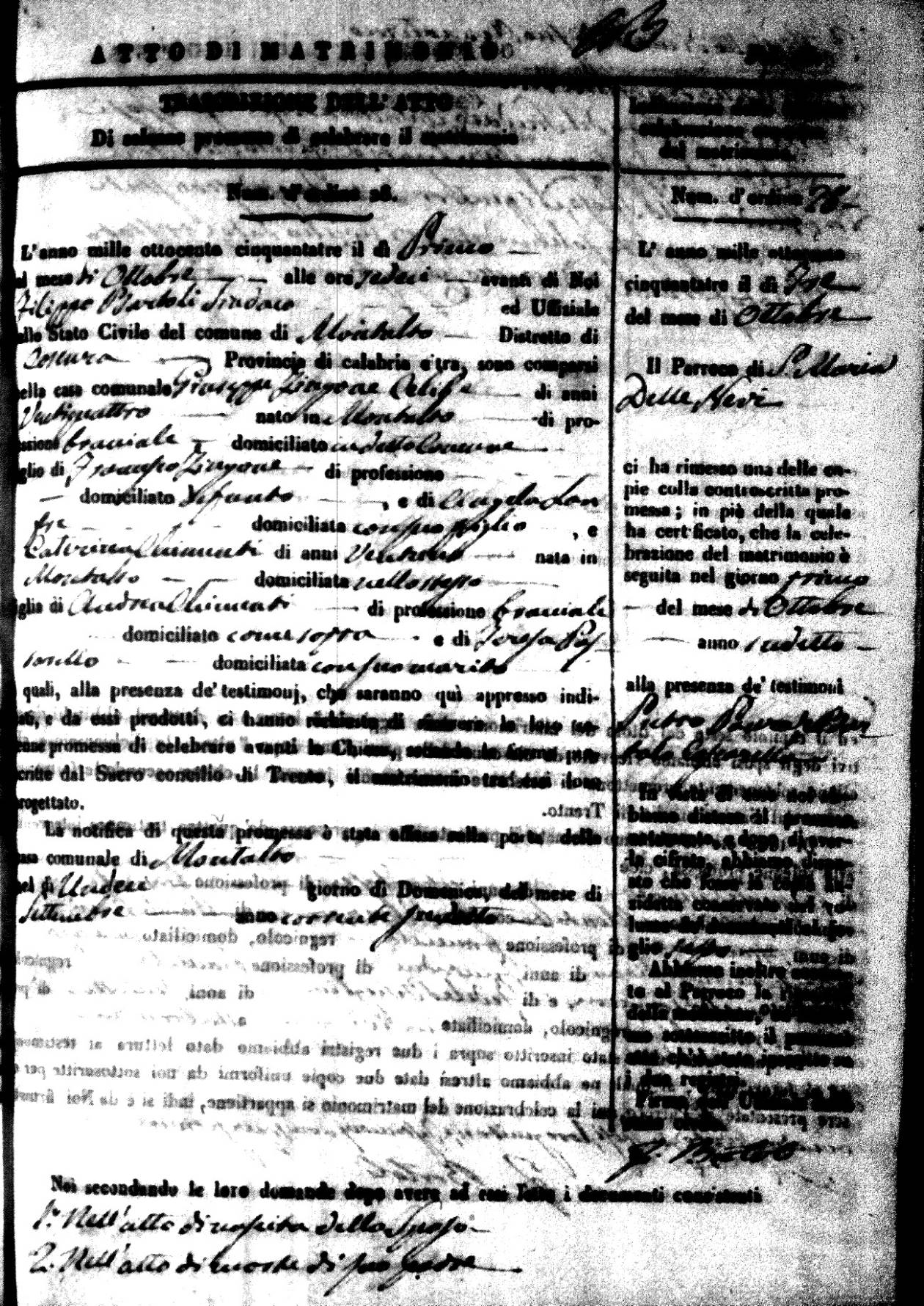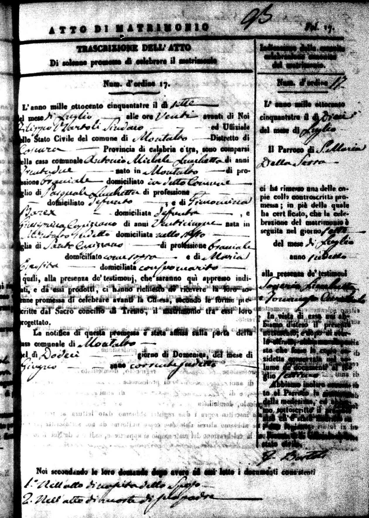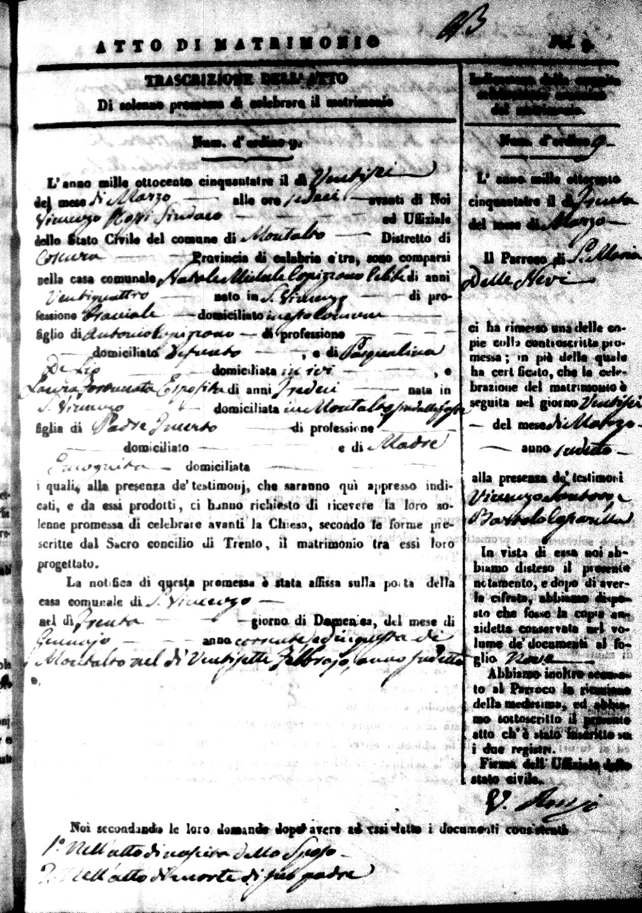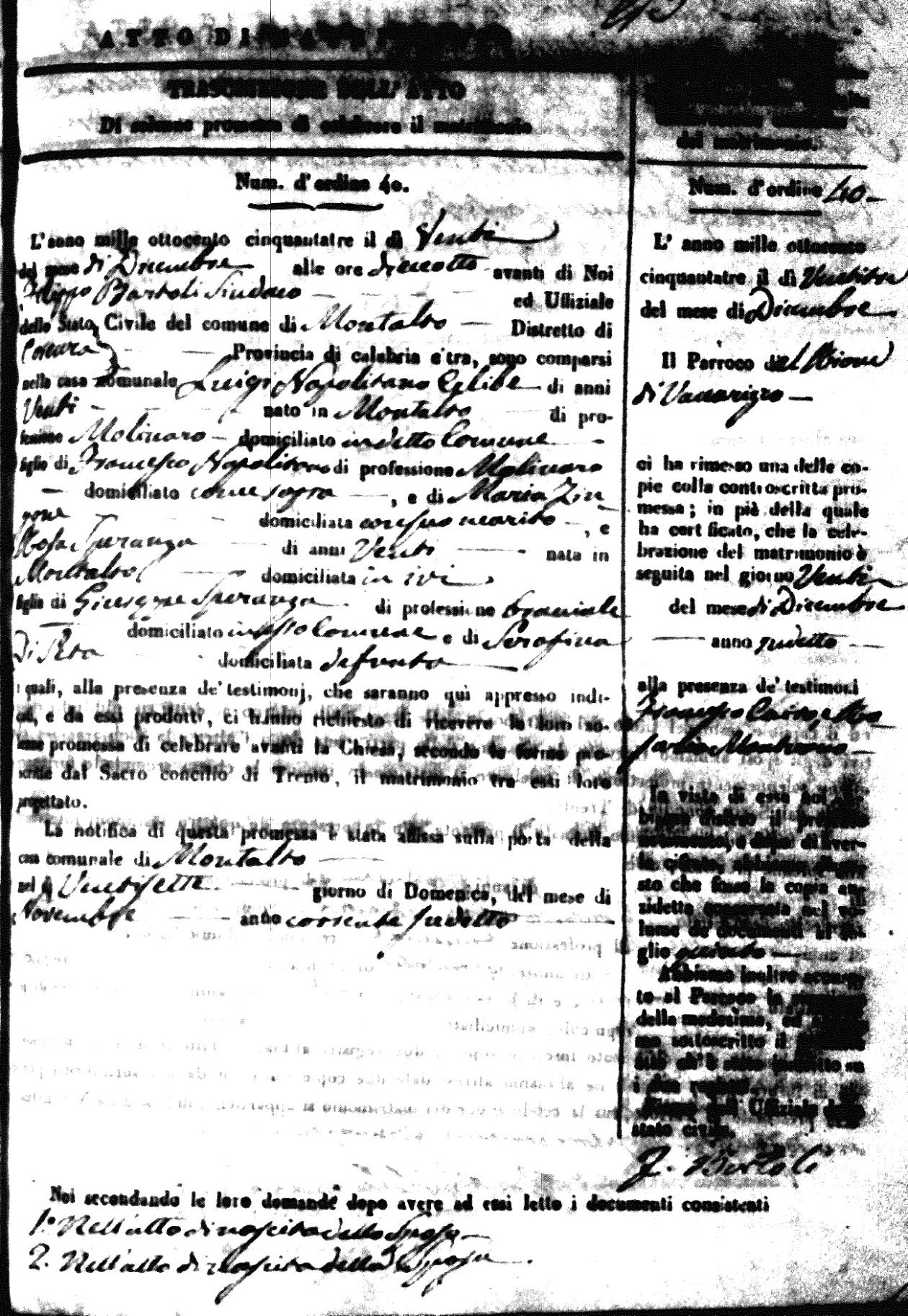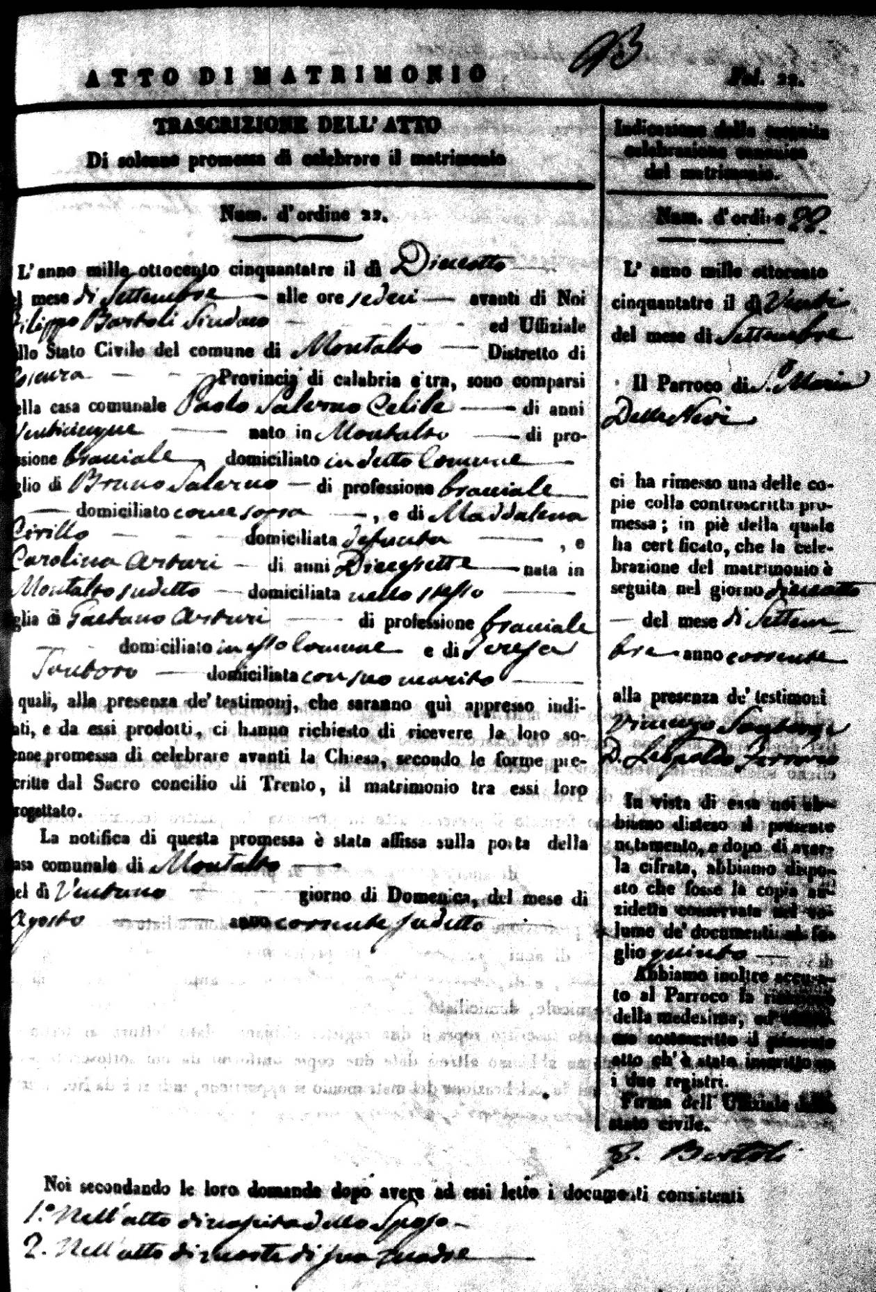 | 26 Dec | Mosciaro | Vincenzo | Antonio (fu) | Tarsia | Maria | Caparelli | Maria Teresa | Gaetano (fu) | DiSeta | Rosaria (fu) |