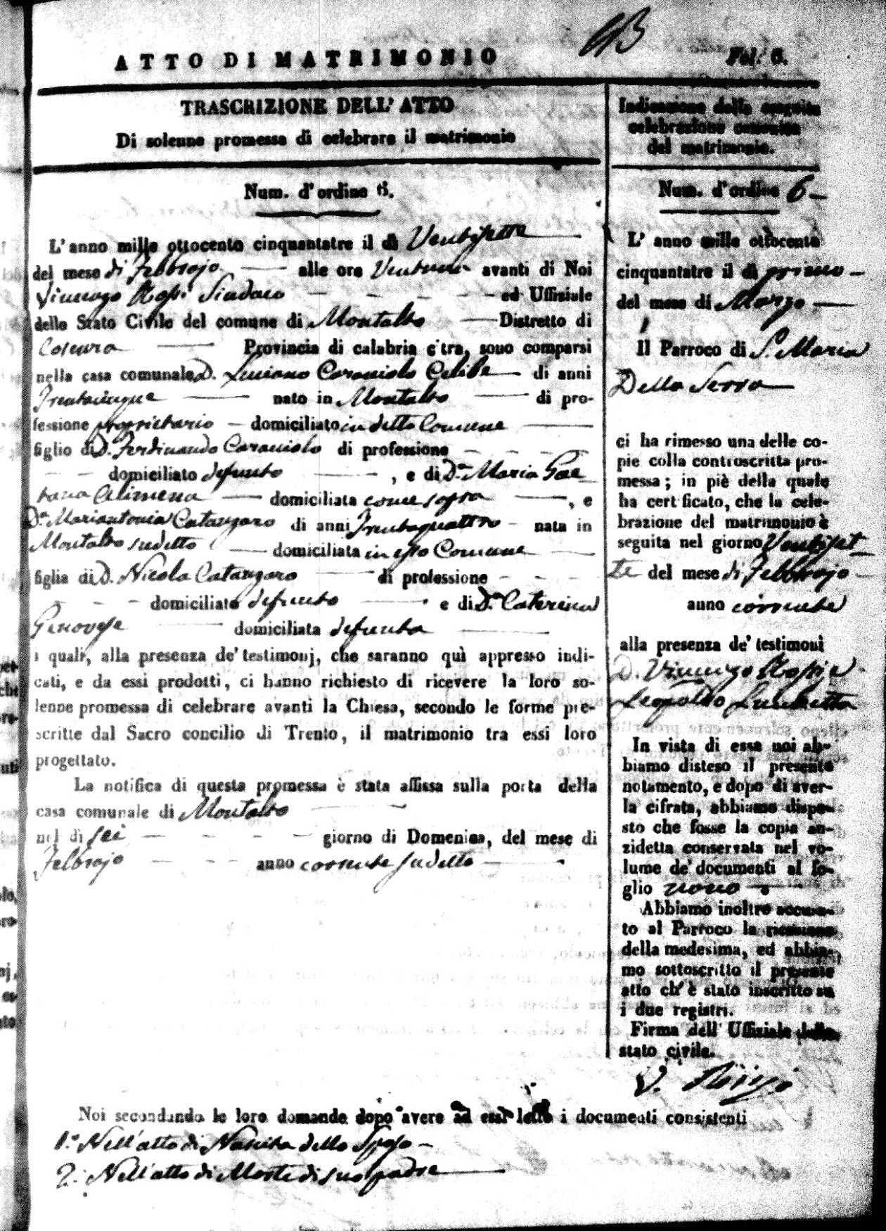 | 1 Mar | Caraniolo | Luciano | Ferdinando (fu) | Alimena | Maria Gaetana | Catanzaro | Mariantonia | Nicola (fu) | Genovese | Caterina (fu) |