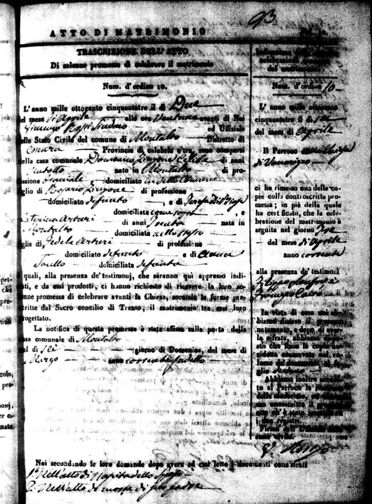 | 6 Apr | Zingone | Domenico | Rosario (fu) | DiBiase | Teresa | Arturi | Caterina | Fedele (fu) | Saullo | Anna (fu) |