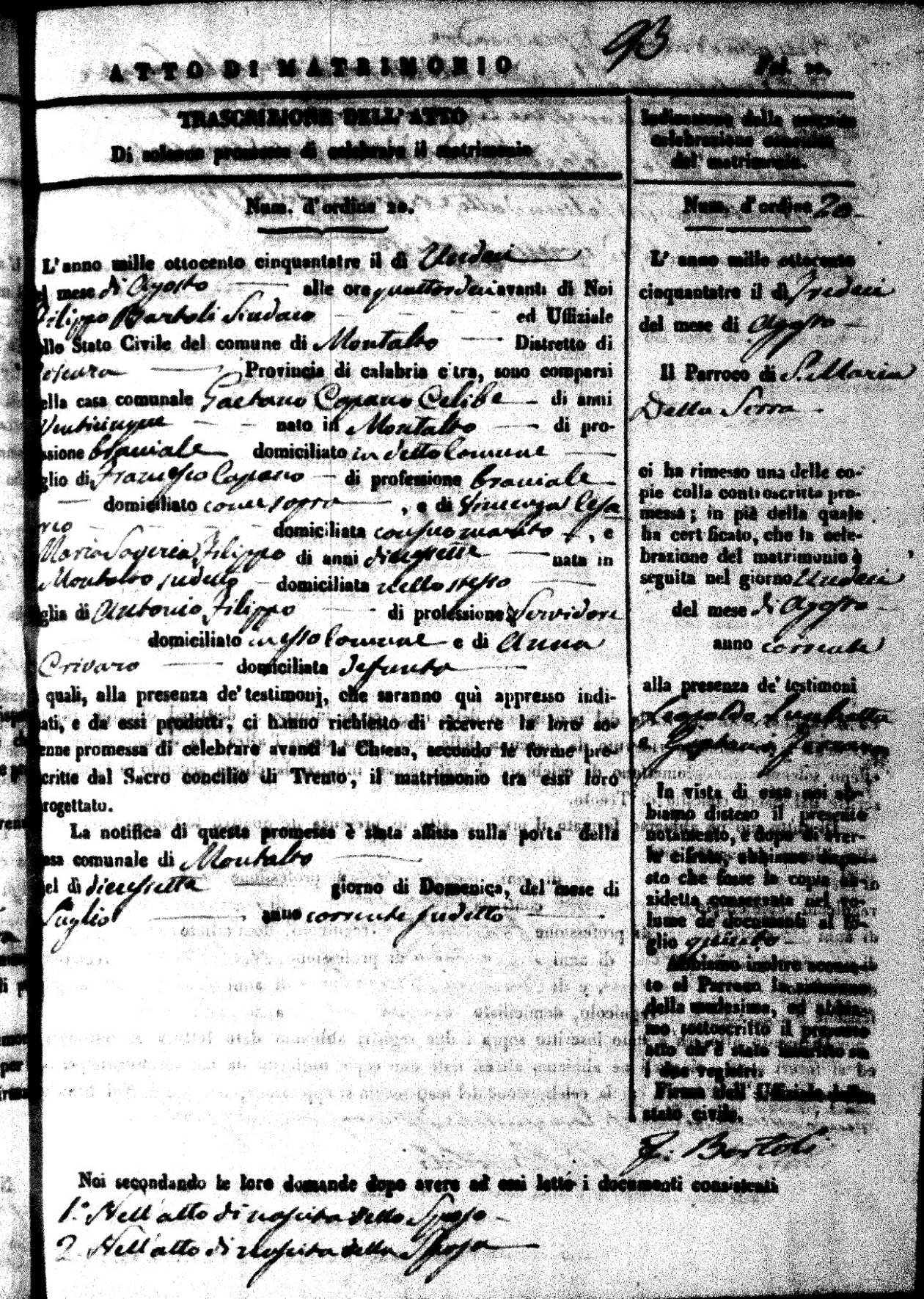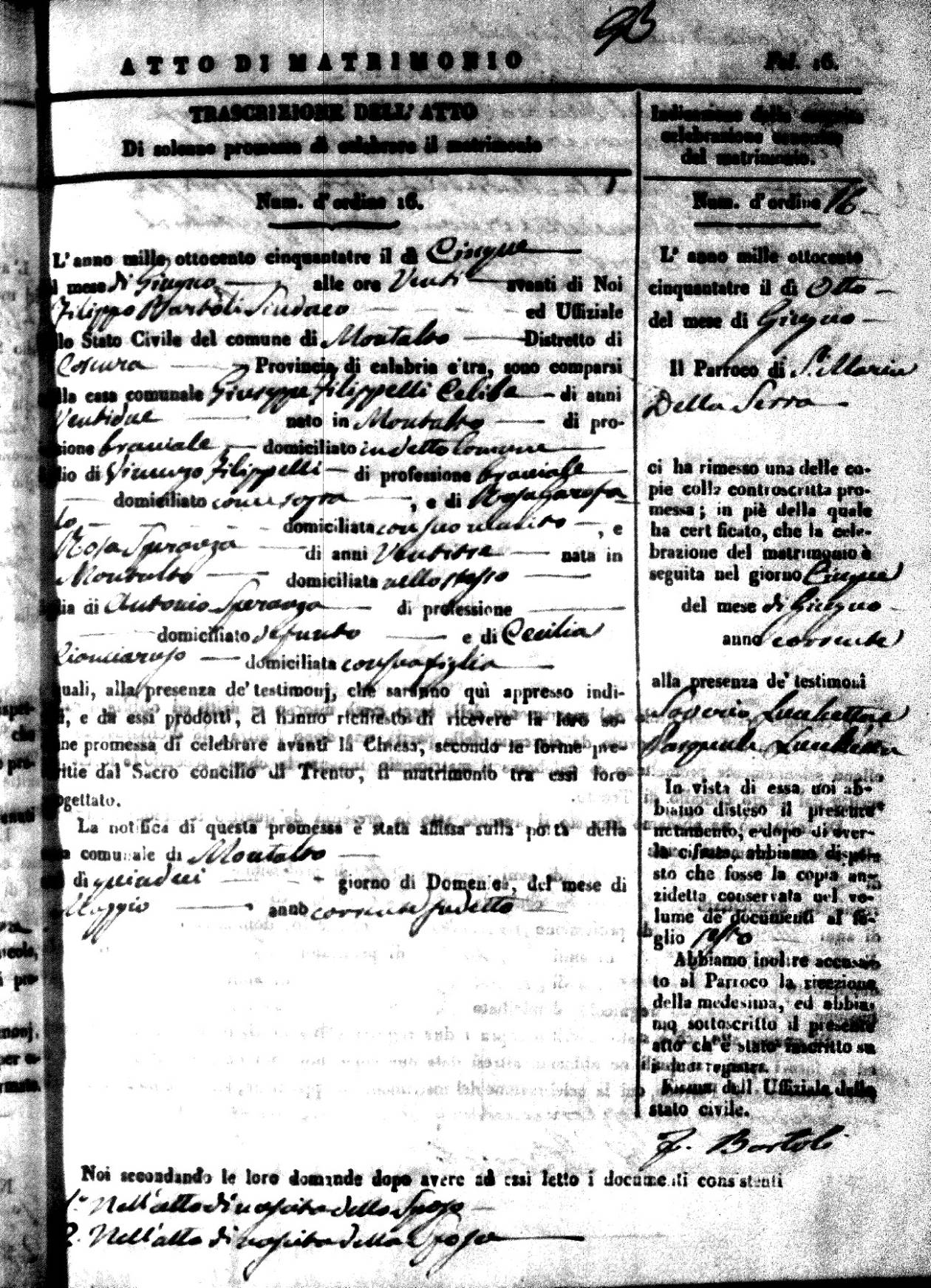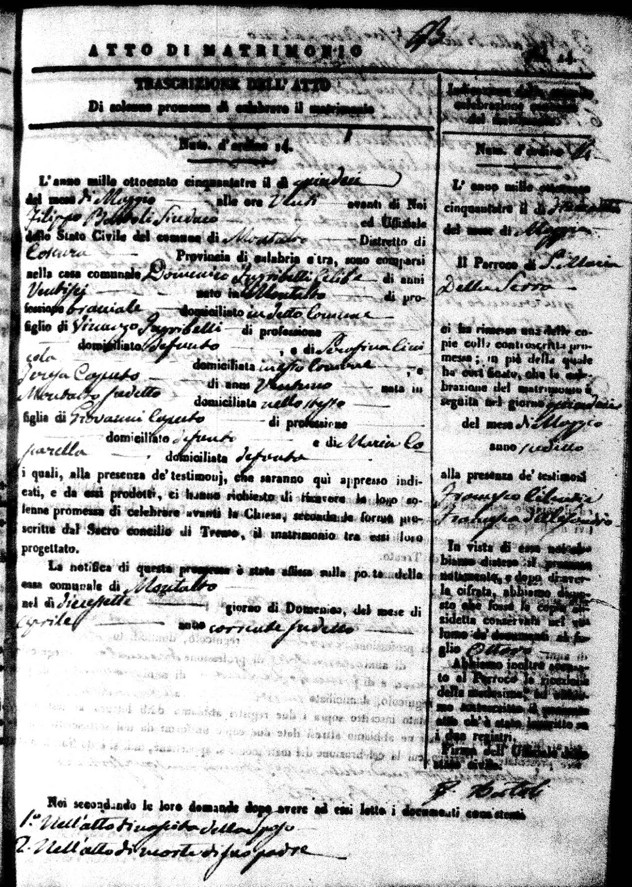 | 9 May | Passarello | Biaggio Antonio | Giuseppe (fu) | DrLio | Rosaria | Iulianello | Angela | Francesco (fu) | Covello | Arcangela (fu) |