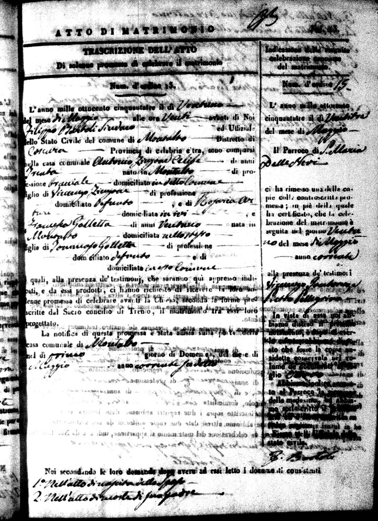 | 23 May | Zingone | Antonio | Vincenzo (fu) | Arturi | Rosaria | Golletta | Francesca | Tommaso (fu) | not listed | not listed |