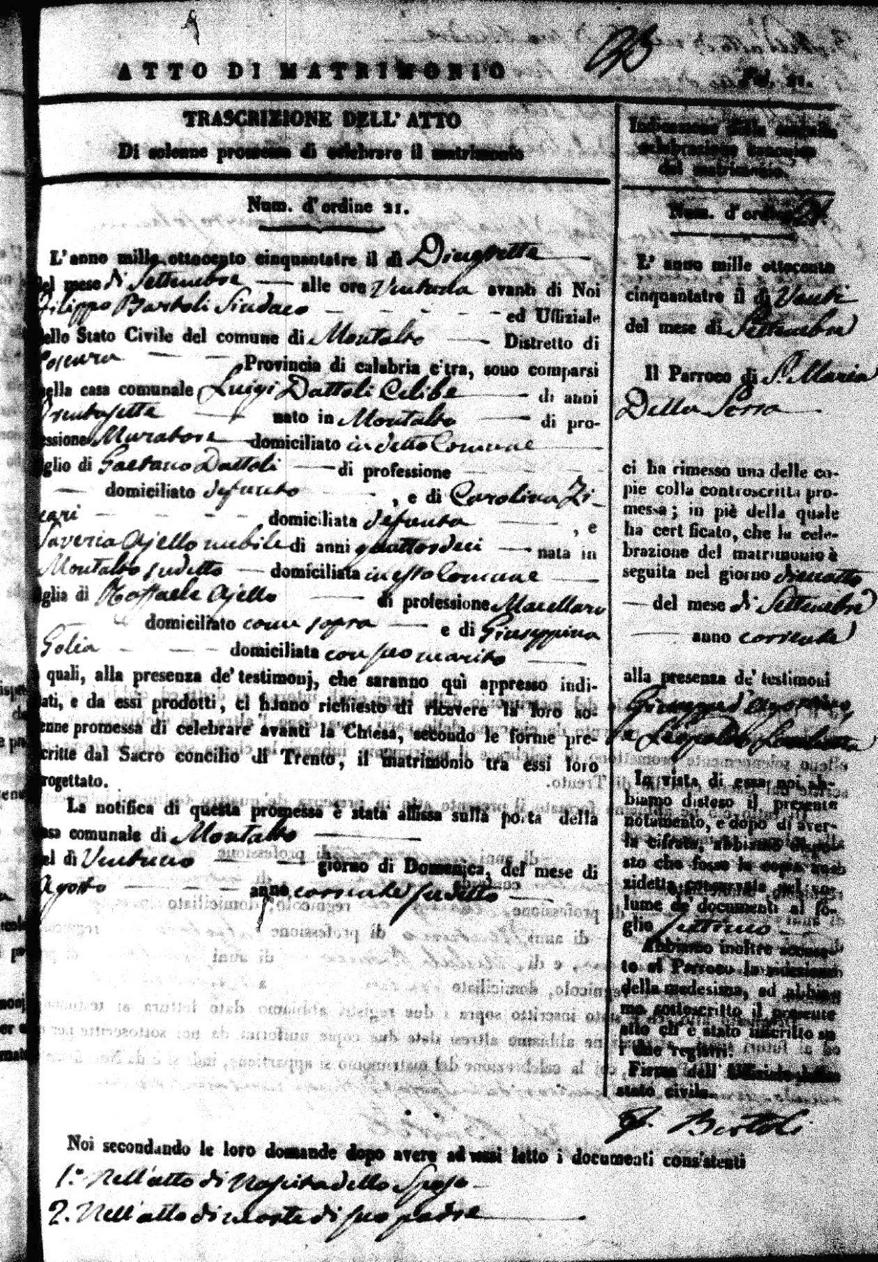 | 20 Sep | Dattoli | Luigi | Gaetano (fu) | Zicari | Carolina (fu) | Ajello | Saveria | Raffaele | Golia | Giuseppina |