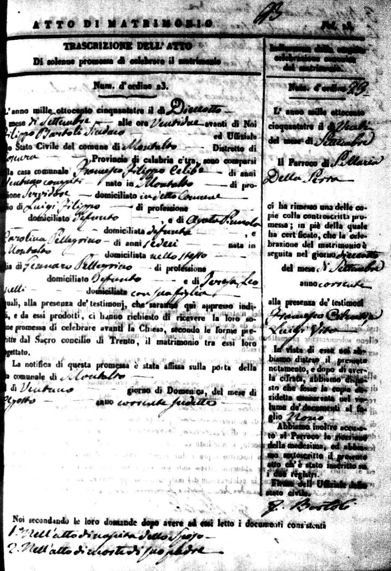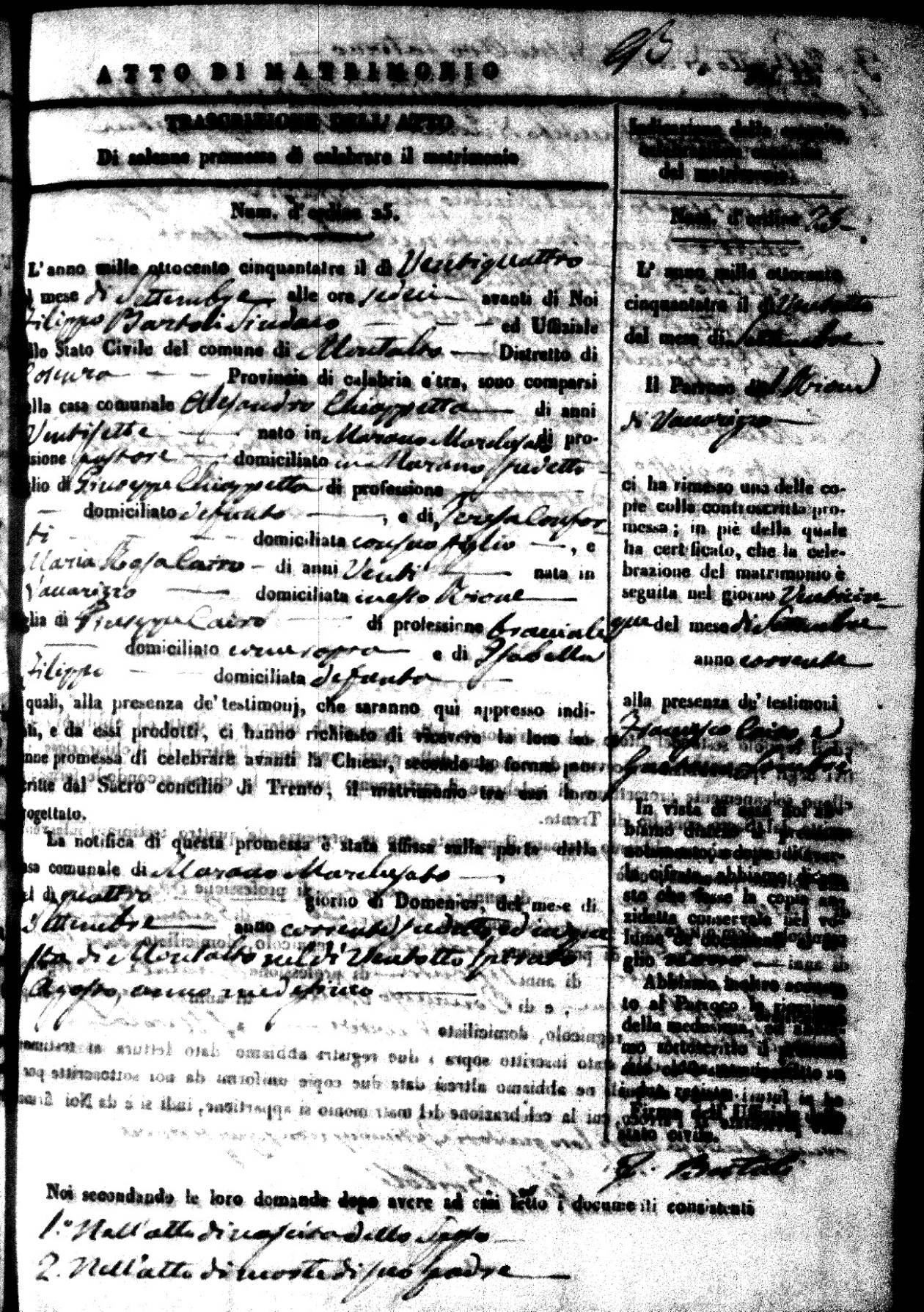 | 28 Sep | Chiapetta | Alessandro | Giuseppe (fu) | Conforti | Teresa (fu) | Cairo | Maria Rosa | Giuseppe | Filippo | Isabella (fu) |