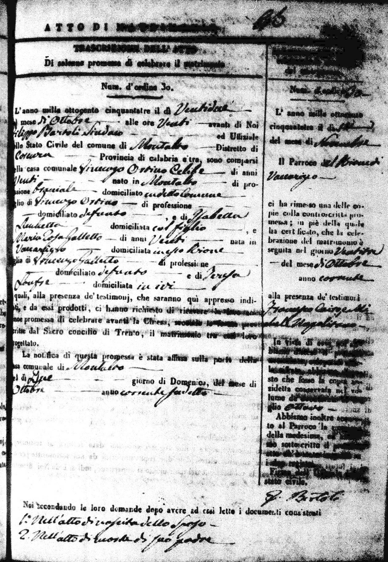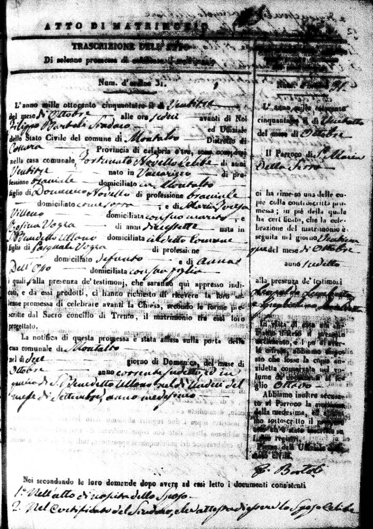 | 28 Oct | Novello | Fortunato | Domenico (fu) | Villecco | Maria Teresa | Vozza | Rosina | Pasquale (fu) | Dell'Osso | Anna |