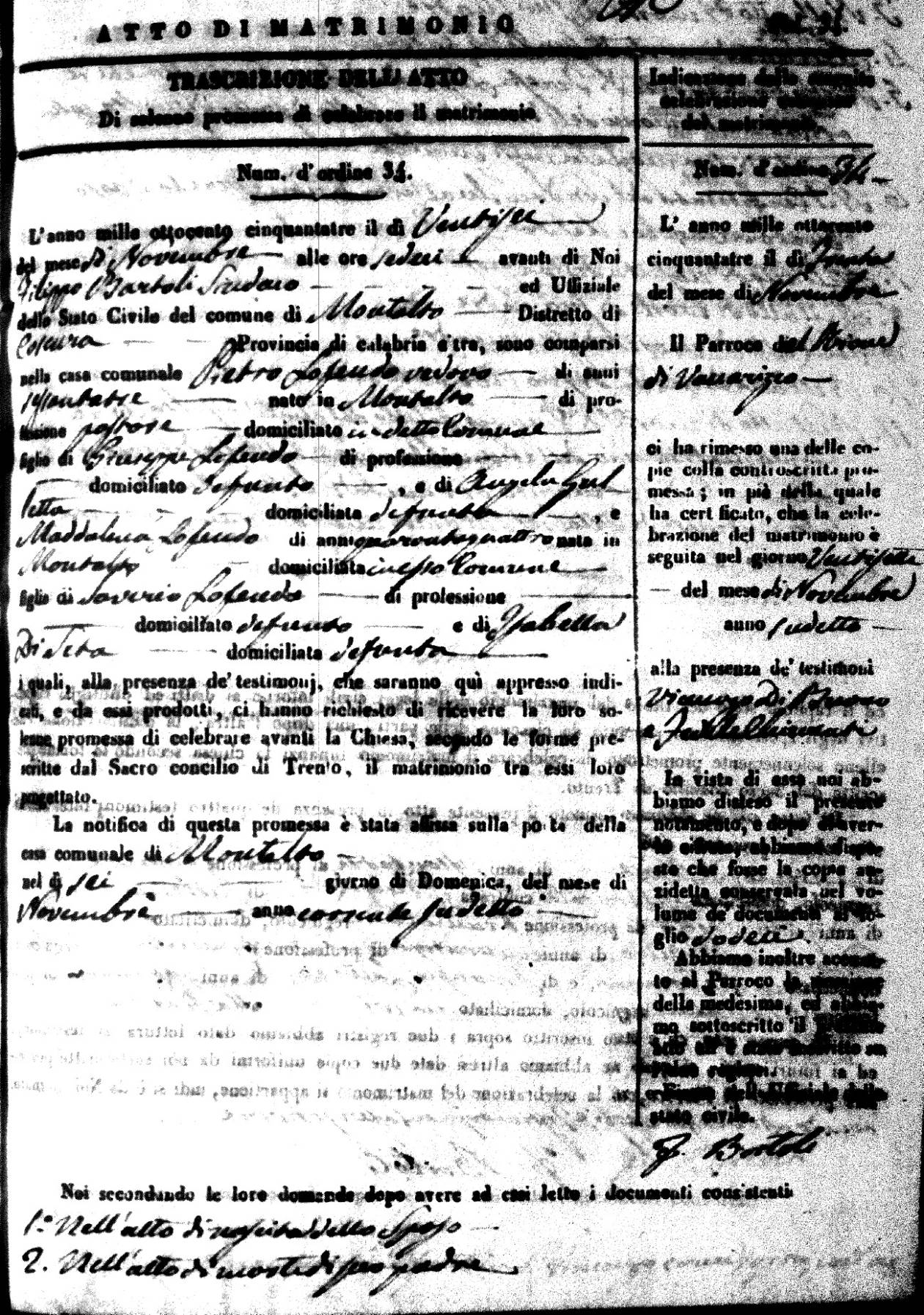 | 30 Nov | LoFeudo | Pietro | Giuseppe (fu) | Golletta | Angela | LoFeudo | Maddalena | Saverio (fu) | DiSeta | Isabella (fu) |