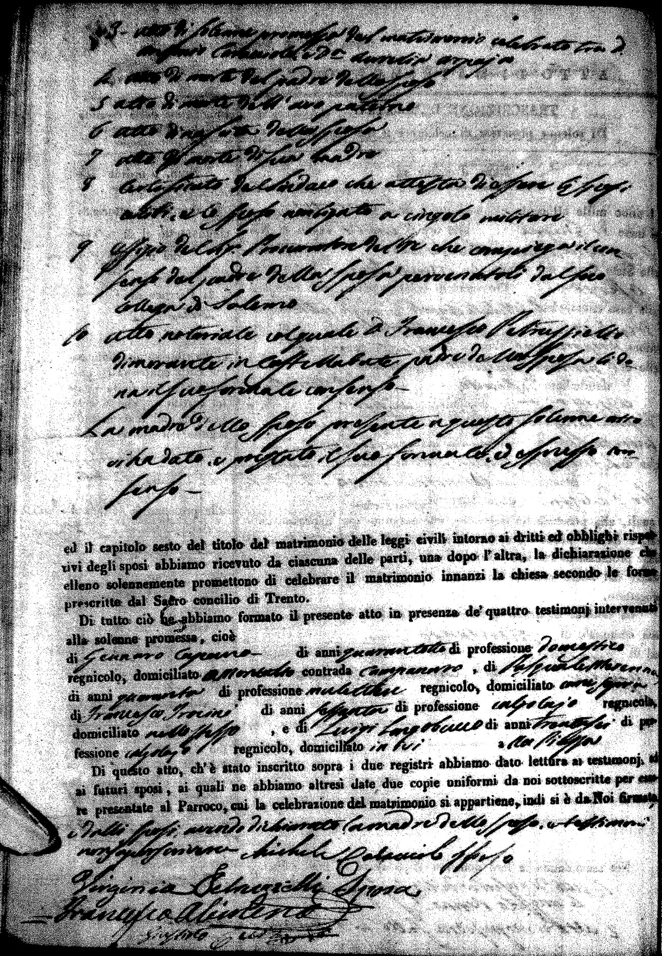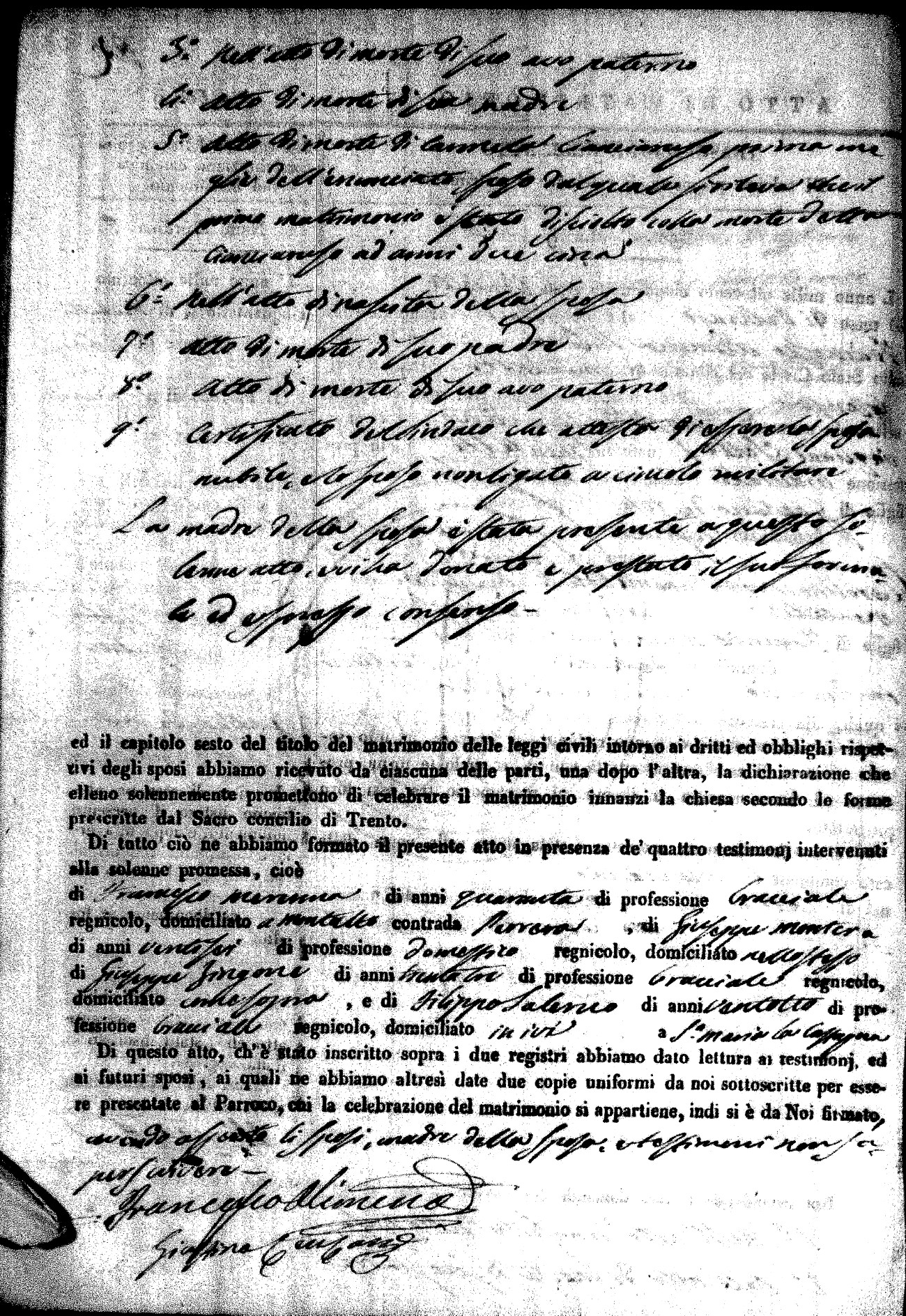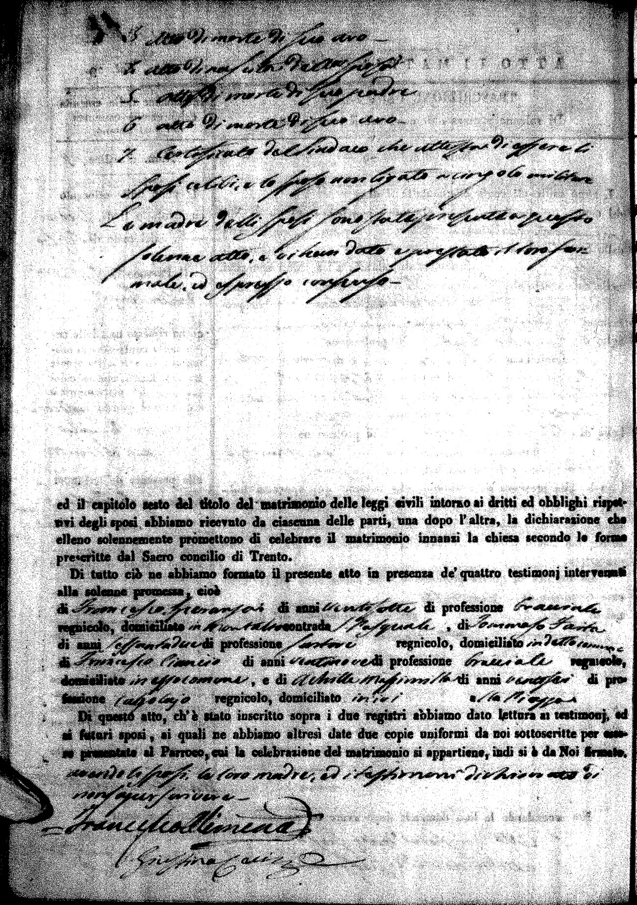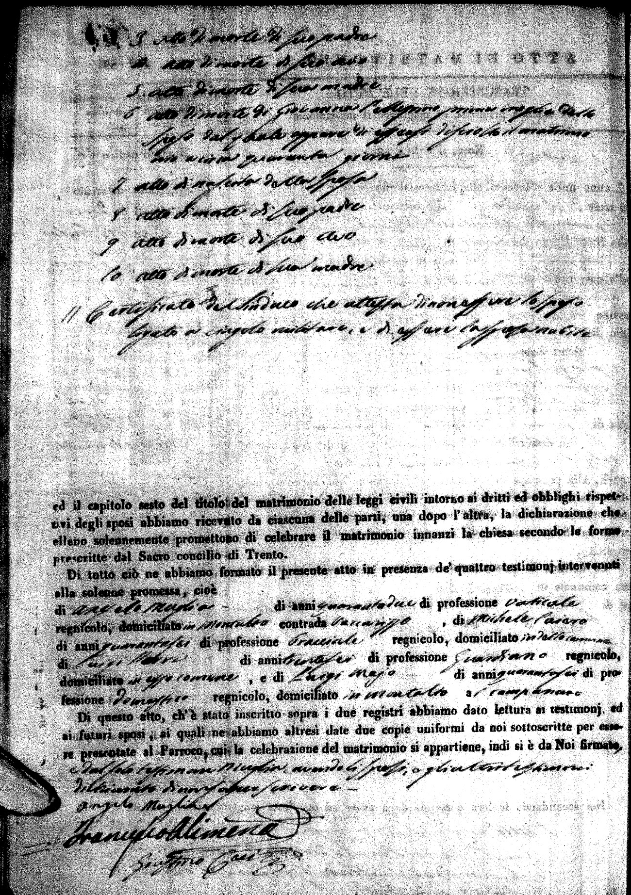 | Pesce | Carmine Maria | Antonio (fu) | Marchese | Serafina | diCiancio | Carmela | Giuseppe (fu) | Cassano | Rosa (fu) |
