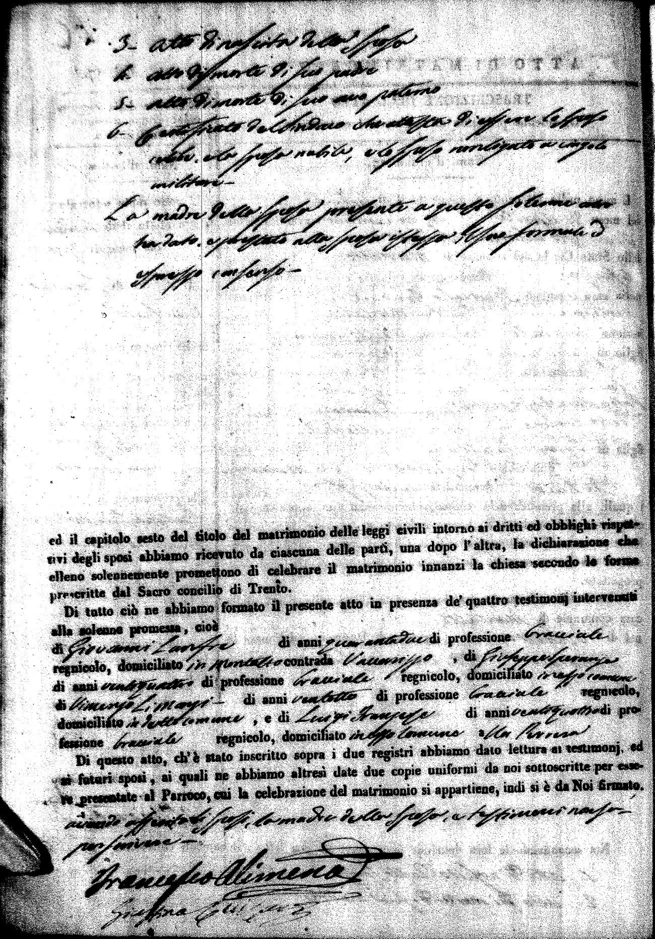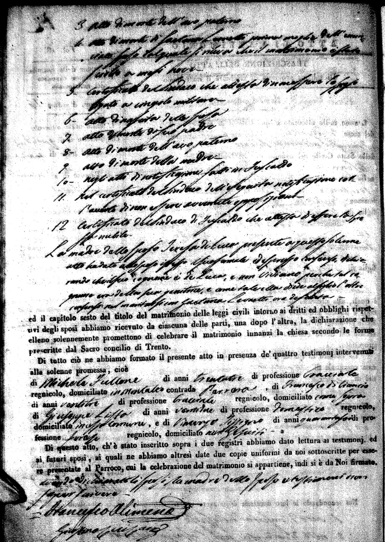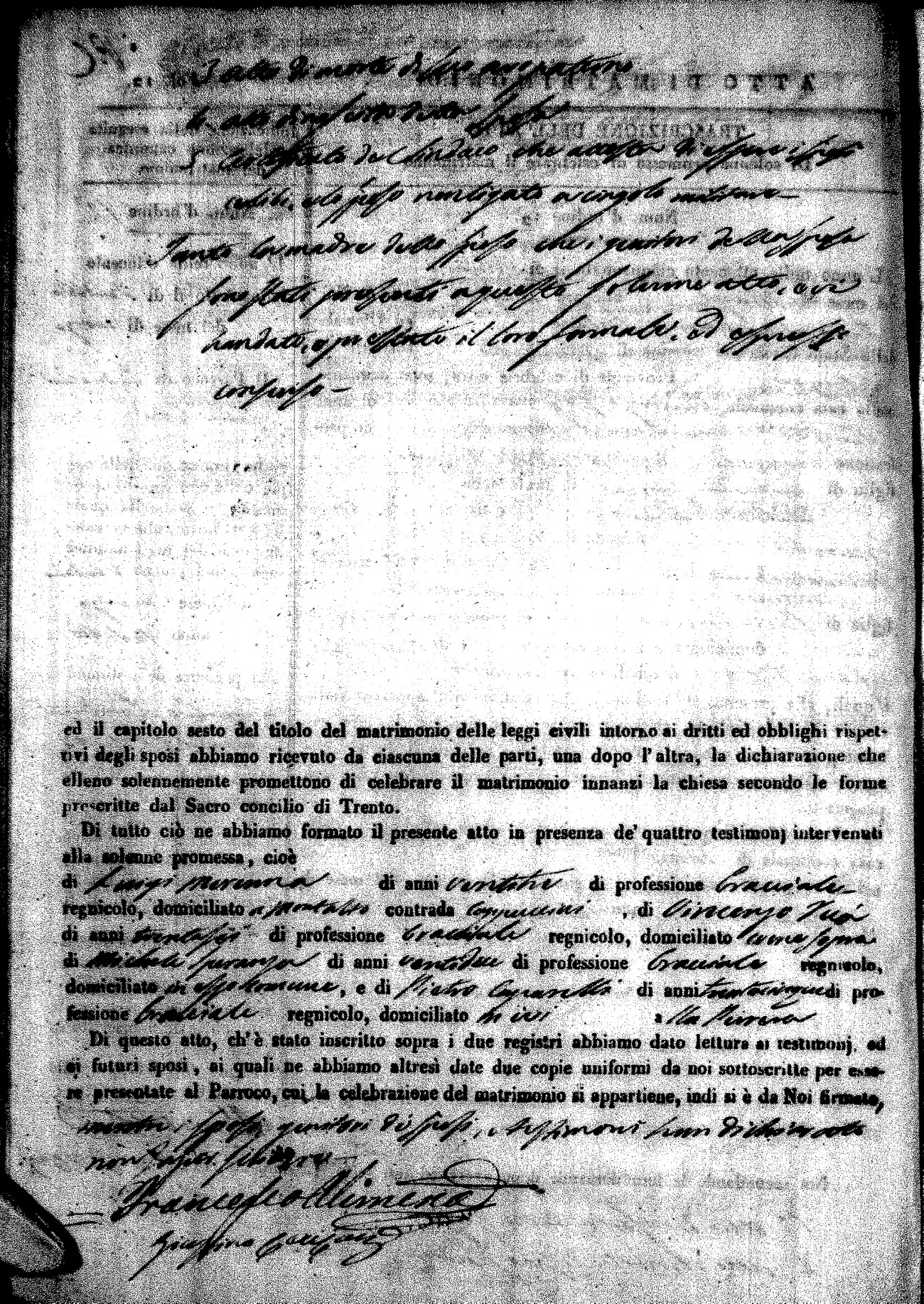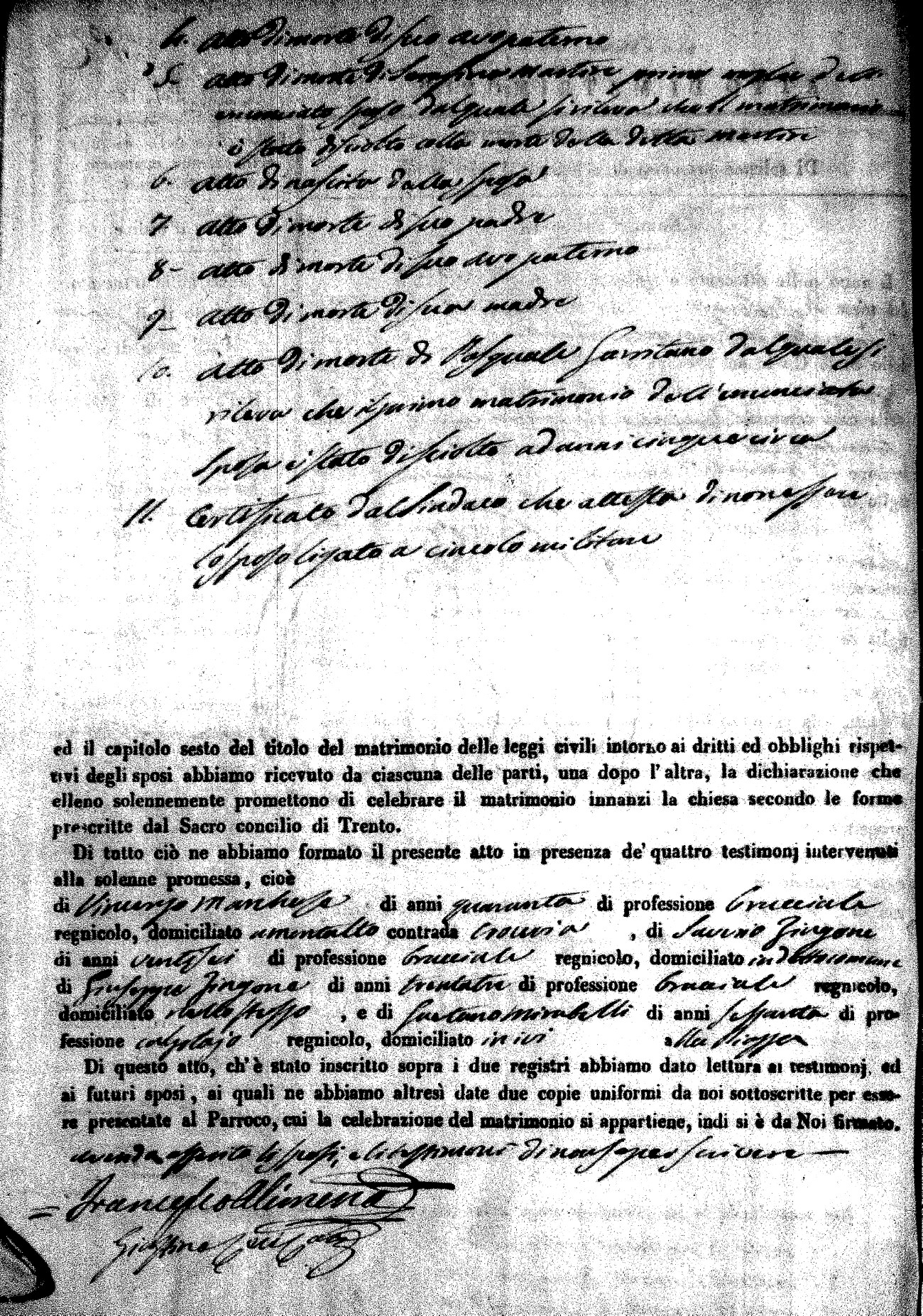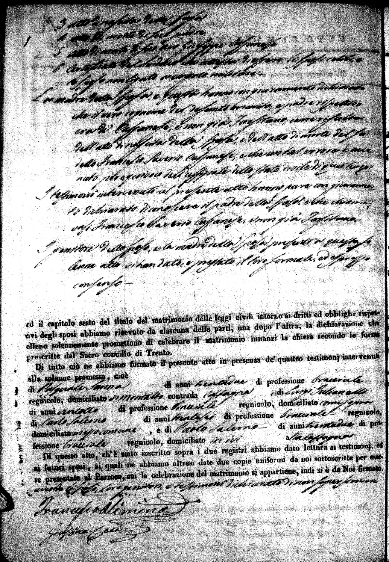 | Pesce | Carmine Maria | Antonio (fu) | Marchese | Serafina | diCiancio | Carmela | Giuseppe (fu) | Cassano | Rosa (fu) |