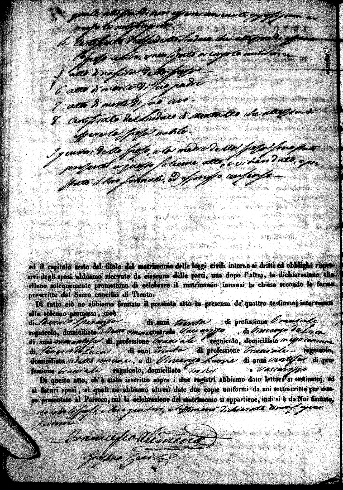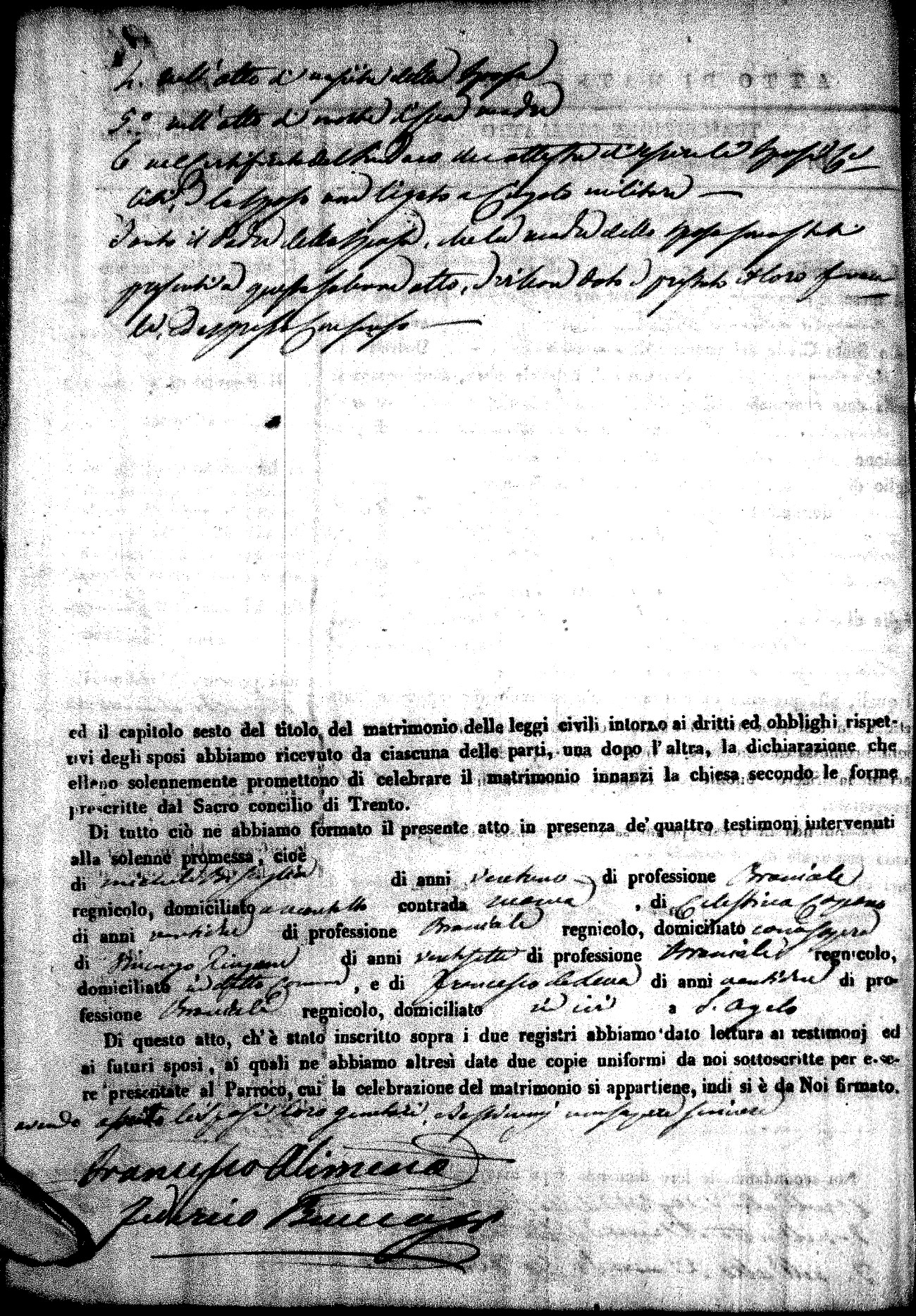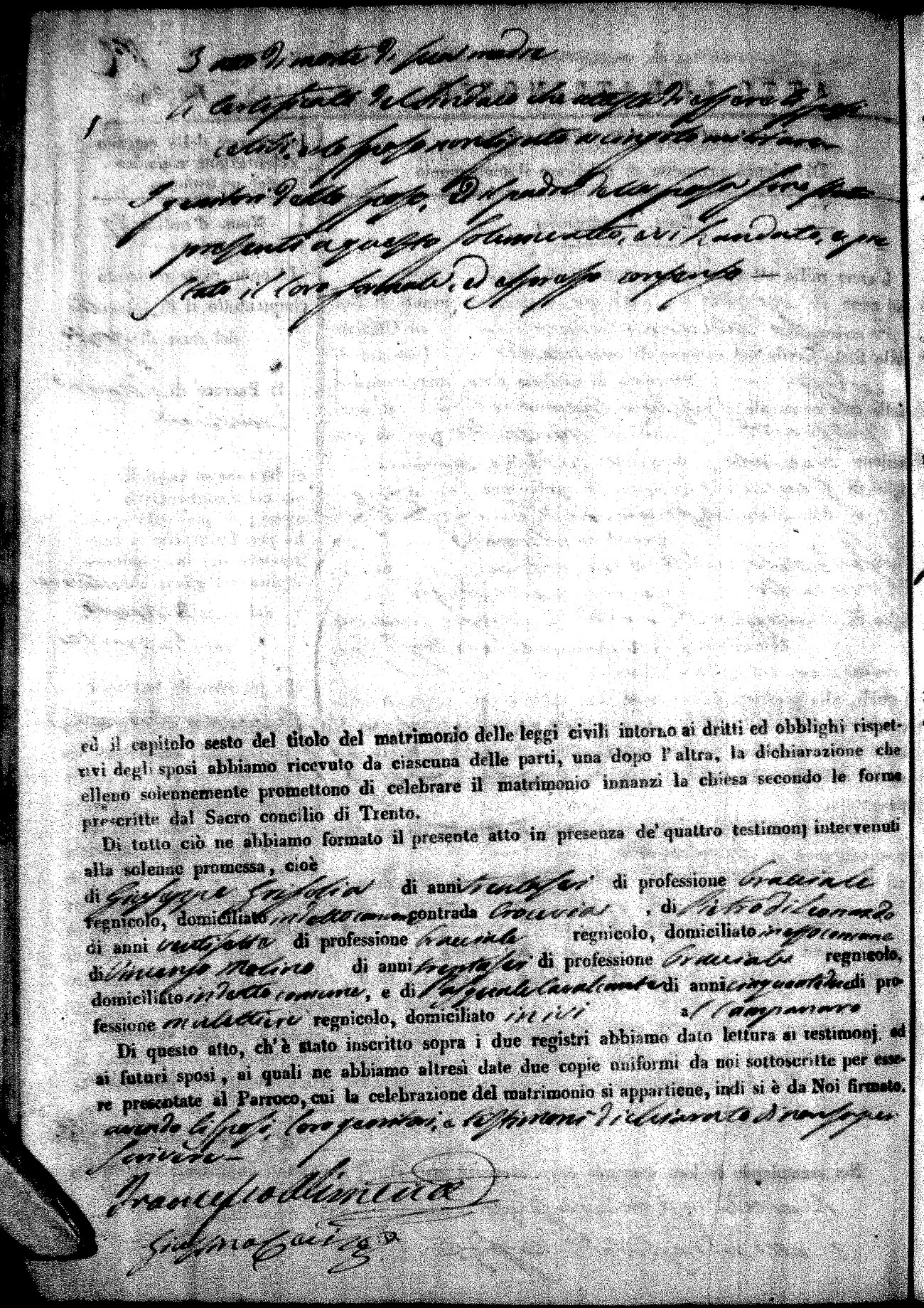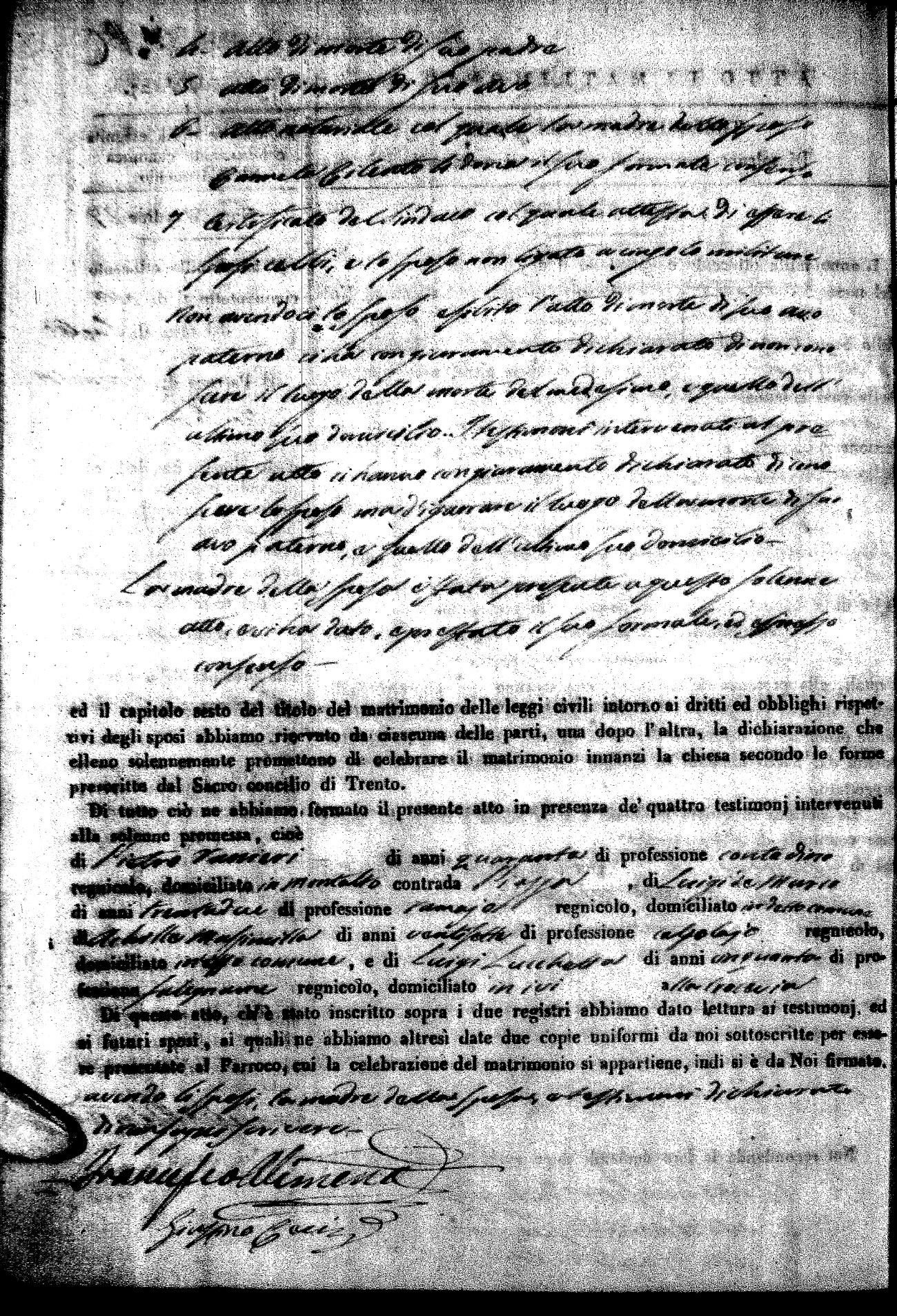 | Pesce | Carmine Maria | Antonio (fu) | Marchese | Serafina | diCiancio | Carmela | Giuseppe (fu) | Cassano | Rosa (fu) |