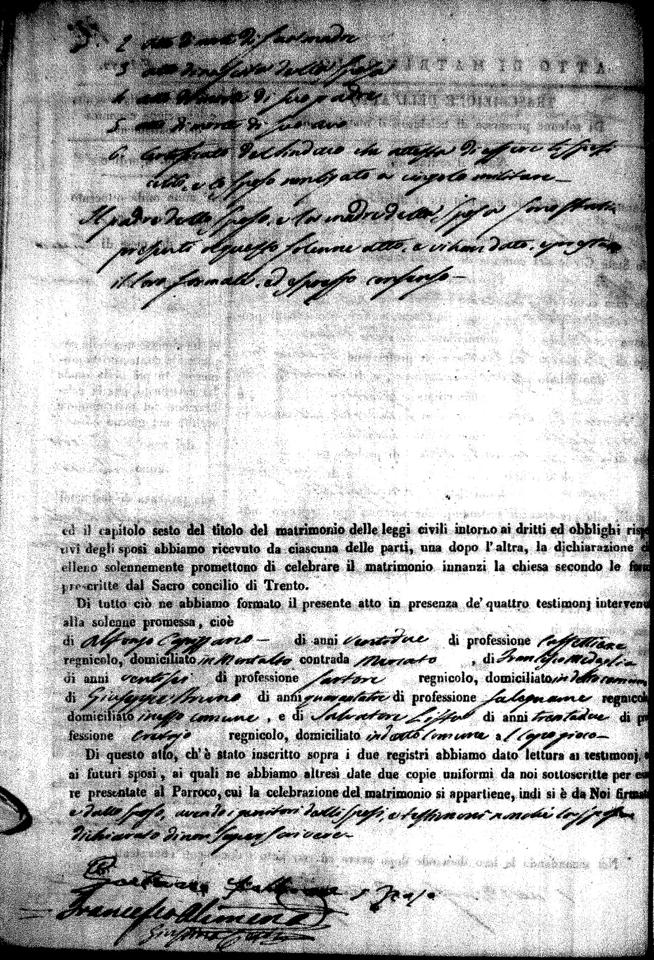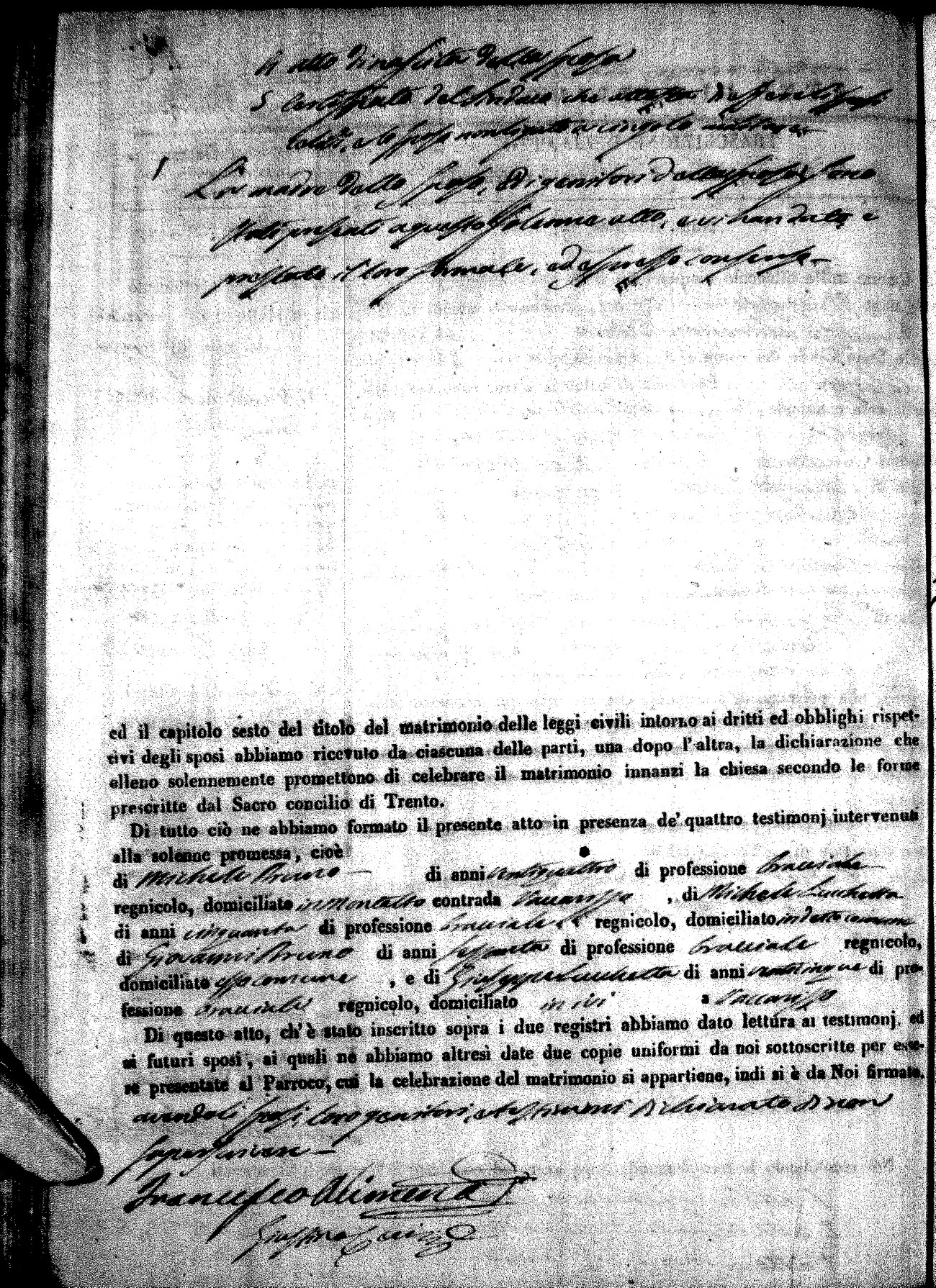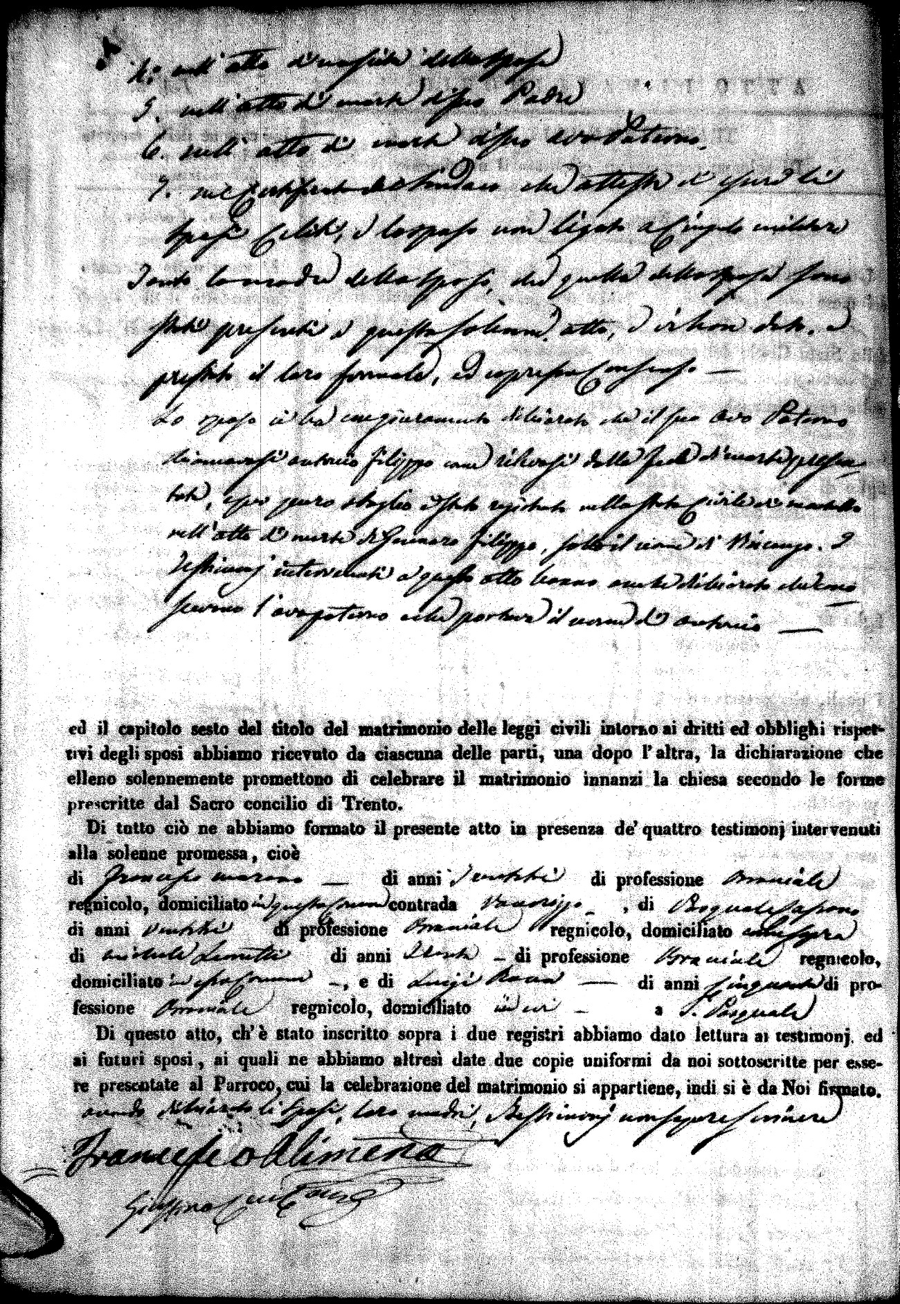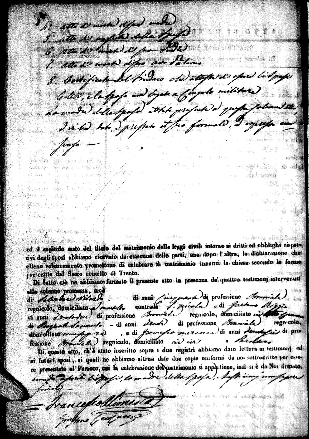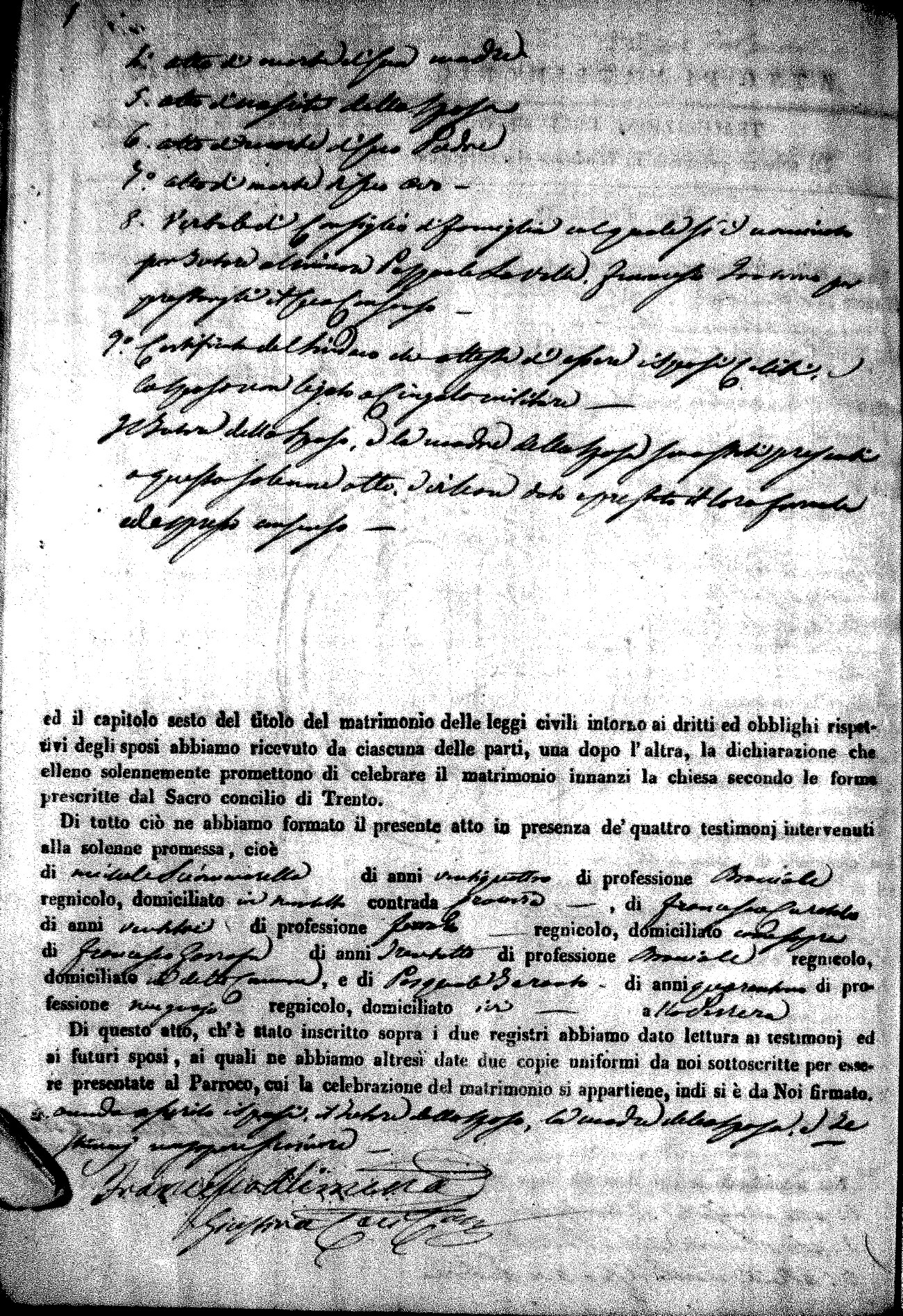 | Pesce | Carmine Maria | Antonio (fu) | Marchese | Serafina | diCiancio | Carmela | Giuseppe (fu) | Cassano | Rosa (fu) |