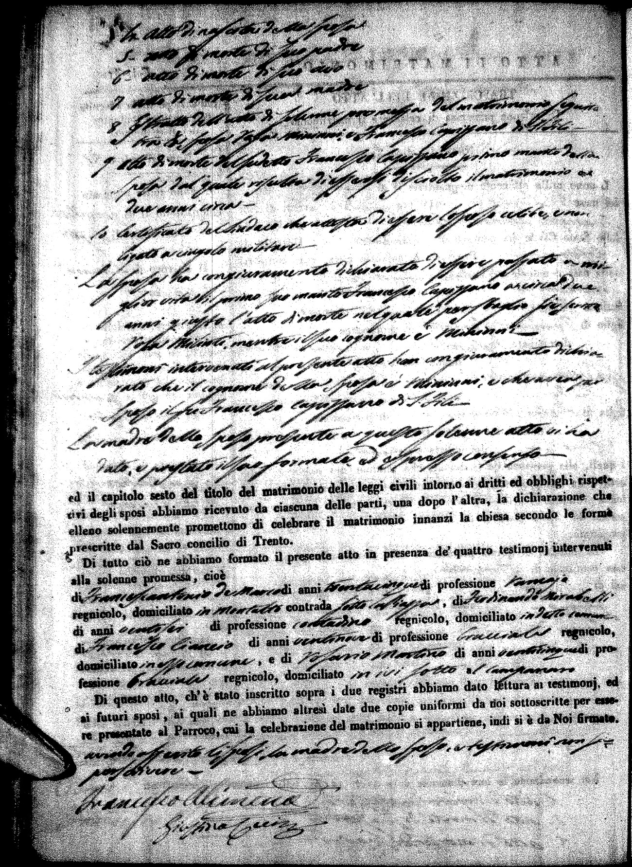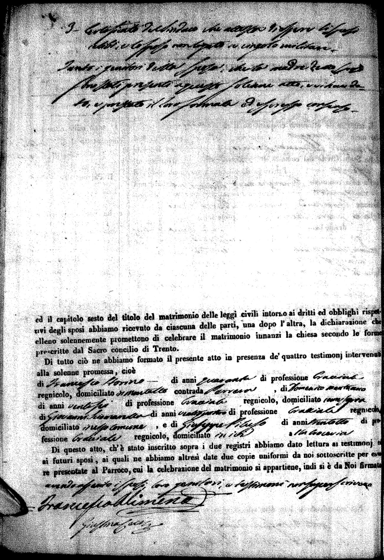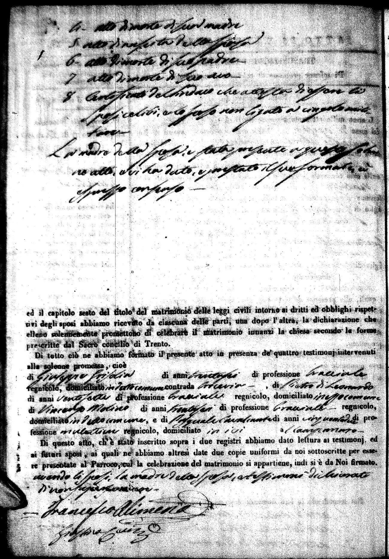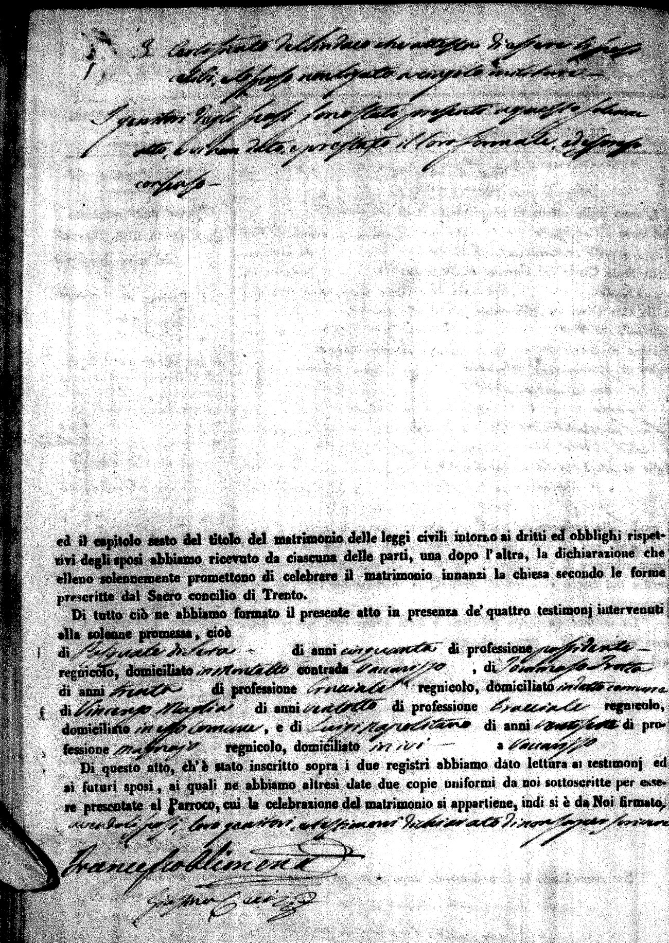 | Pesce | Carmine Maria | Antonio (fu) | Marchese | Serafina | diCiancio | Carmela | Giuseppe (fu) | Cassano | Rosa (fu) |