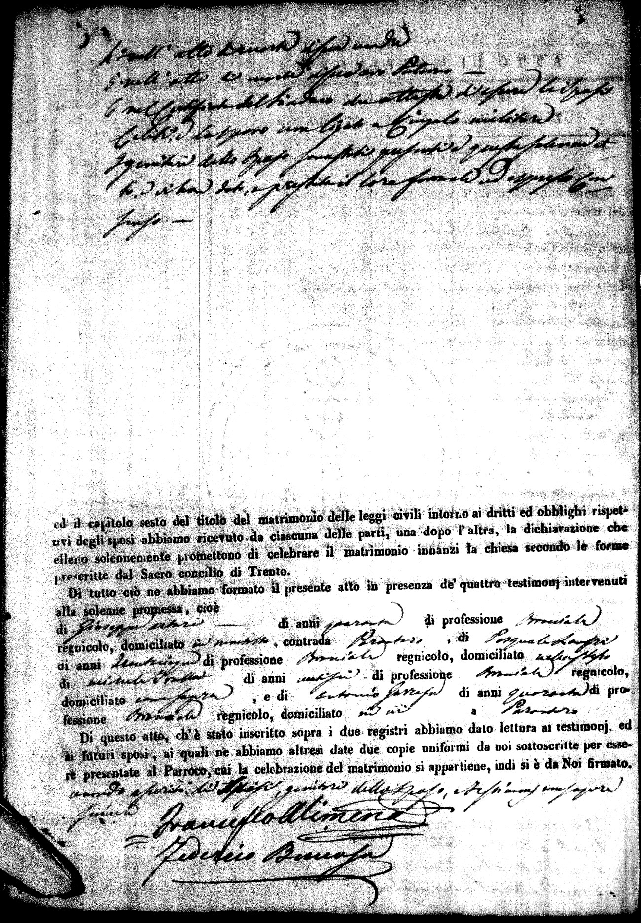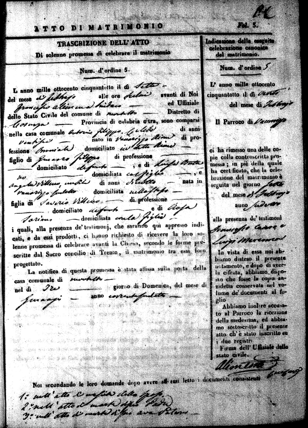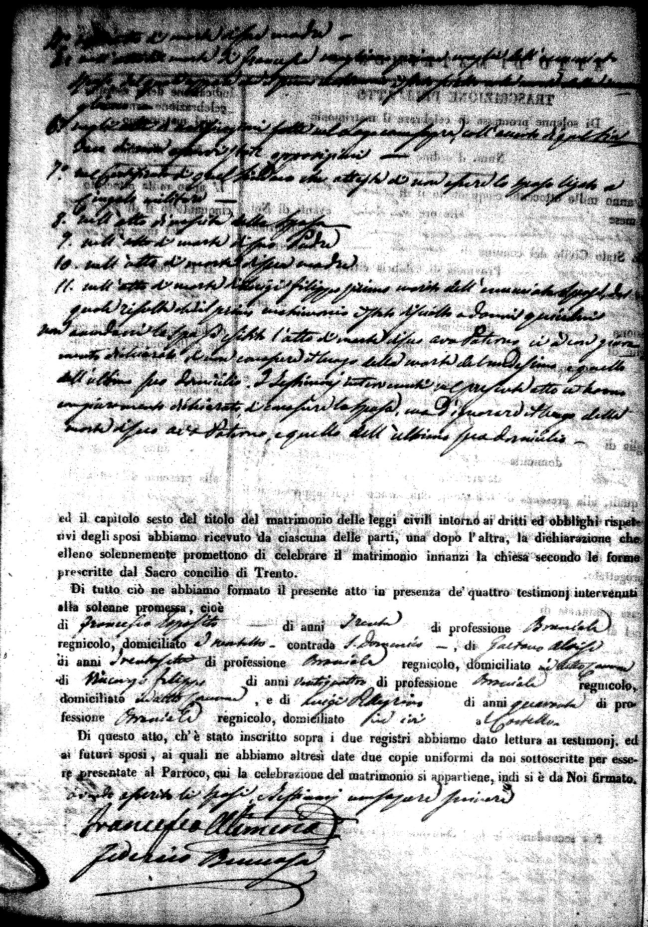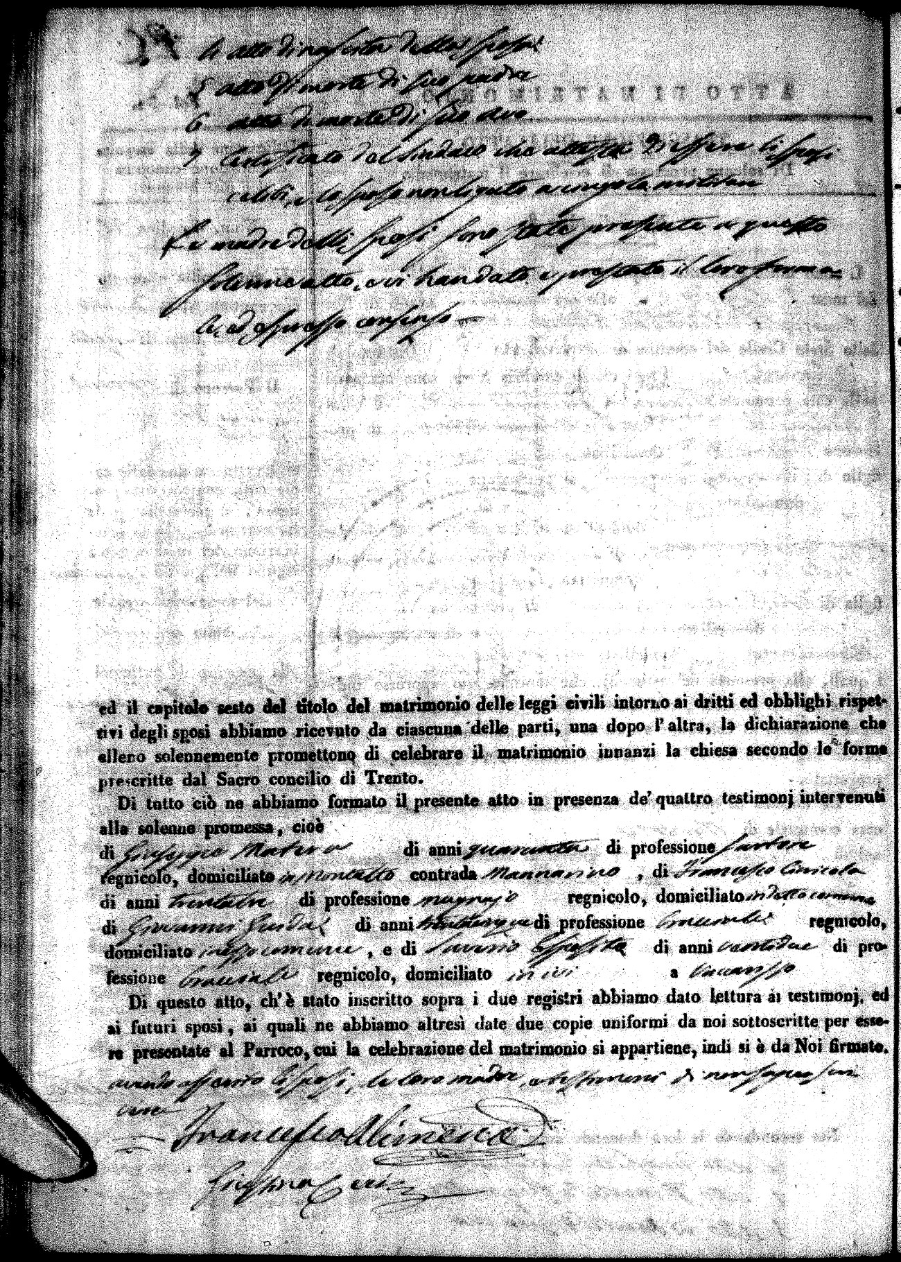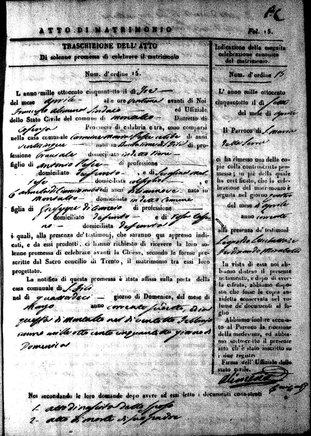 | Pesce | Carmine Maria | Antonio (fu) | Marchese | Serafina | diCiancio | Carmela | Giuseppe (fu) | Cassano | Rosa (fu) |
