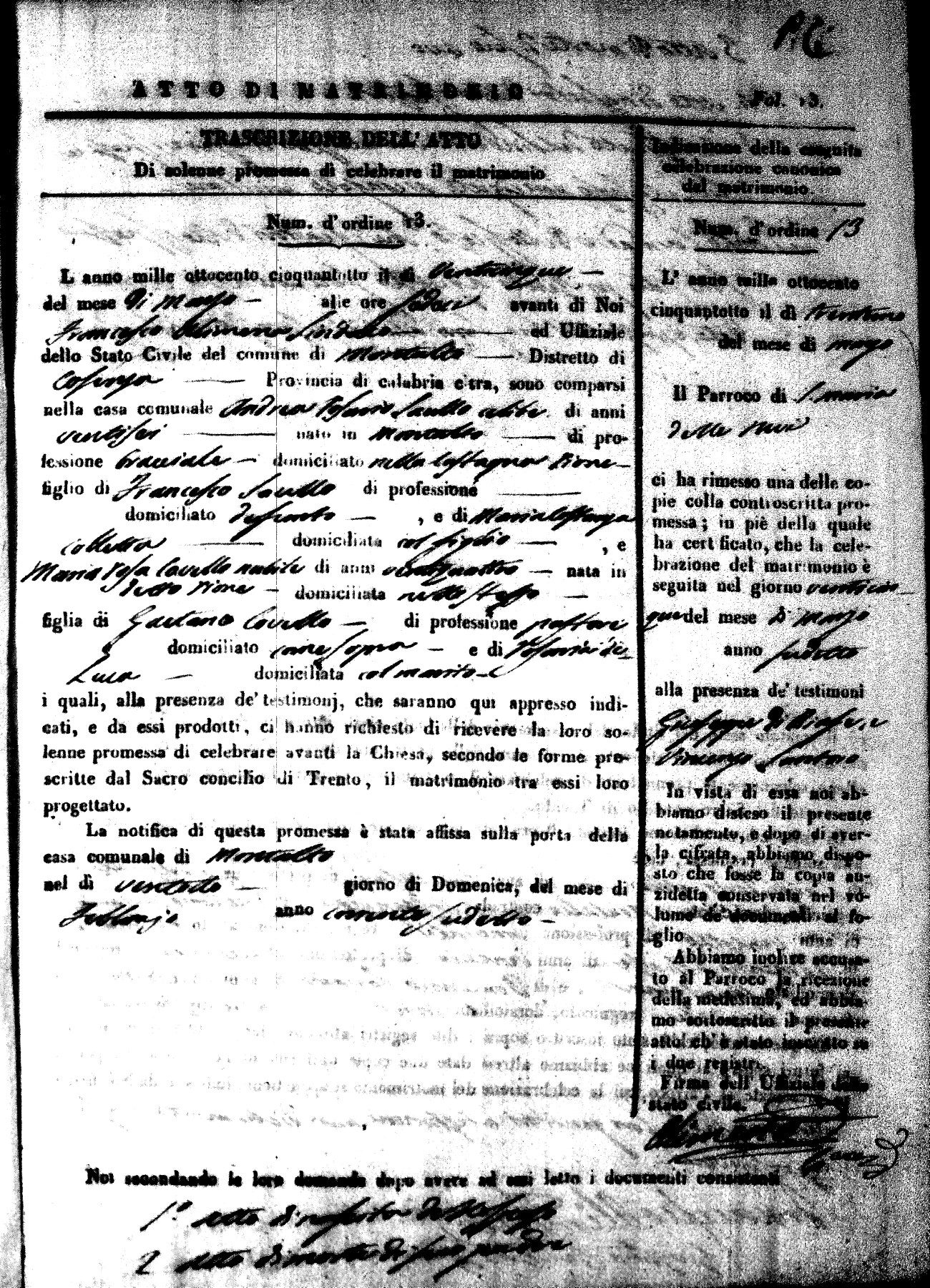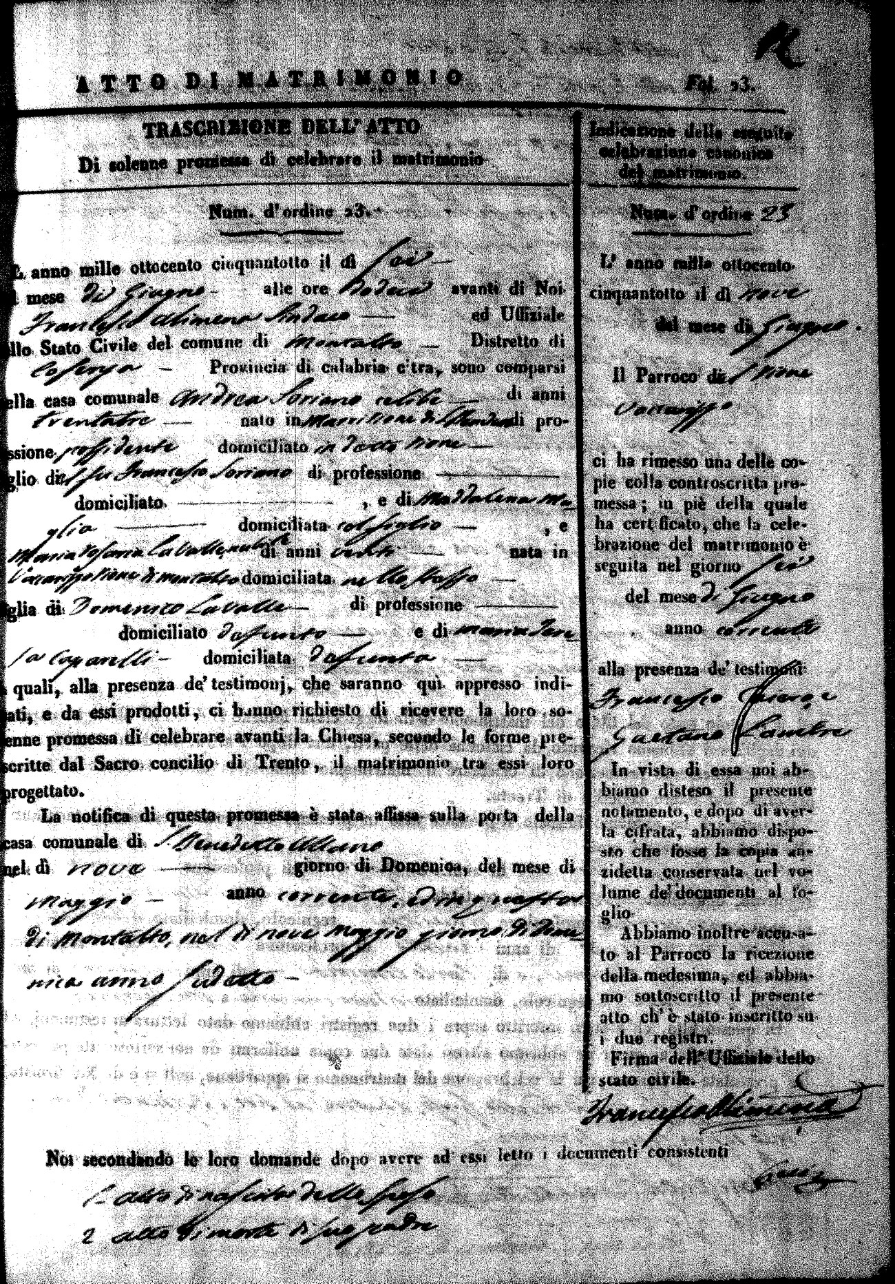 | Soriano | Andrea | Francesco (fu) | Muglia | Maddalena | LaValle | Maria Rosaria | Domenico (fu) | Caparelli | Maria Teresa (fu) |